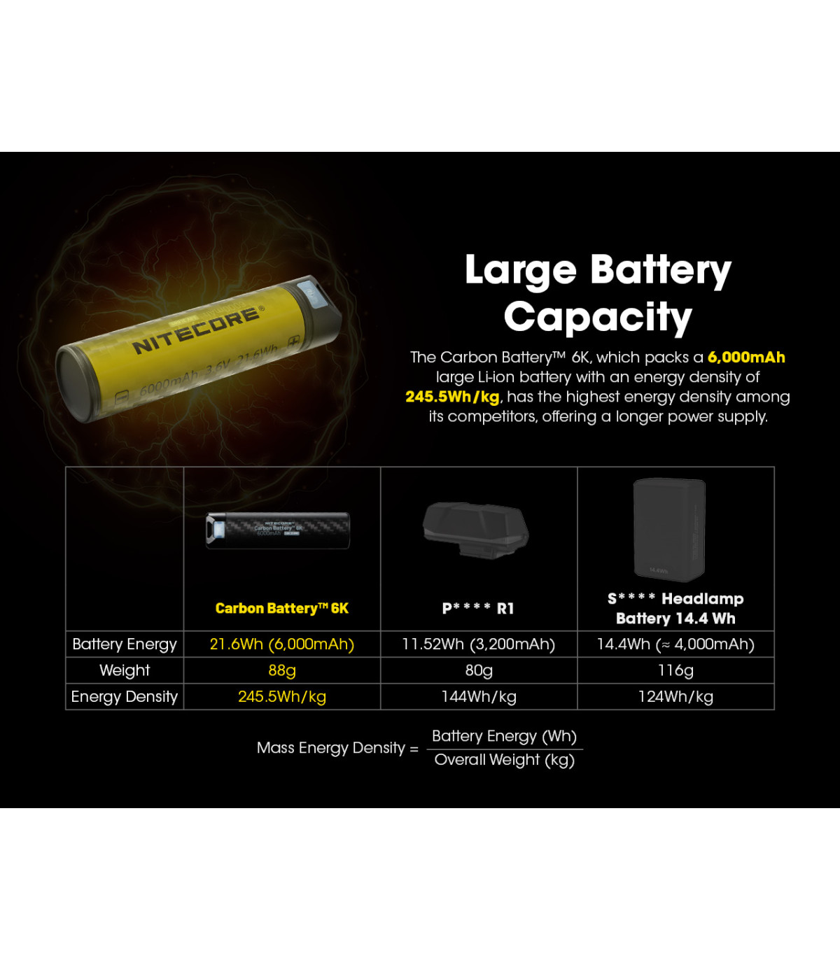 Το Carbon Battery ™ 6K που περιλαμβάνει μία επαναφορτιζόμενη μπαταρία ιόντων λιθίου (Li-ion) μεγάλης χωρητικότητας 6000mAh με πυκνότητα ενέργειας της τάξης των 245,5Wh/Kg,