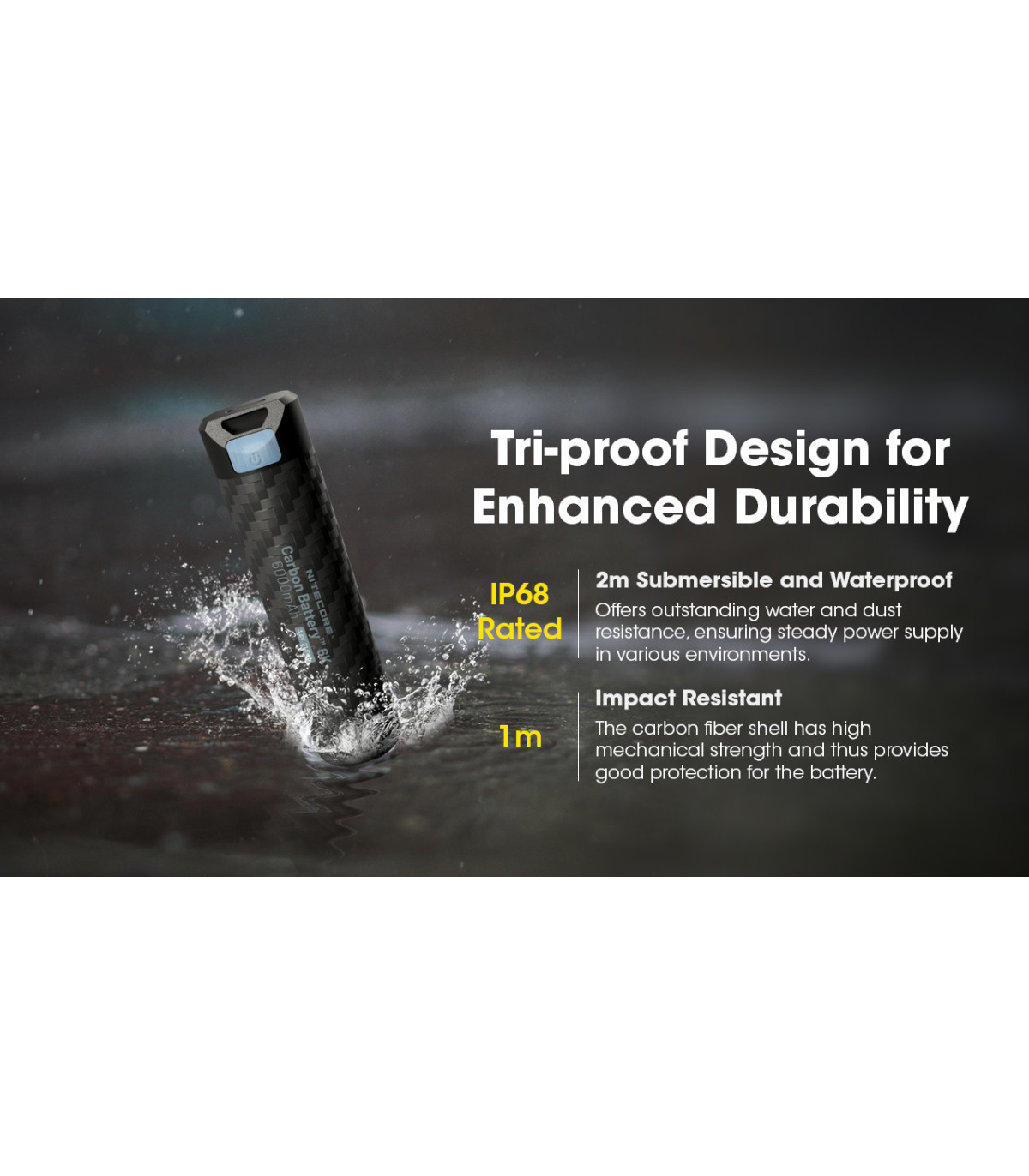 Το κέλυφος από ανθρακονήματα έχει υψηλή μηχανική αντοχή έτσι ώστε να παρέχει καλή προστασία στην εσωτερική μπαταρία.