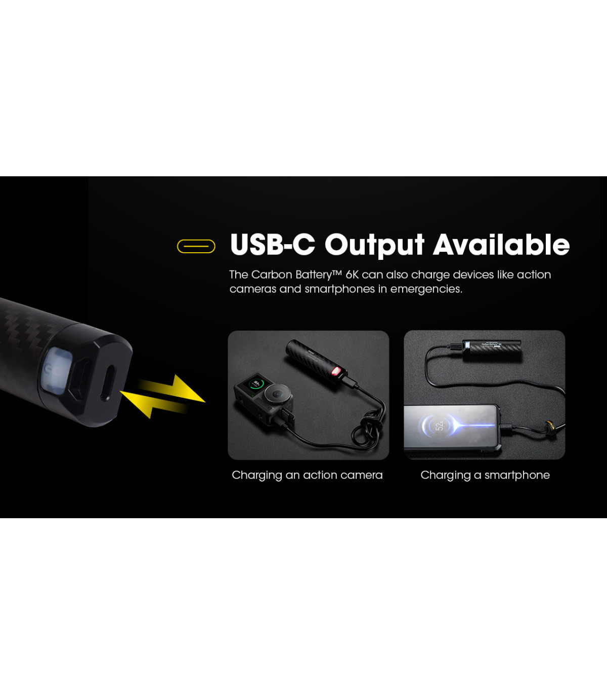 Το Carbon Battery™ 6K μπορεί επίσης να φορτίσει συσκευές όπως action κάμερες, κινητά τηλέφωνα κ.α. σε περίπτωση ανάγκης.