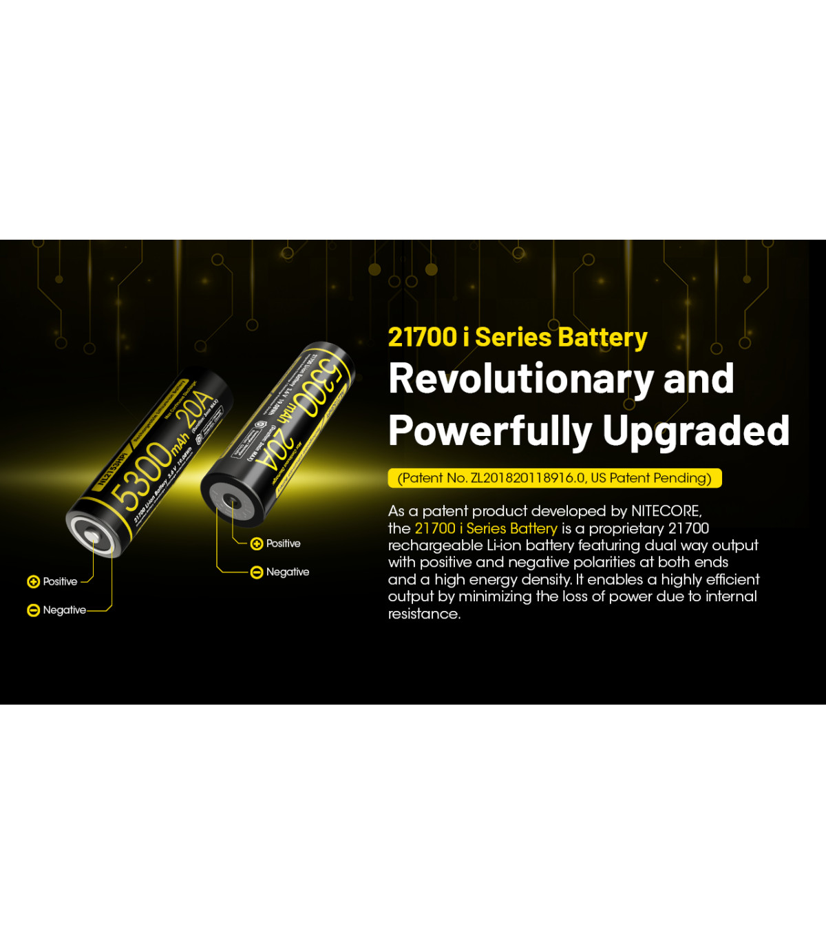 Ως ένα προϊόν ευρεσιτεχνίας της NITECORE οι μπαταρίες 21700 της σειράς “i” χαρακτηρίζονται από την διπλή πολικότητα σε κάθε πλευρά και