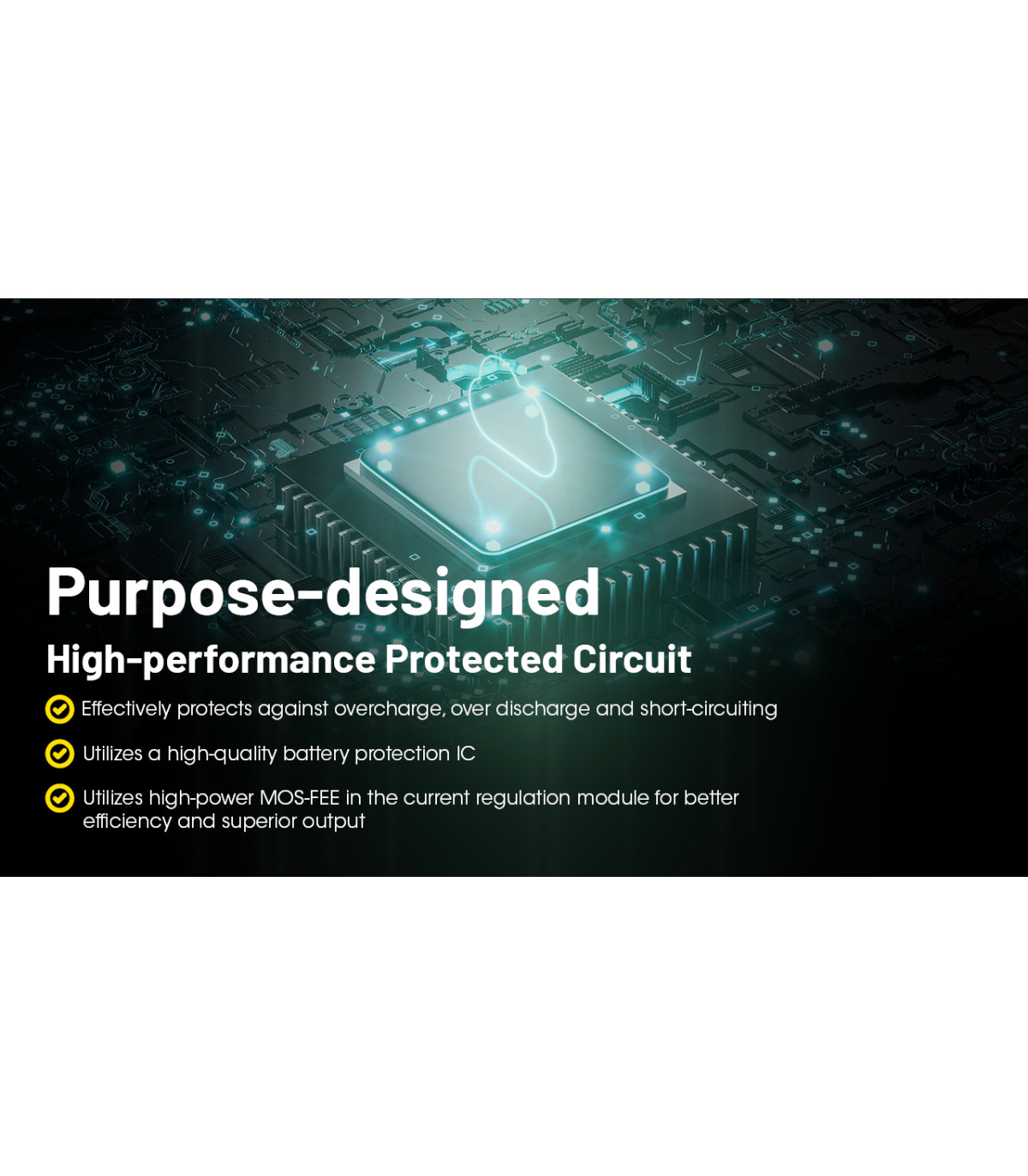 – Ενσωματώνει ένα υψηλής ποιότητας κύκλωμα προστασίας της μπαταρίας.