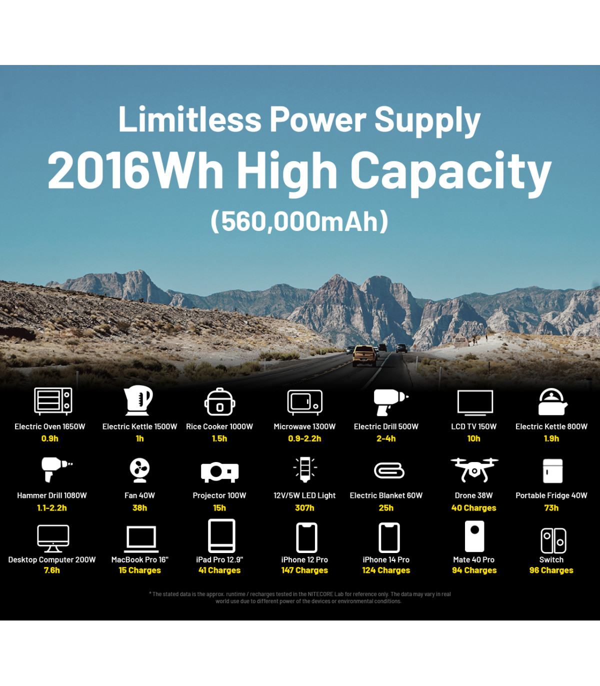 Πολύ μεγάλη χωρητικότητα 2016Wh (560.000mAh)