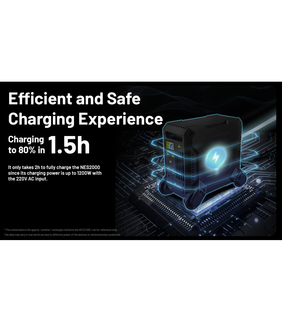 Χρειάζονται μόνο 2 ώρες για την πλήρη φόρτιση του NES2000 εφόσον η ισχύς φόρτισης είναι έως 1200W με την είσοδο εναλλασσόμενου ρεύματος 220V