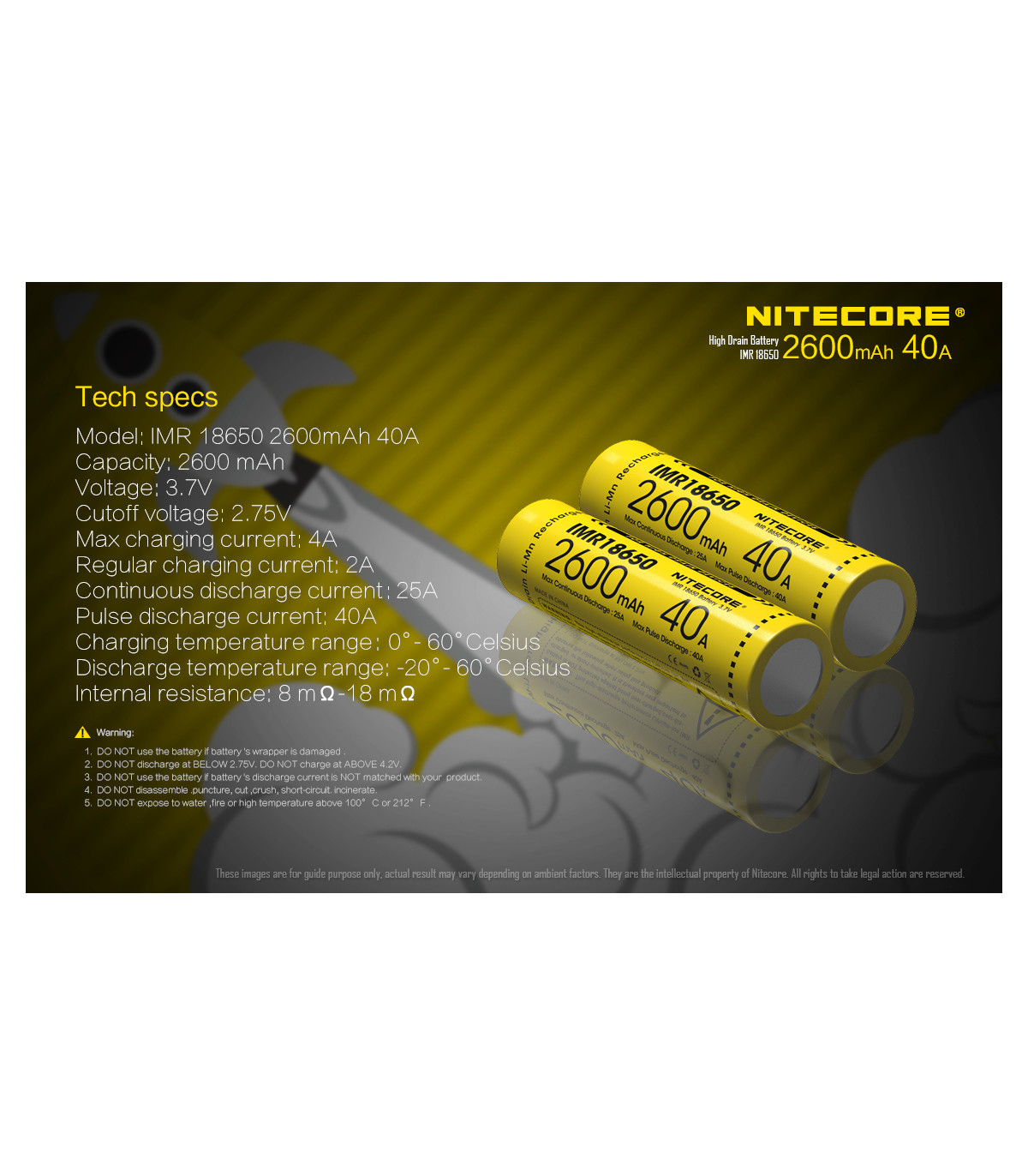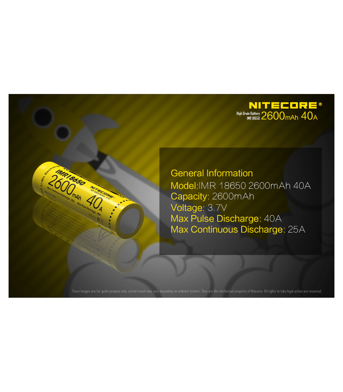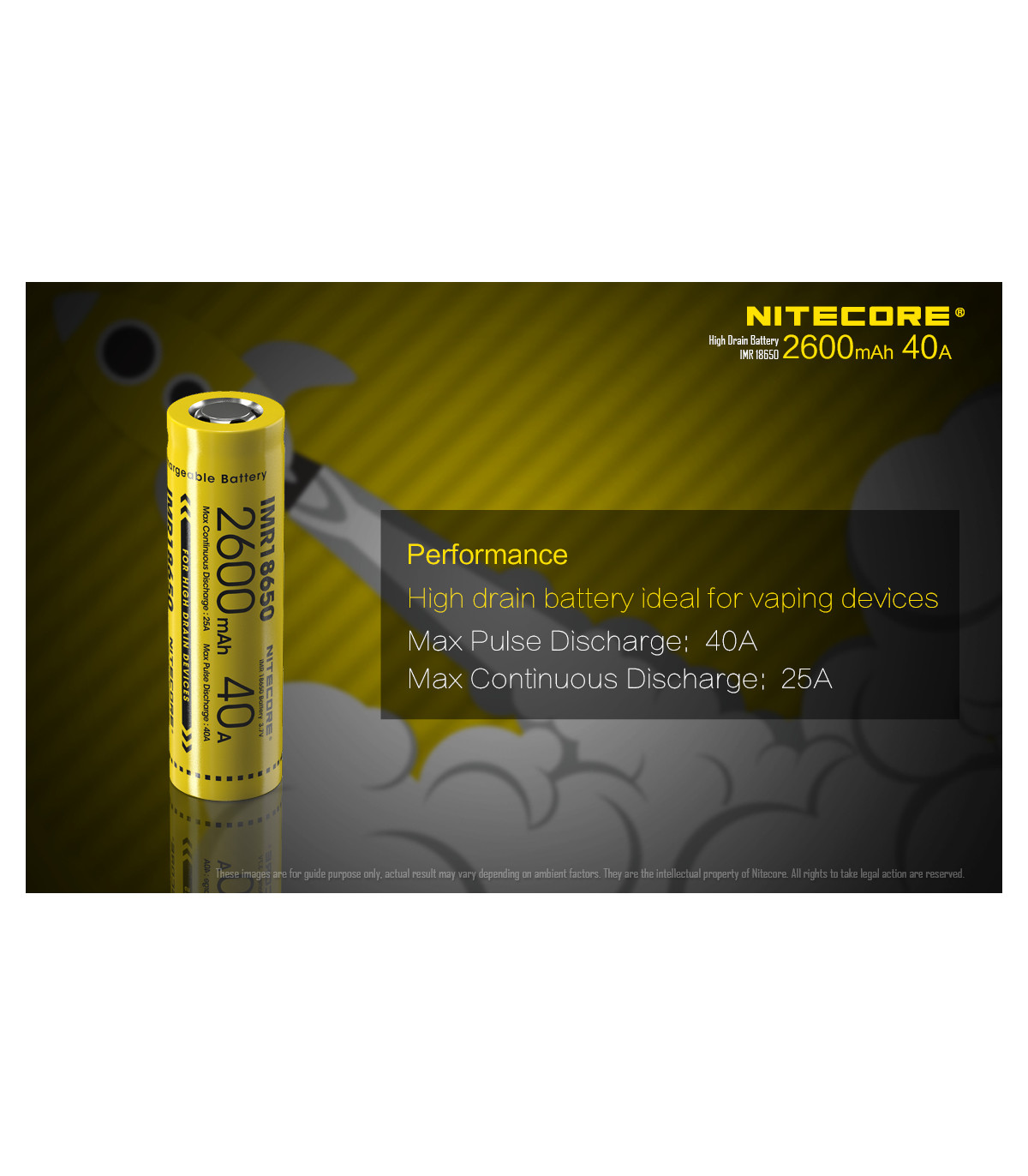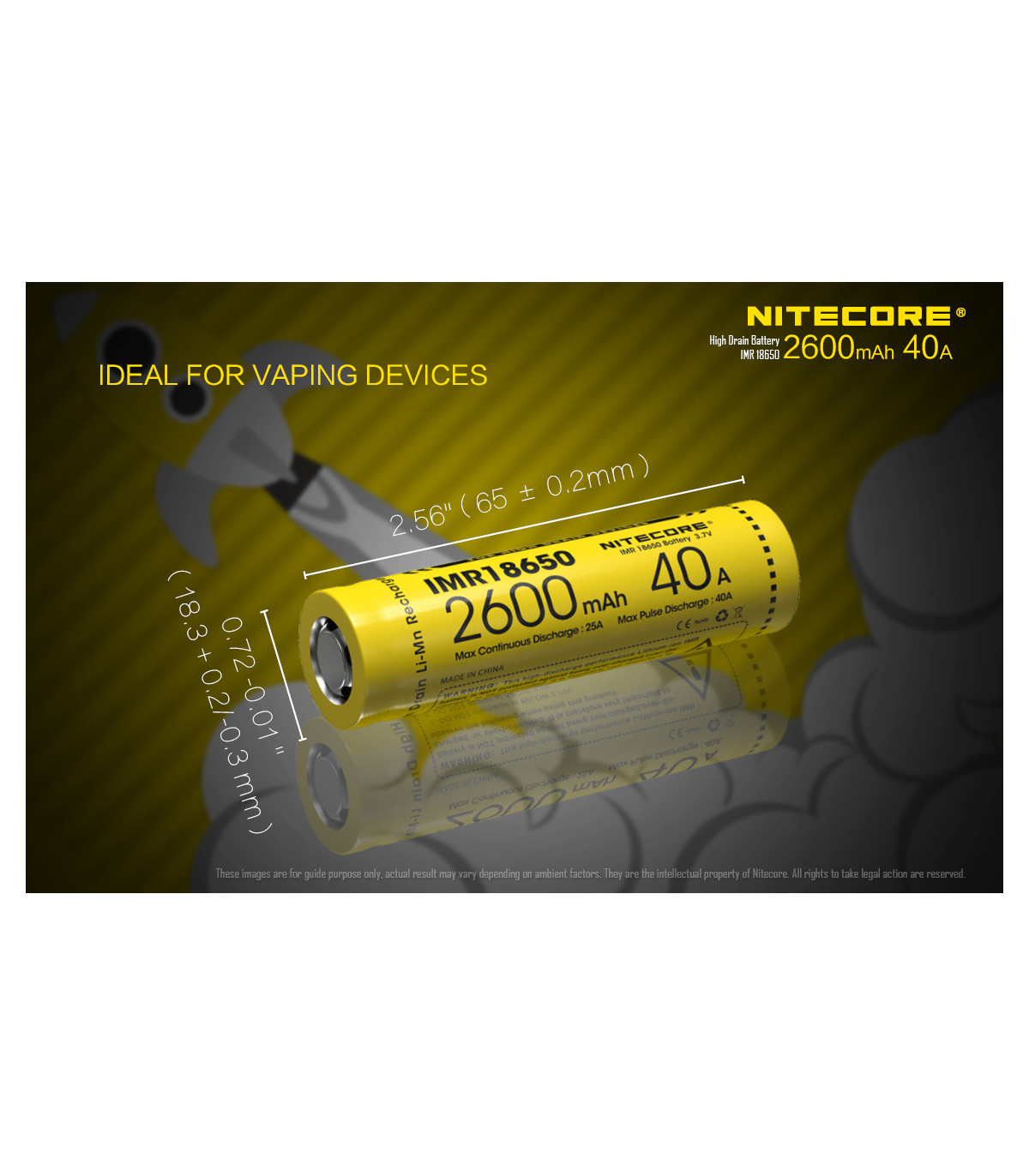 ΜΠΑΤΑΡΙΑ NITECORE IMR18650 2600mah 40A FlatTop