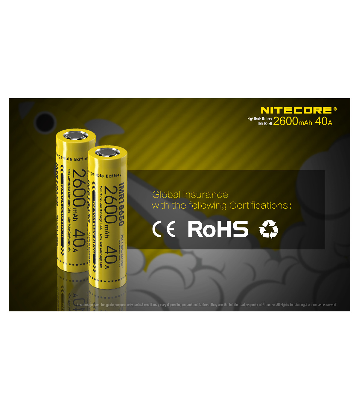 ΜΠΑΤΑΡΙΑ NITECORE IMR18650 2600mah 40A FlatTop (Ζεύγος)