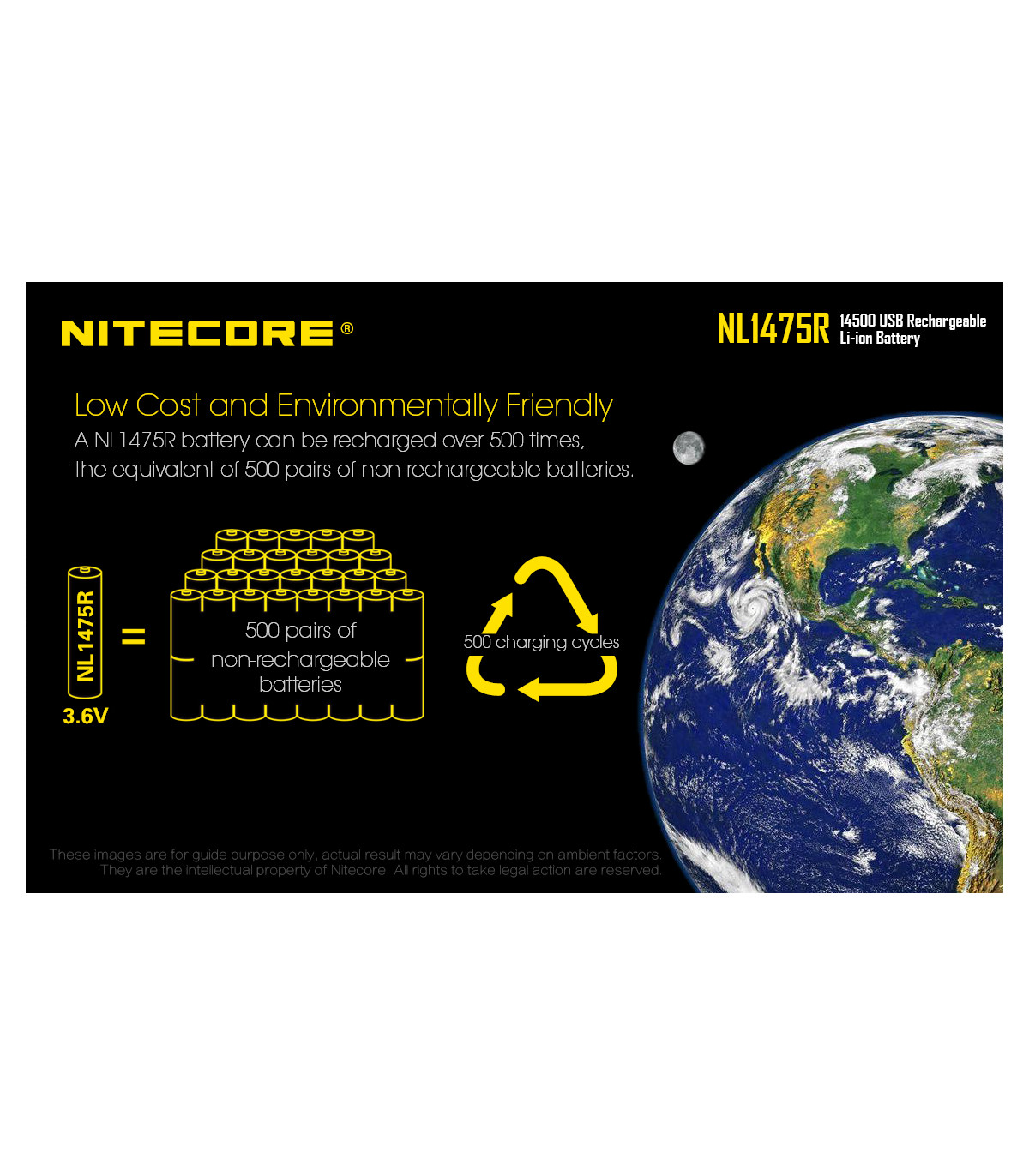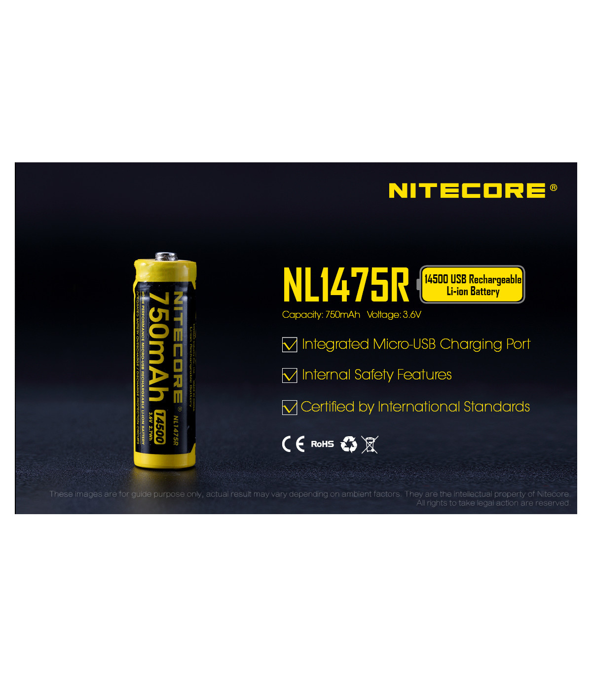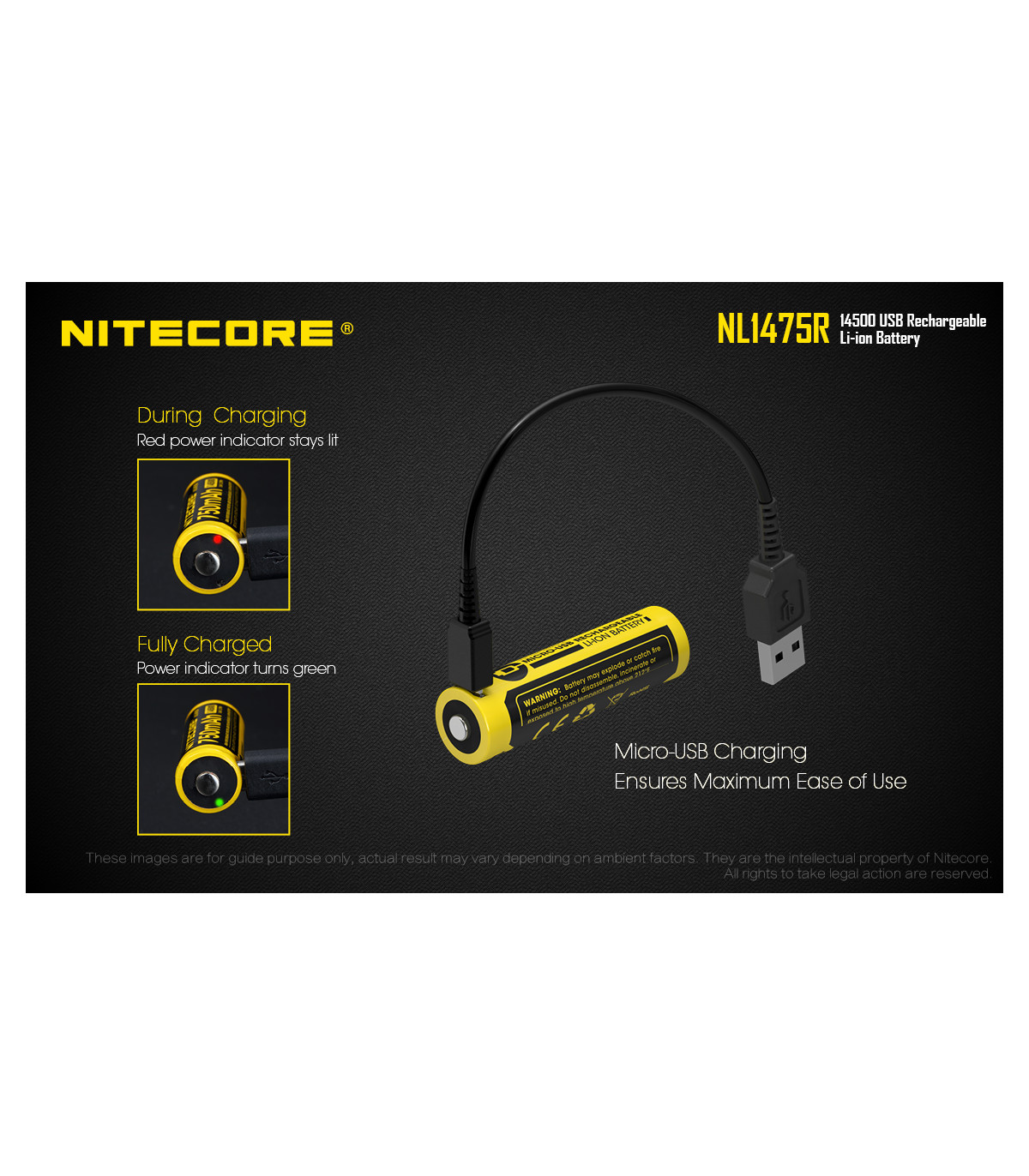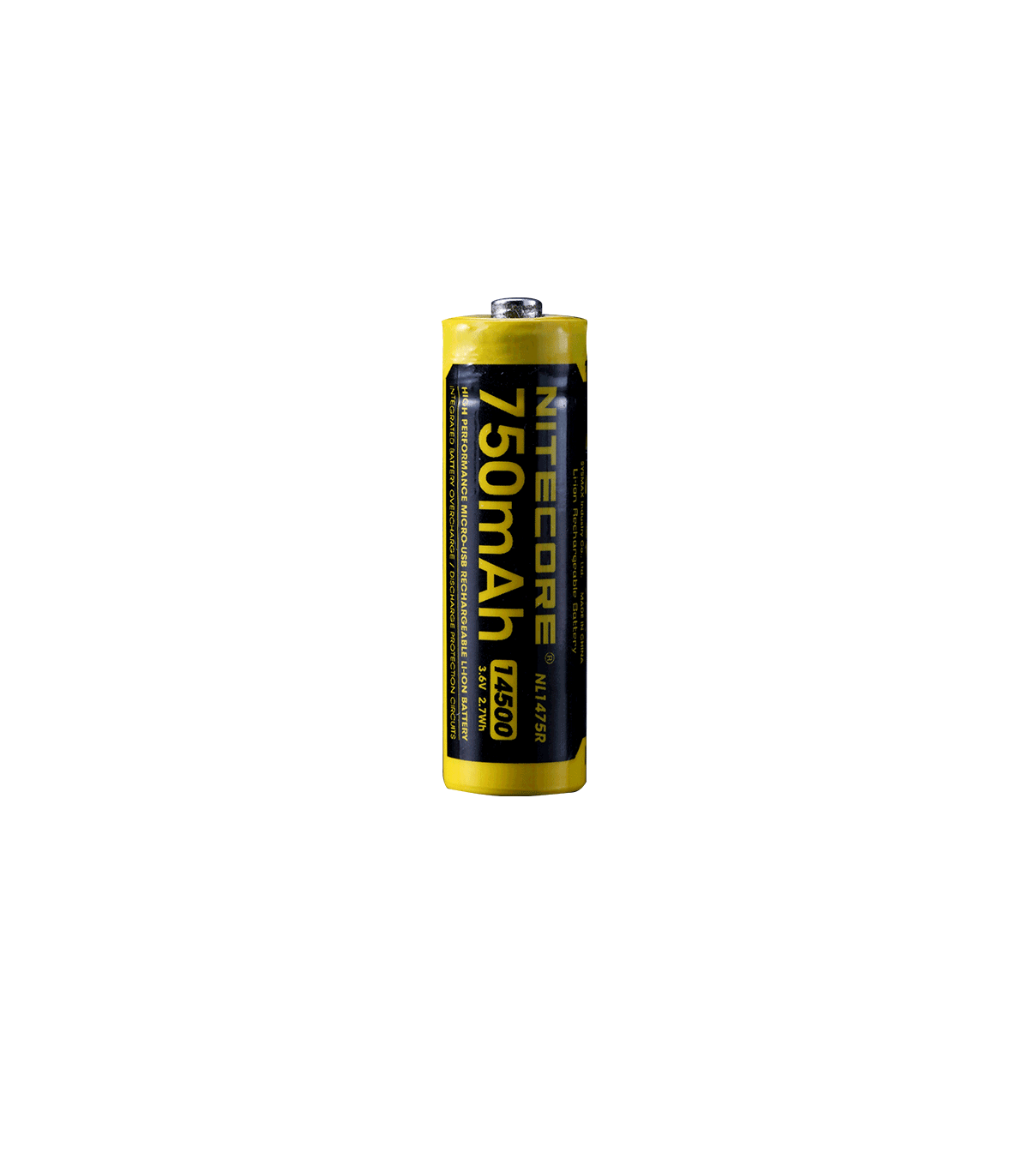 01. Επαναφορτιζόμενη, μέσω θύρας USB, μπαταρία Ιόντων Λιθίου (Li-ion) NITECORE NL1475R (14500)
