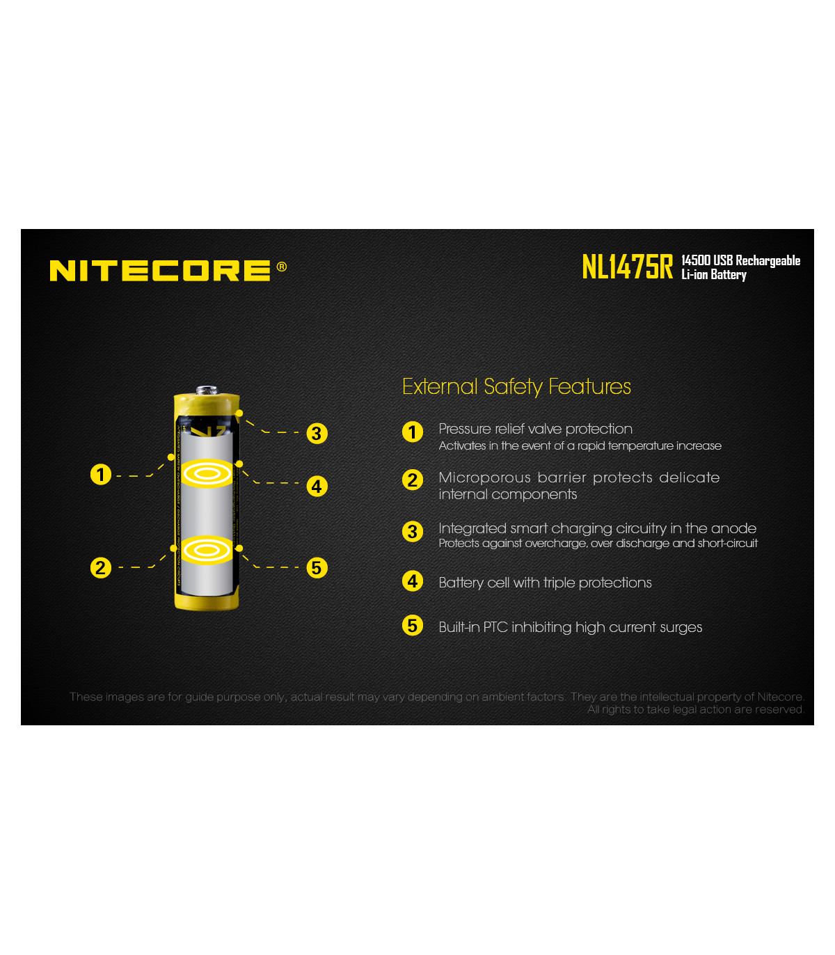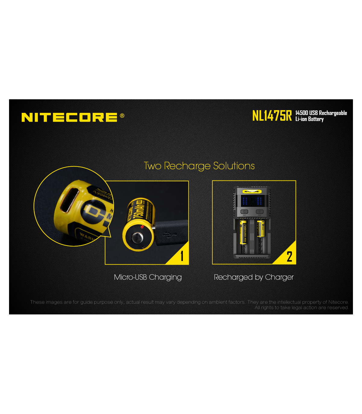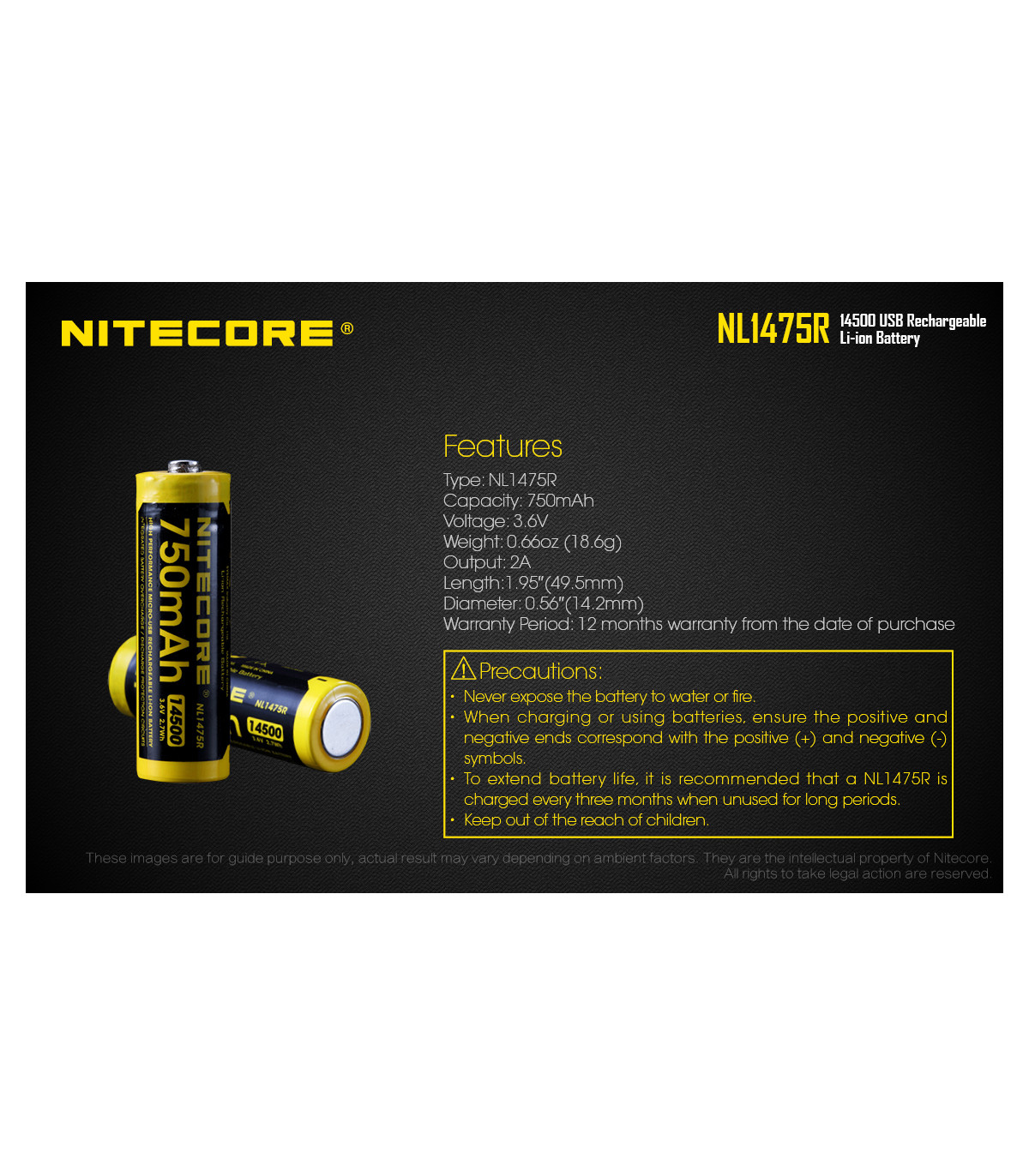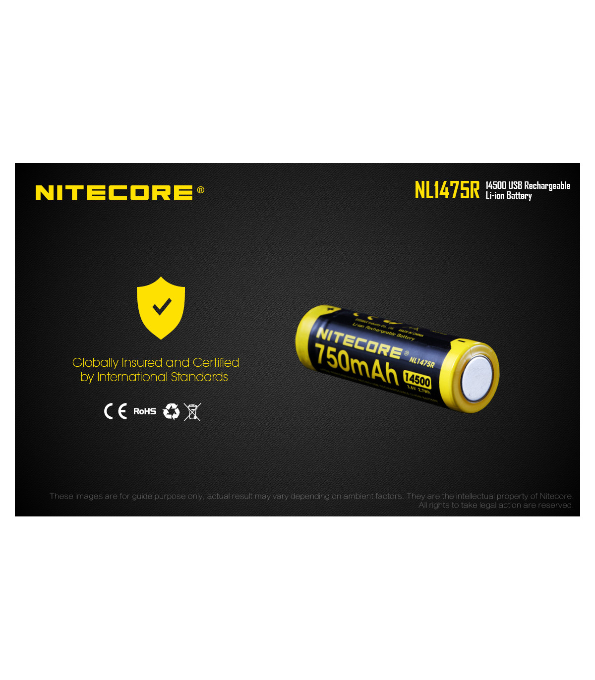 01. Επαναφορτιζόμενη, μέσω θύρας USB, μπαταρία Ιόντων Λιθίου (Li-ion) NITECORE NL1475R (14500)