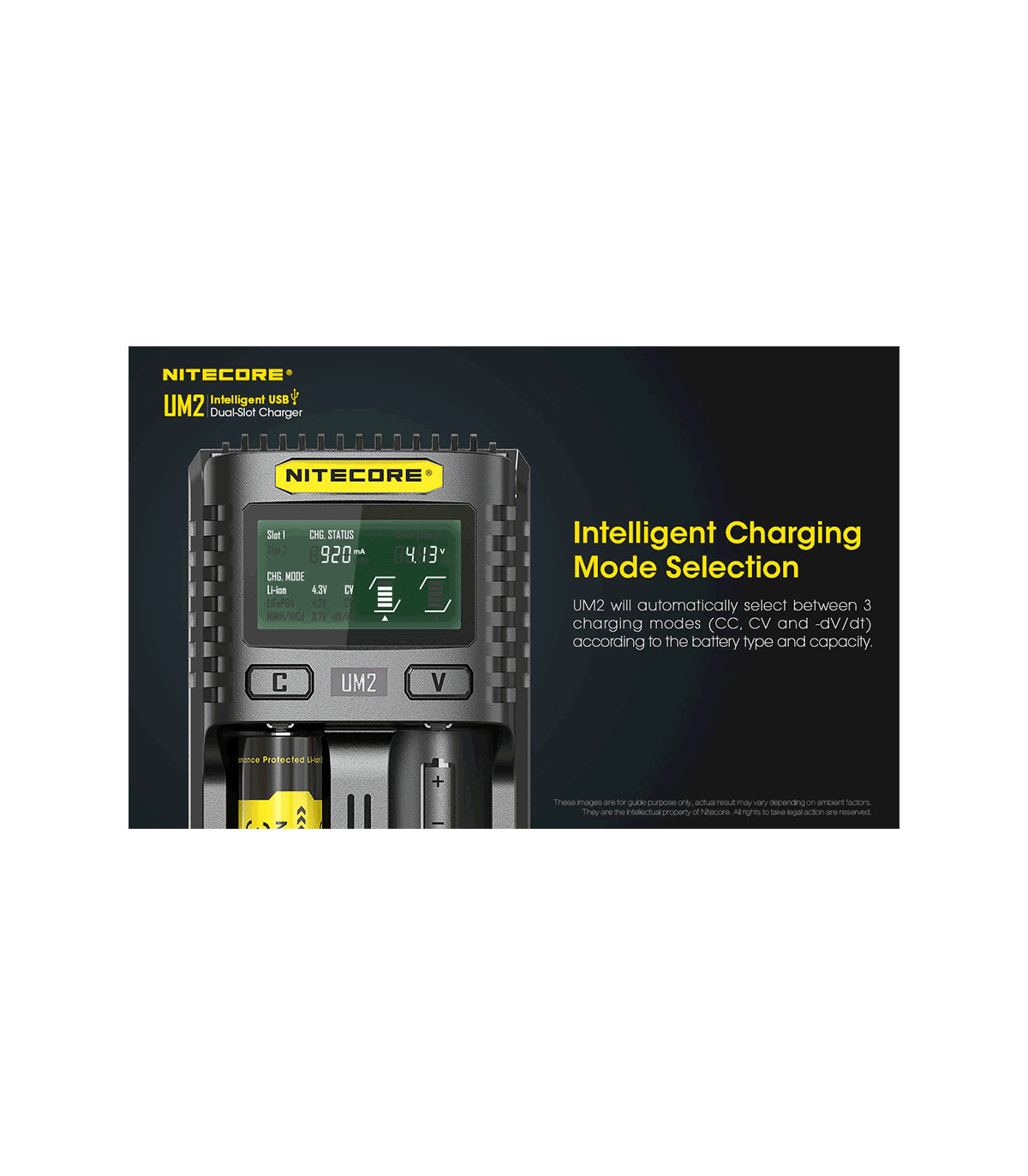 Ο UM2 θα επιλέξει αυτόματα ανάμεσα σε 3 διαφορετικές λειτουργίες φόρτισης (CC, CV και -dv/dt) σύμφωνα με το τύπο και την χωρητικότητα της μπαταρίας.