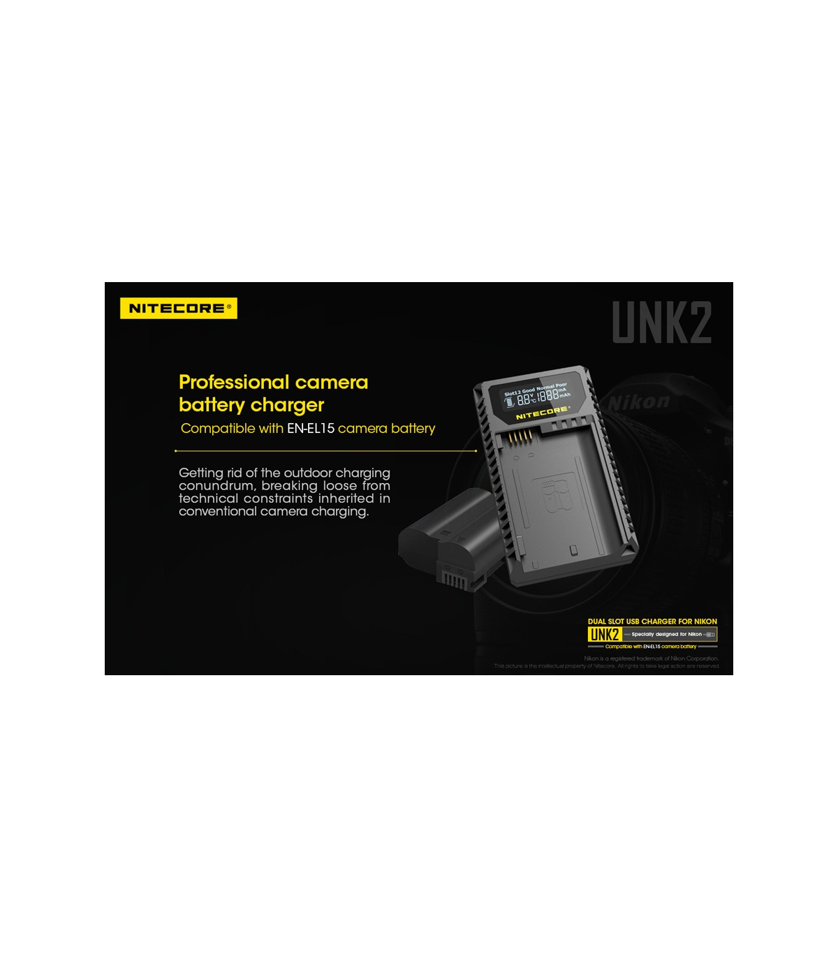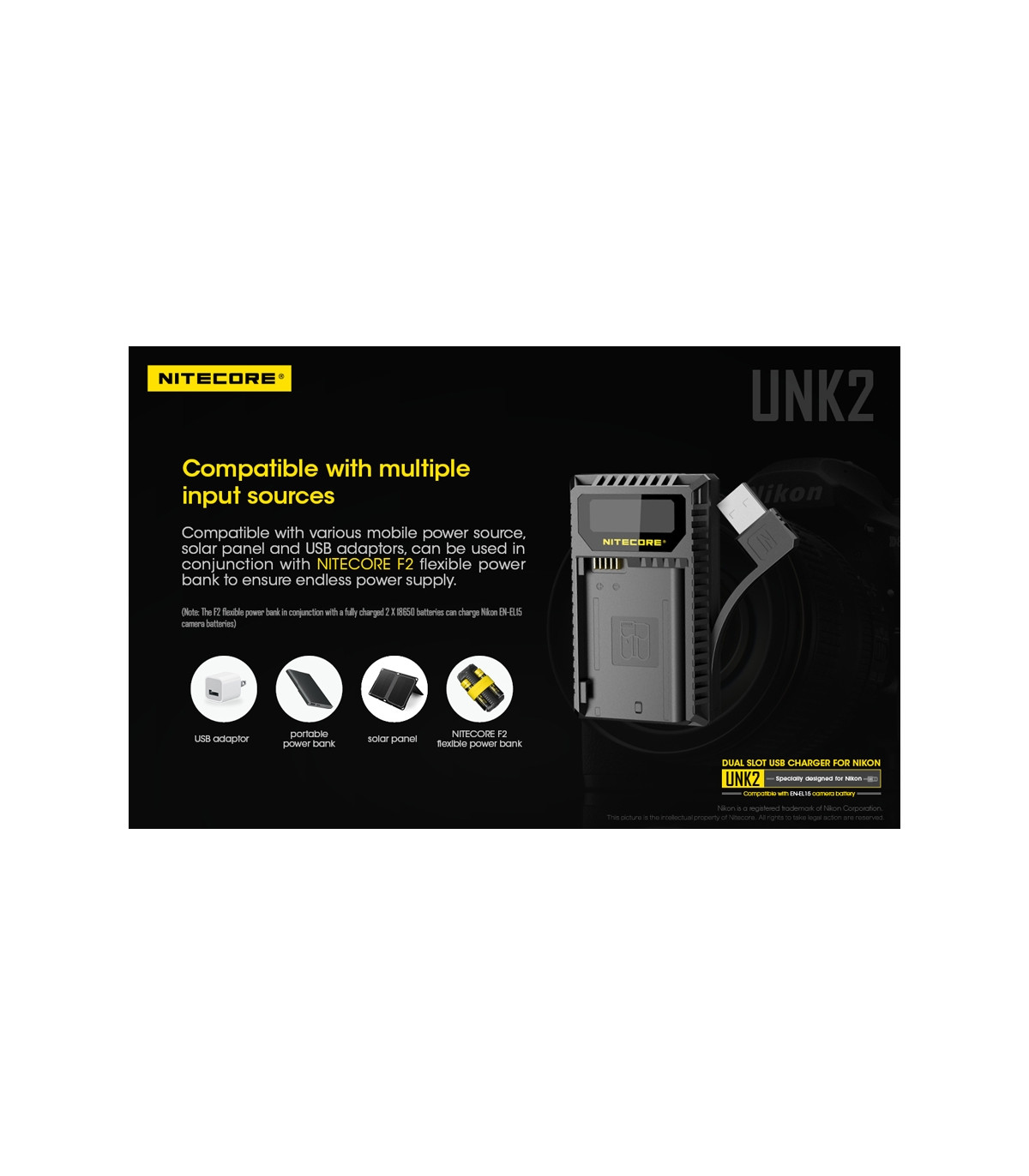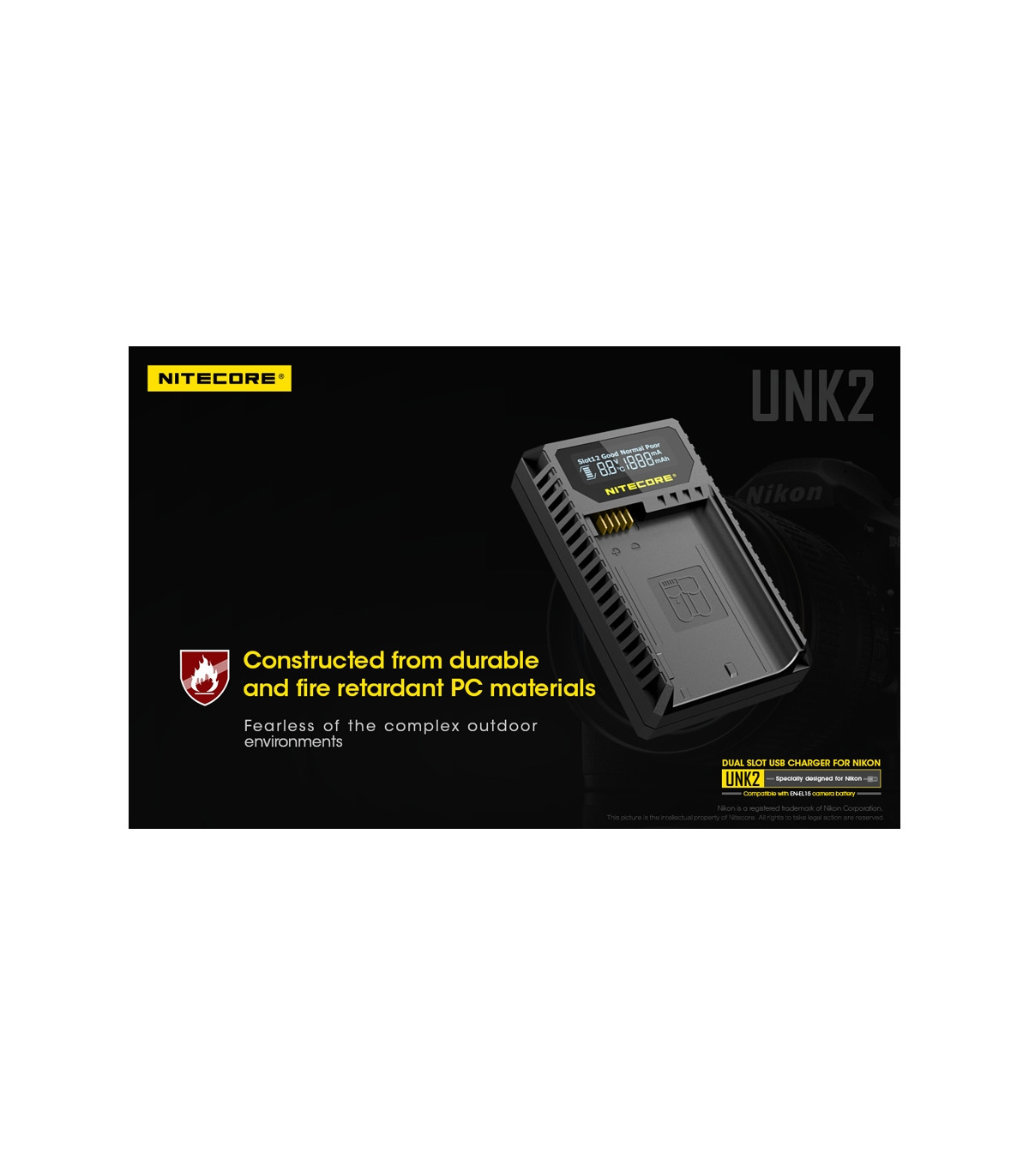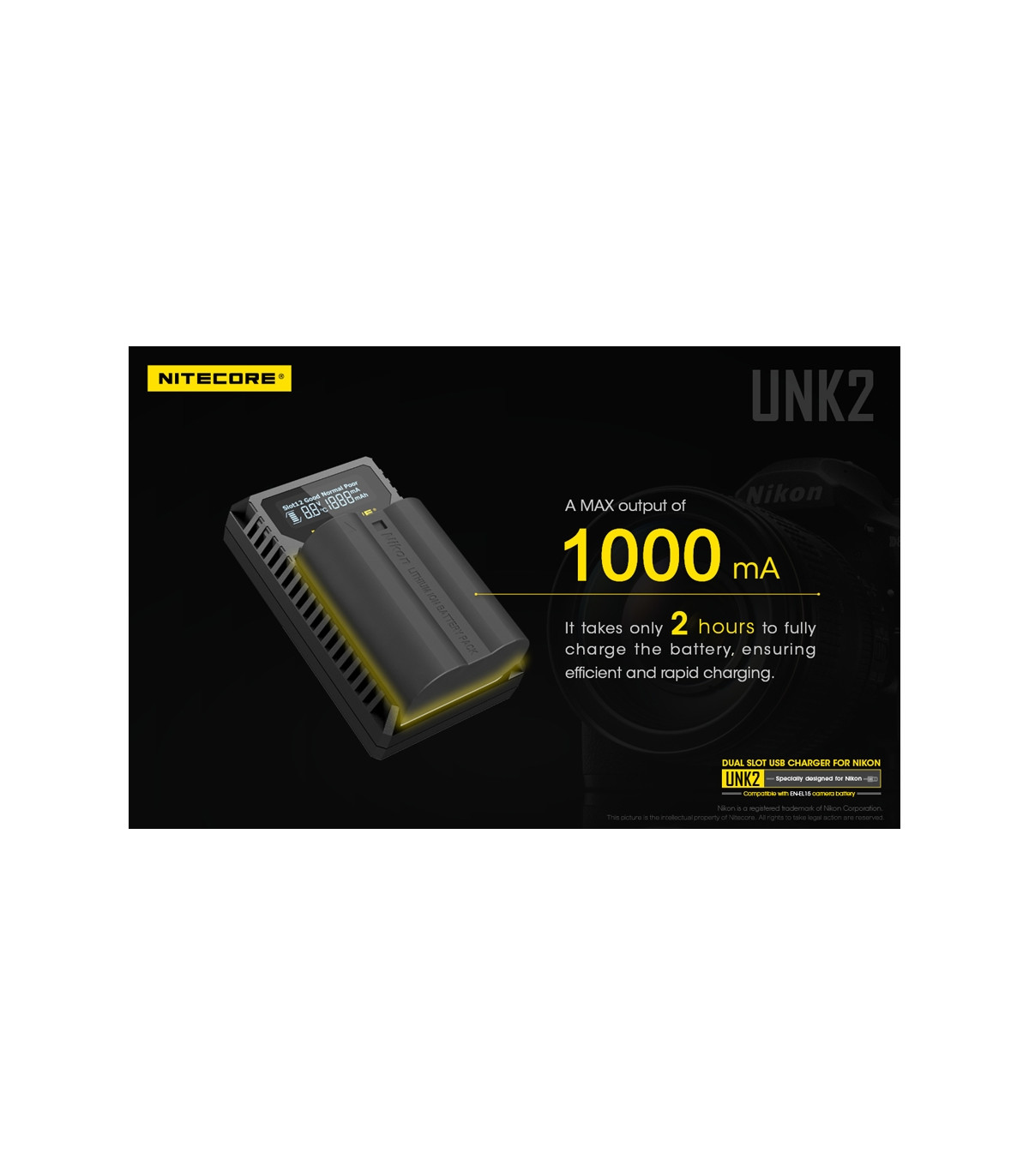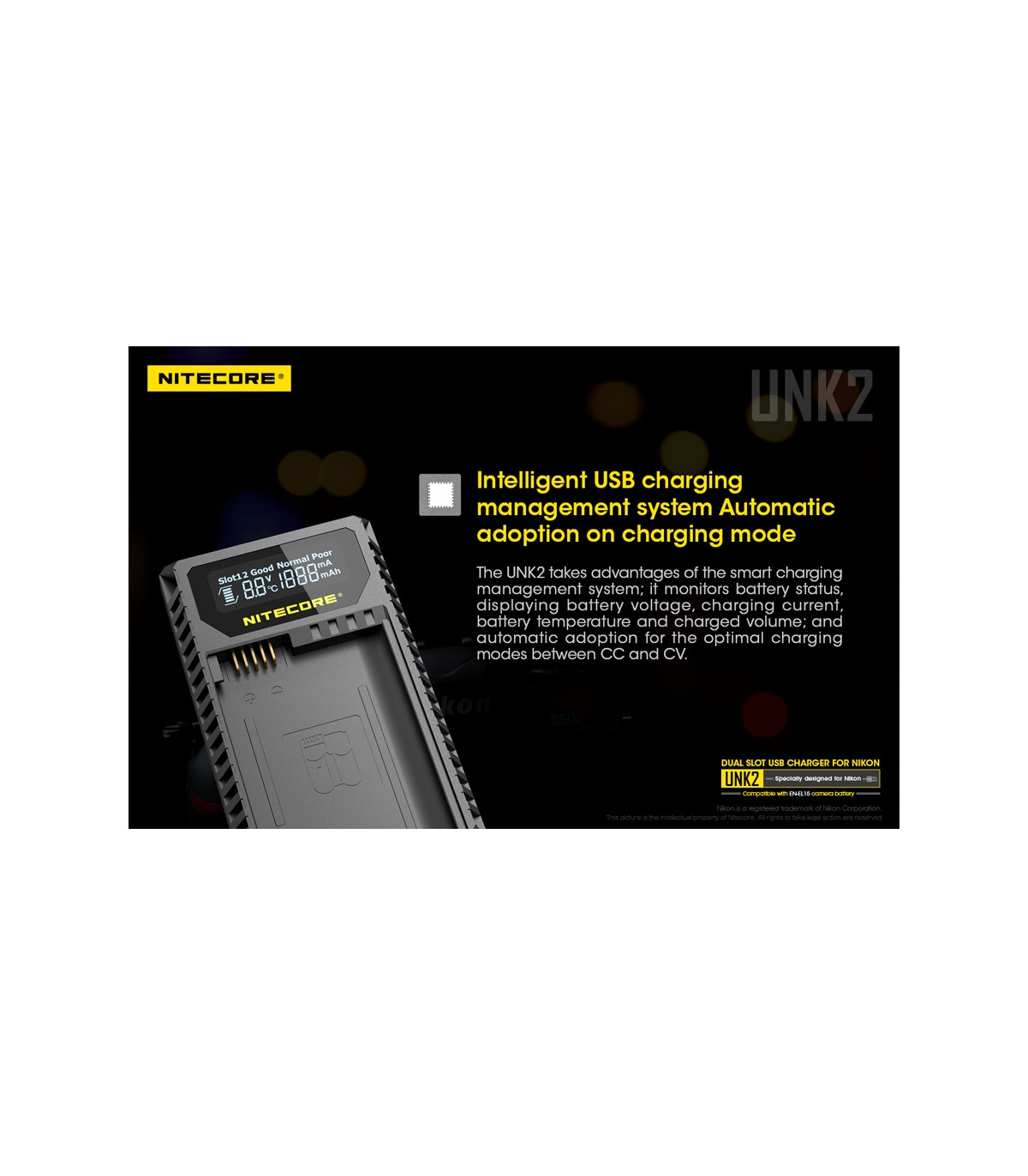 Έχοντας λάβει υπόψη τις συνήθειες των χρηστών φωτογραφικών μηχανών Nikon, ο UNK2 μπορεί να φορτίσει δύο μπαταρίες ταυτόχρονα.