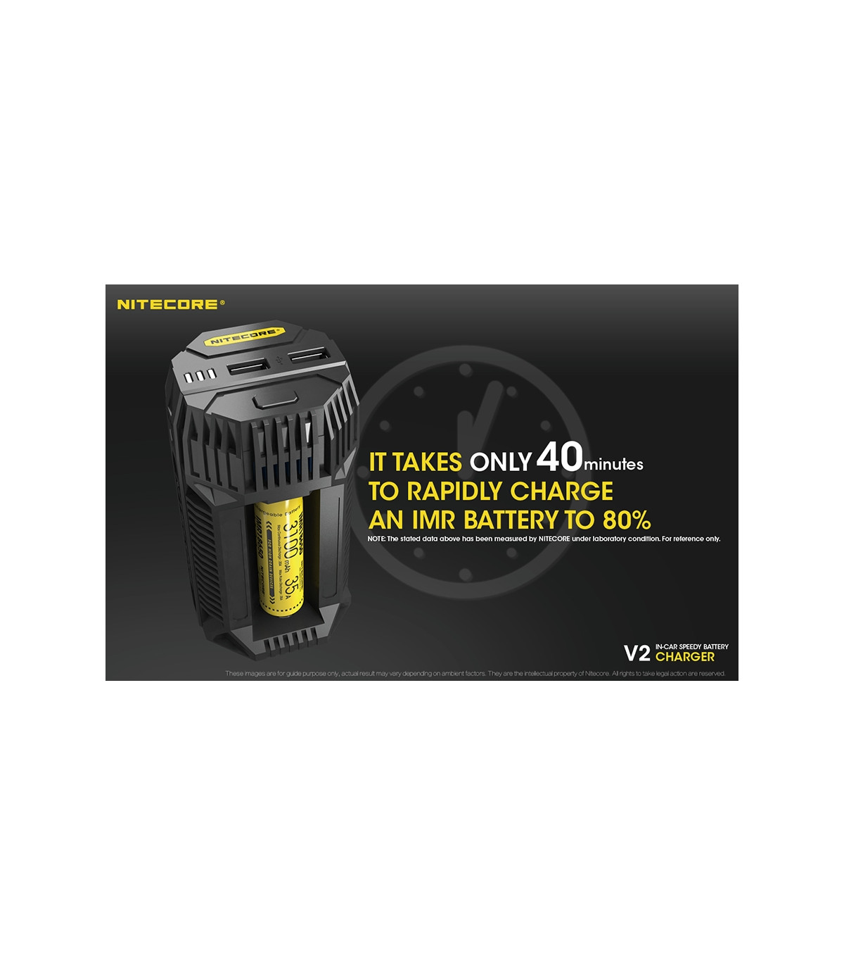 Μόλις 40 λεπτά είναι αρκετά για να γεμίσουν μία μπαταρία IMR18650 έως το 80% της χωρητικότητας της. Ο καινοτόμος σχεδιασμός του που μοιάζει με κύπελο του καφέ, του επιτρέπει να χωρά και να στέκεται με ασφάλεια στις ειδικές θήκες των αυτοκινήτων. Διαθέτει δύο θύρες USB με ισχύ εξόδου 2,1Α σε κάθε μία για την επαρκή τροφοδοσία / φόρτιση smartphones, tablet ή άλλων συσκευών. Η λειτουργία του φορτιστή ελέγχεται από έναν διακόπτη. Είναι εύκολη γρήγορη και ασφαλής. Ενδεικτικές λυχνίες ενημερώνουν για την κατάσταση φόρτισης και το ρεύμα φόρτισης. Με το ενσωματωμένο κύκλωμα ελεγχόμενο από μικροεπεξεργαστή, ο φορτιστής λειτουργεί αυτόματα & έξυπνα αναγνωρίζοντας το τύπο της μπαταρίας και επιλέγοντας το κατάλληλο μοντέλο φόρτισης. Φορτίζει εξίσου καλά, με ειδικό ενσωματωμένο πρόγραμμα (-dV/dt) και μπαταρίες Ni-MH/Ni-CD. Τα πτερύγια / ψήκτρες στο επάνω μέρος της συσκευής διαχέουν την θερμότητα ικανοποιητικά. Στην συσκευασία περιλαμβάνεται και καλώδιο σύνδεσης με αναπτήρα αυτοκινήτου 12V. Ο φορτιστής είναι ικανός να ενεργοποιήσει εξαντλημένες μπαταρίες. Τα υλικά κατασκευής του είναι ανθεκτικά και επιβραδυντικά στην φωτιά