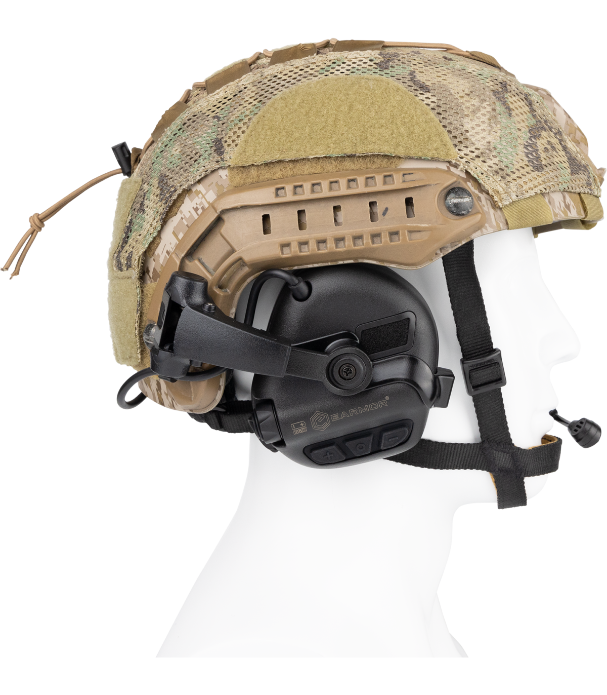 Είναι ένα ψηφιακό ακουστικό βοήθημα ακύρωσης θορύβου που έχει σχεδιαστεί για την προστασία της ακοής στην καθημερινή εκπαίδευση σκοποβολής. Μπορεί να καταστείλει θορύβους που υπερβαίνουν τα 82dB, όπως εκρήξεις ή πυροβολισμούς, ενώ ενισχύει τους περιβαλλοντικούς ήχους. Βελτιώστε την αντίληψή σας για την ομιλία, την κίνηση, τα αεροσκάφη, τα οχήματα, τη λειτουργία των όπλων και τους πυροβολισμούς για την προστασία της ακοής και τη βελτίωση της περιβαλλοντικής ευαισθητοποίησης. Ο αρθρωτός σχεδιασμός επιτρέπει την προσαρμογή σε διαφορετικά συστήματα ανάρτησης. Τα μαξιλαράκια αυτιών από τζελ σφραγίζουν γύρω από τα αυτιά για να εμποδίζουν το θόρυβο ενώ παράλληλα είναι ανθεκτικά στην φθορά. Το σύστημα EMI φιλτράρει αποτελεσματικά τις ηλεκτρομαγνητικές παρεμβολές από άλλες ηλεκτρονικές συσκευές. Οι ηλεκτρονικές ωτοασπίδες M32 PLUS διαθέτουν αποσπώμενο μικρόφωνο με ρυθμιζόμενη γωνία, καλώδιο TP120 Kevlar και σύνδεσμο στρατιωτικού προτύπου U-174 (ΝΑΤΟ). Συνδέεται με πομποδέκτες για επικοινωνία μέσω του PTT EARMOR® M51/52 (ή άλλου PTT κατά το πρότυπο του ΝΑΤΟ).
