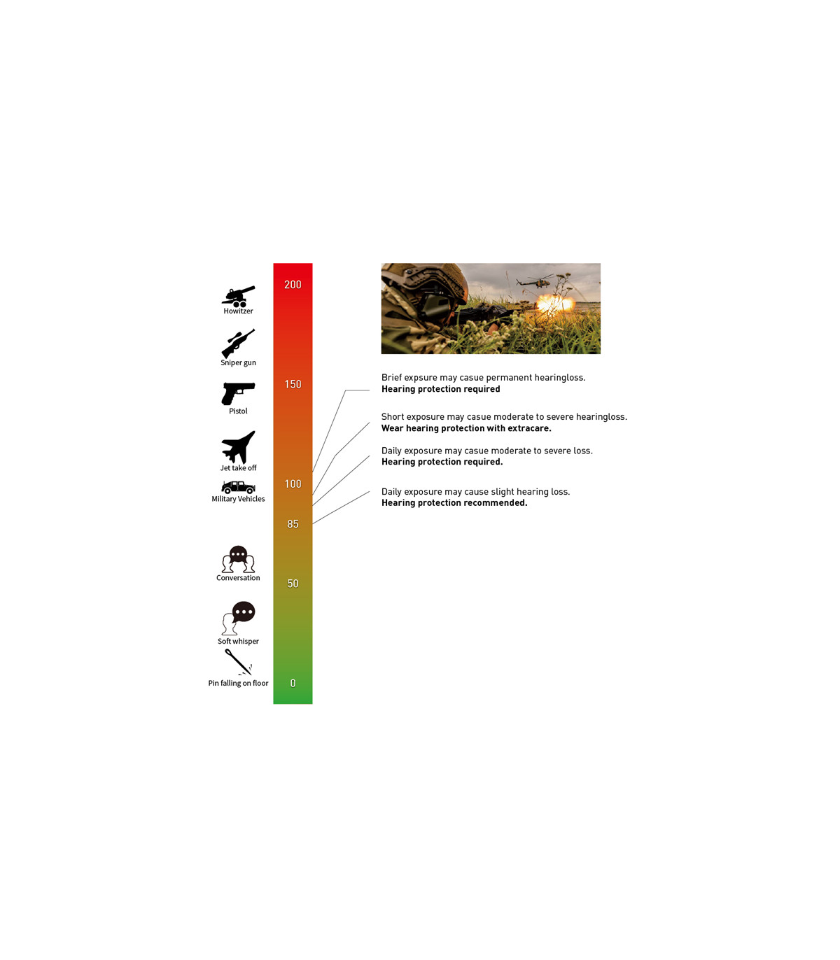 Βελτιώνει την αντίληψη της ομιλίας, της κίνησης, των αεροσκαφών, των οχημάτων, της λειτουργίας των όπλων και των πυροβολισμών, ώστε όχι μόνο να προστατεύει την ακοή αλλά και να βελτιώνει την περιβαλλοντική επίγνωση.