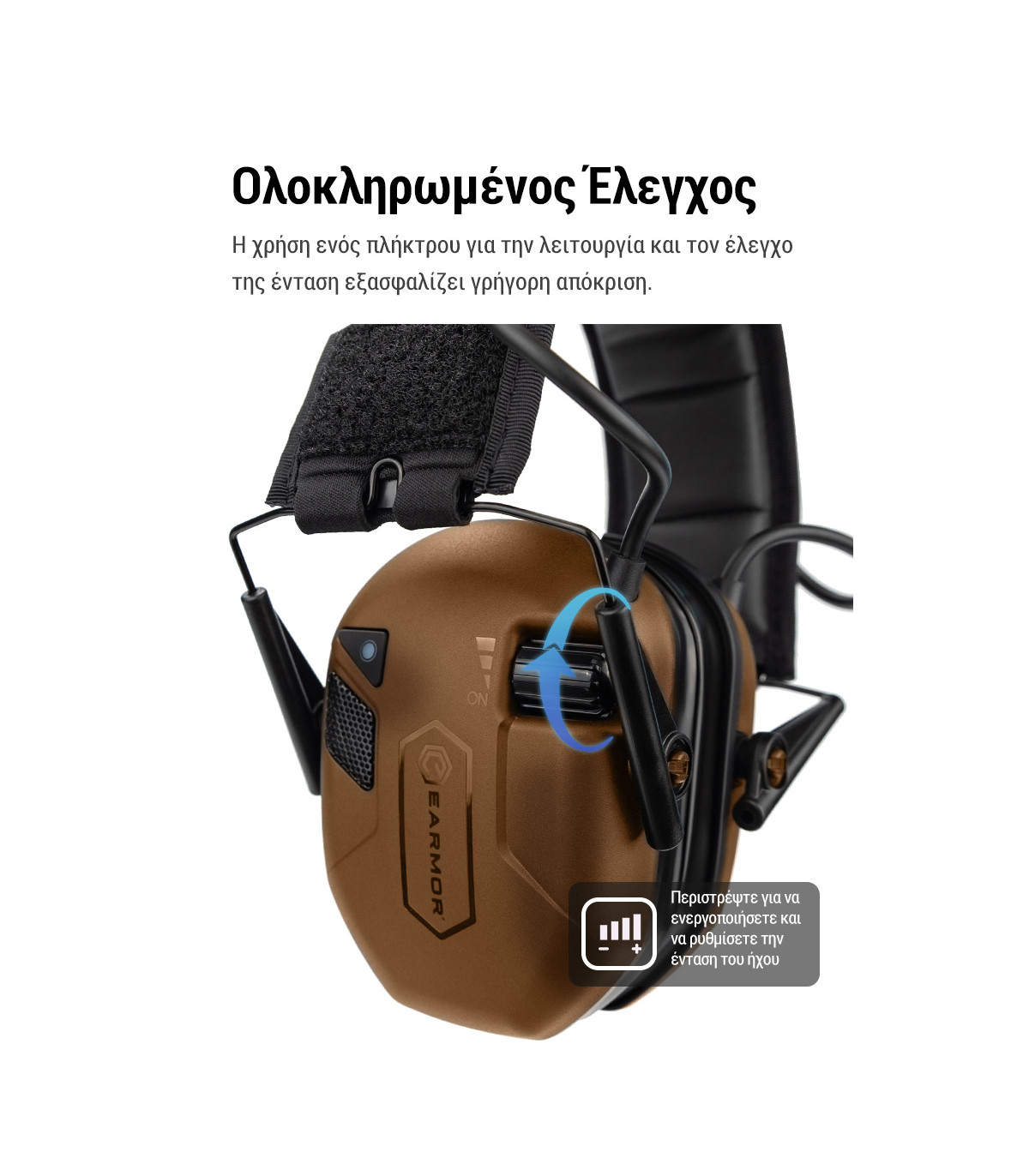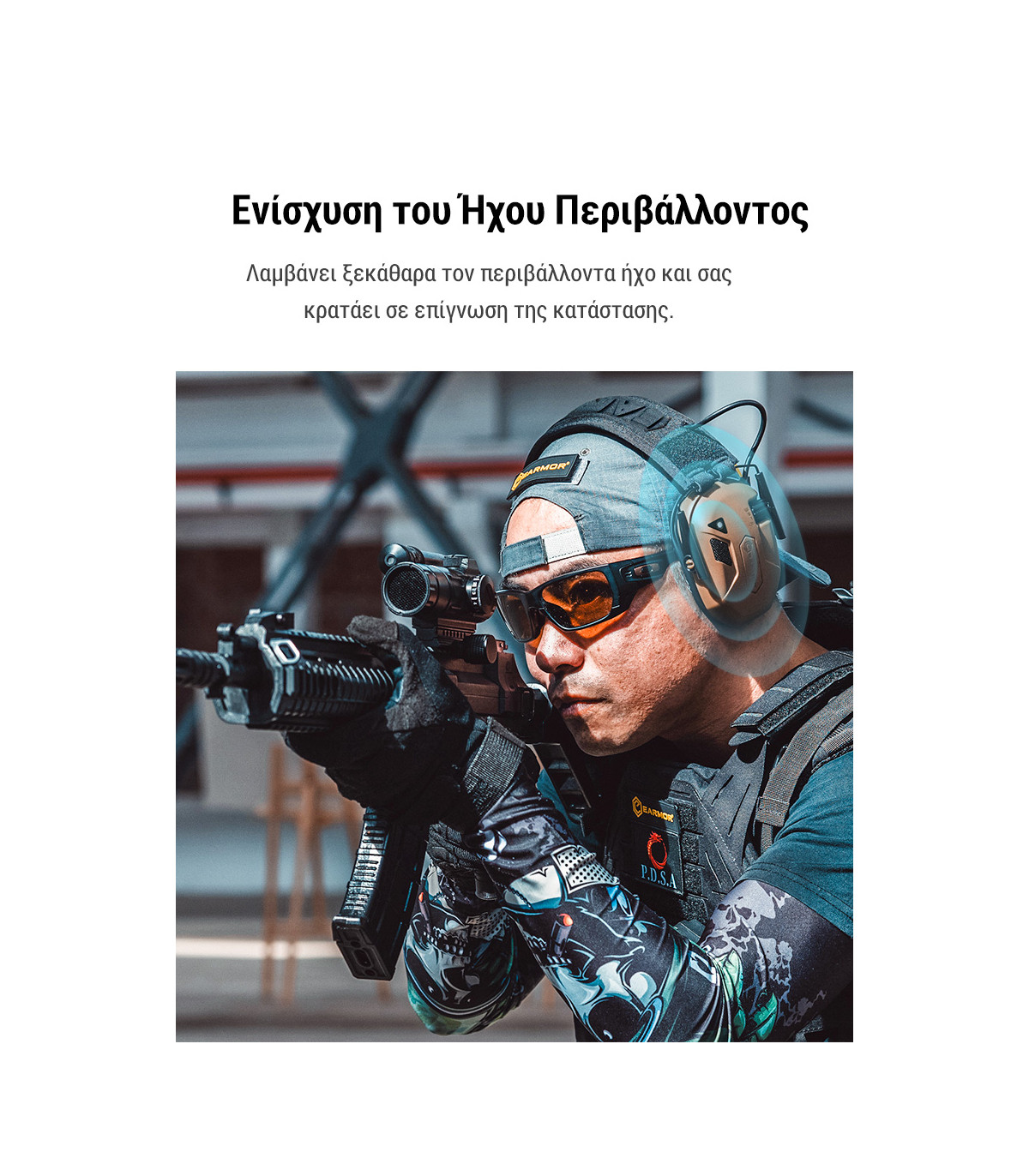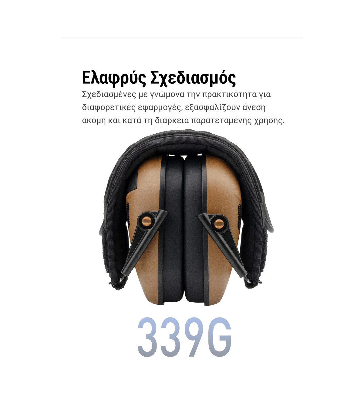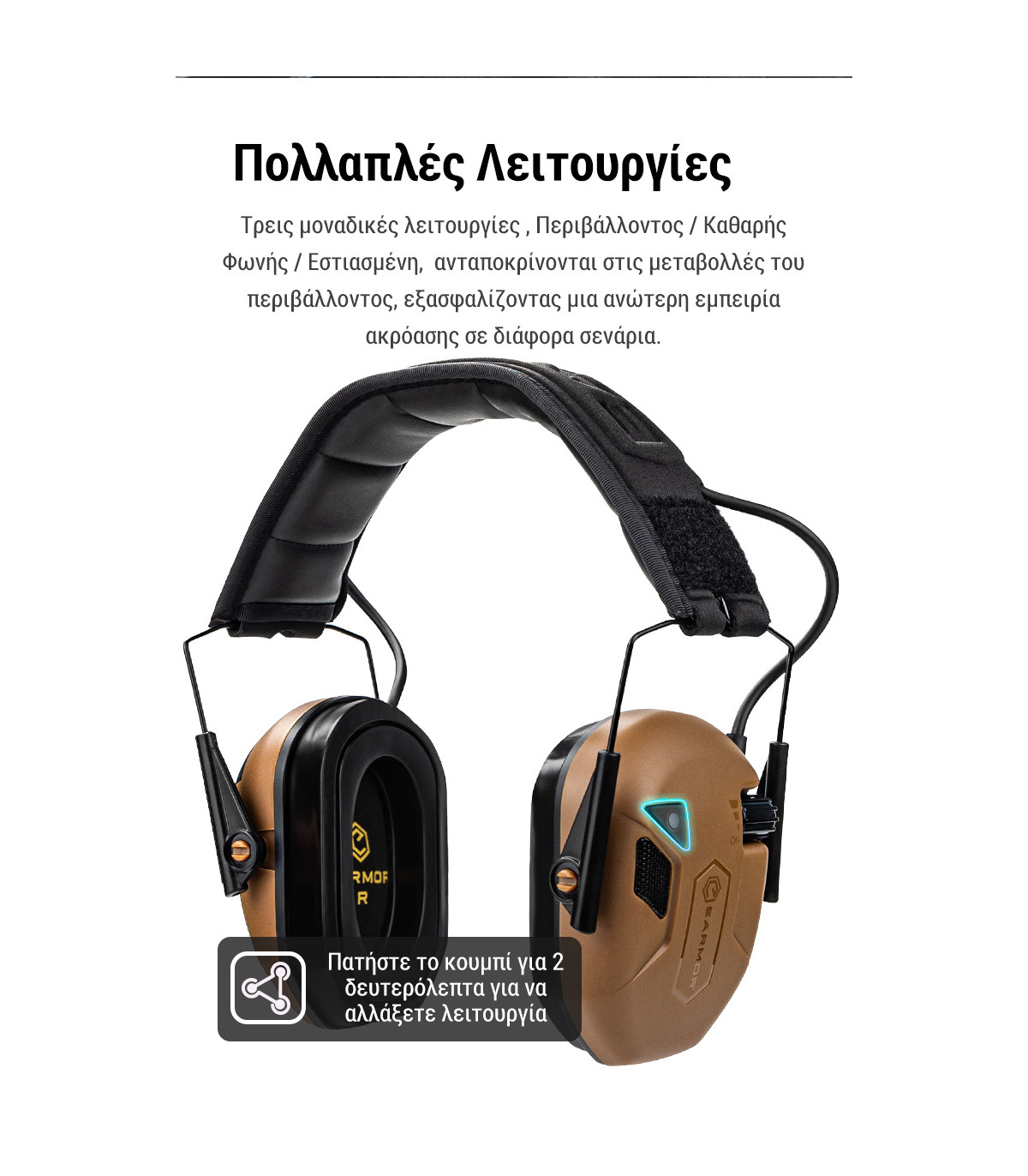Εξοπλισμένες με ένα ενσωματωμένο τσιπ που χρησιμοποιεί προηγμένη τεχνολογία επεξεργασίας ψηφιακού σήματος, μειώνουν αποτελεσματικά τον ένταση του ήχου σε θορυβώδη περιβάλλοντα και ελαχιστοποιούν τη ζημιά που προκαλείται στην ακοή από τον ήχο των πυροβολισμών .