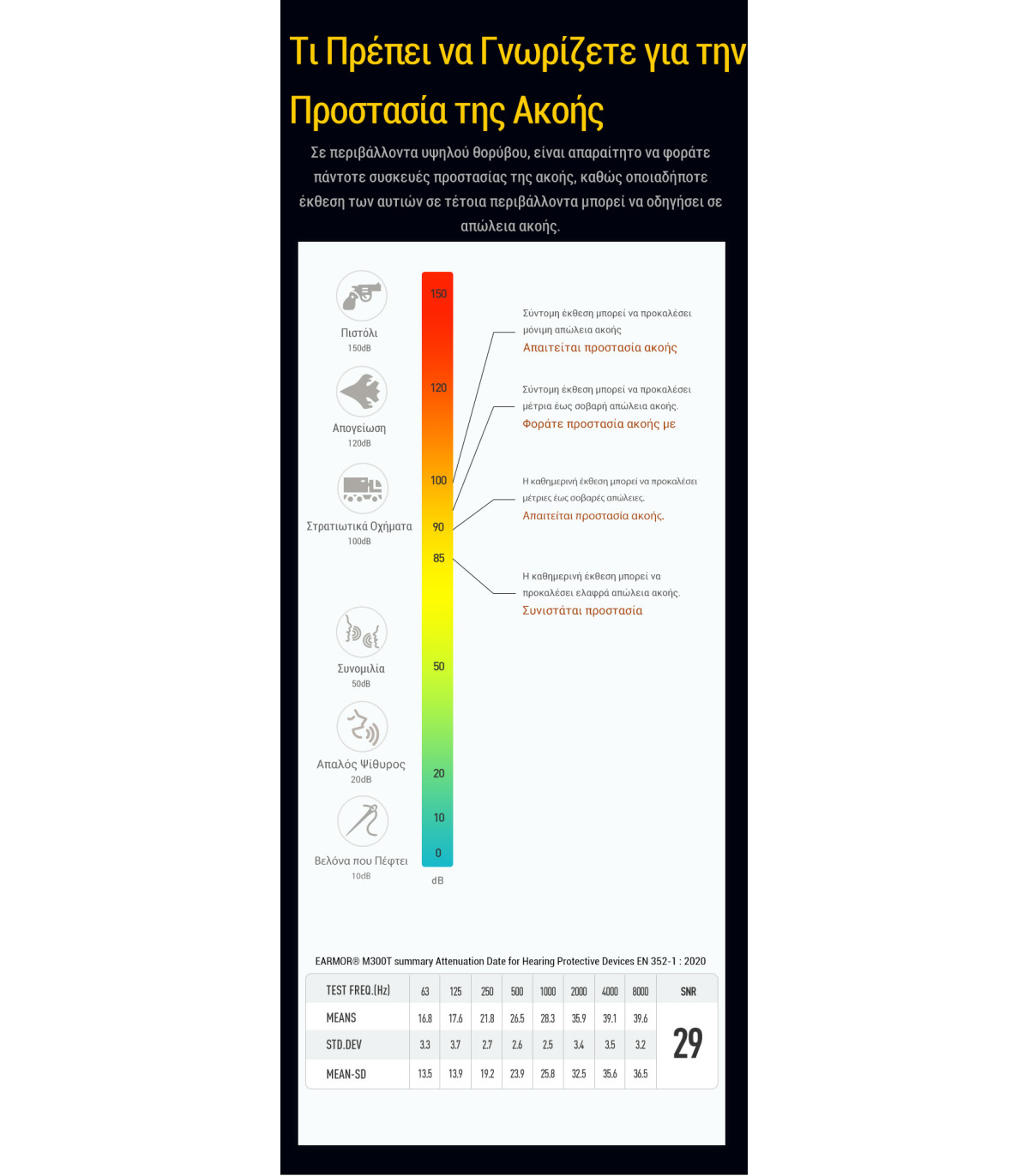 Οι ωτοασπίδες EARMOR ® M300T είναι ακουστικά ακύρωσης θορύβου που έχουν σχεδιαστεί για να παρέχουν στους χρήστες ασφαλή και αξιόπιστη προστασία ακοής.