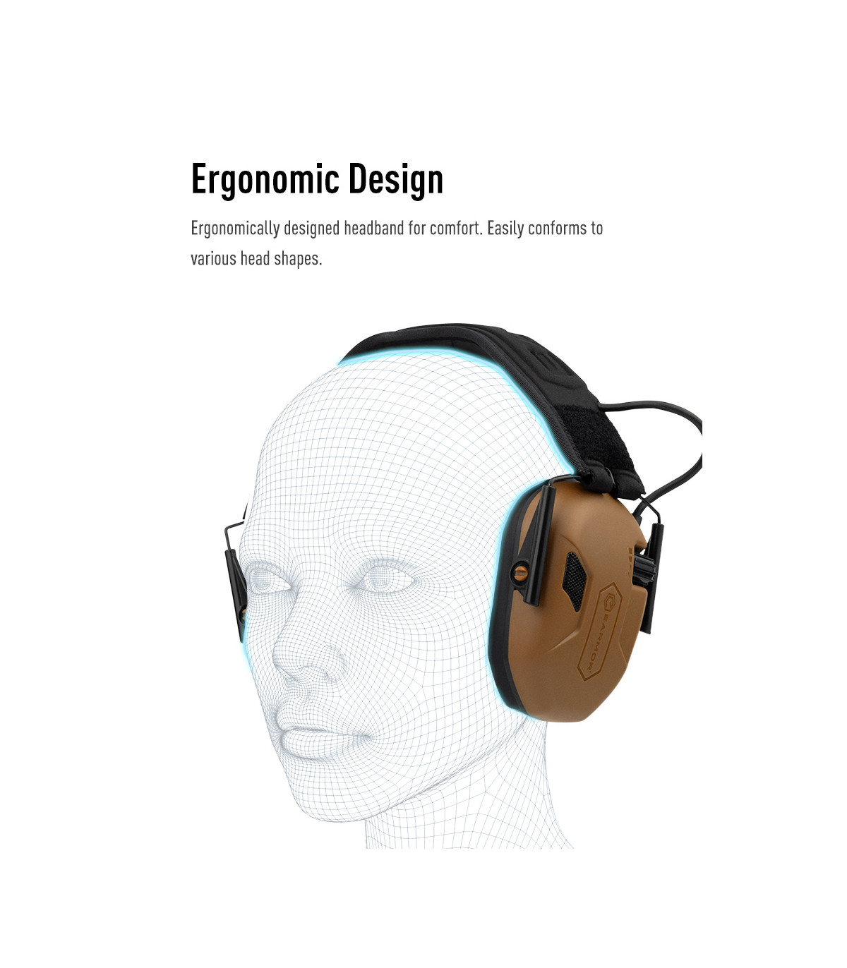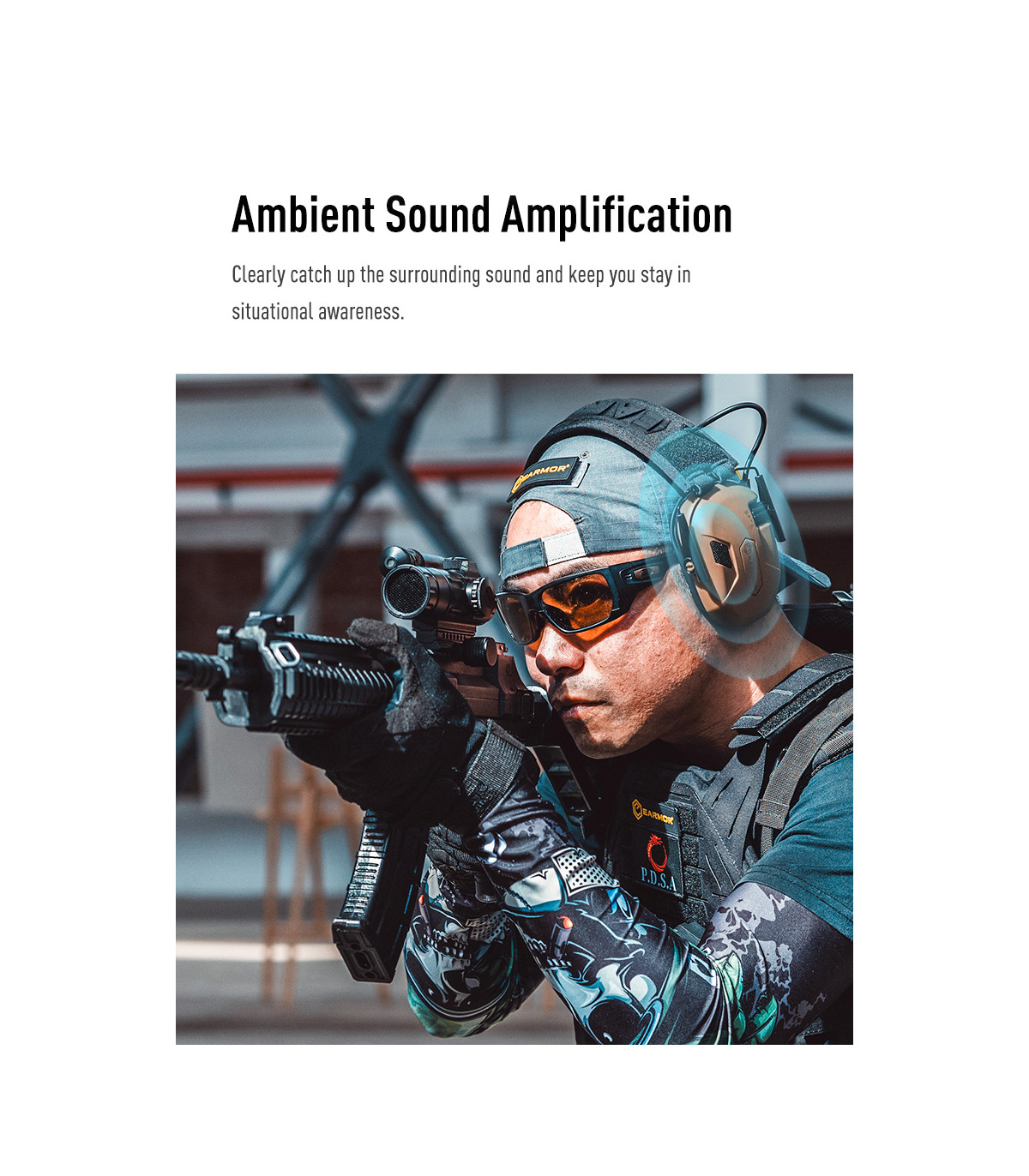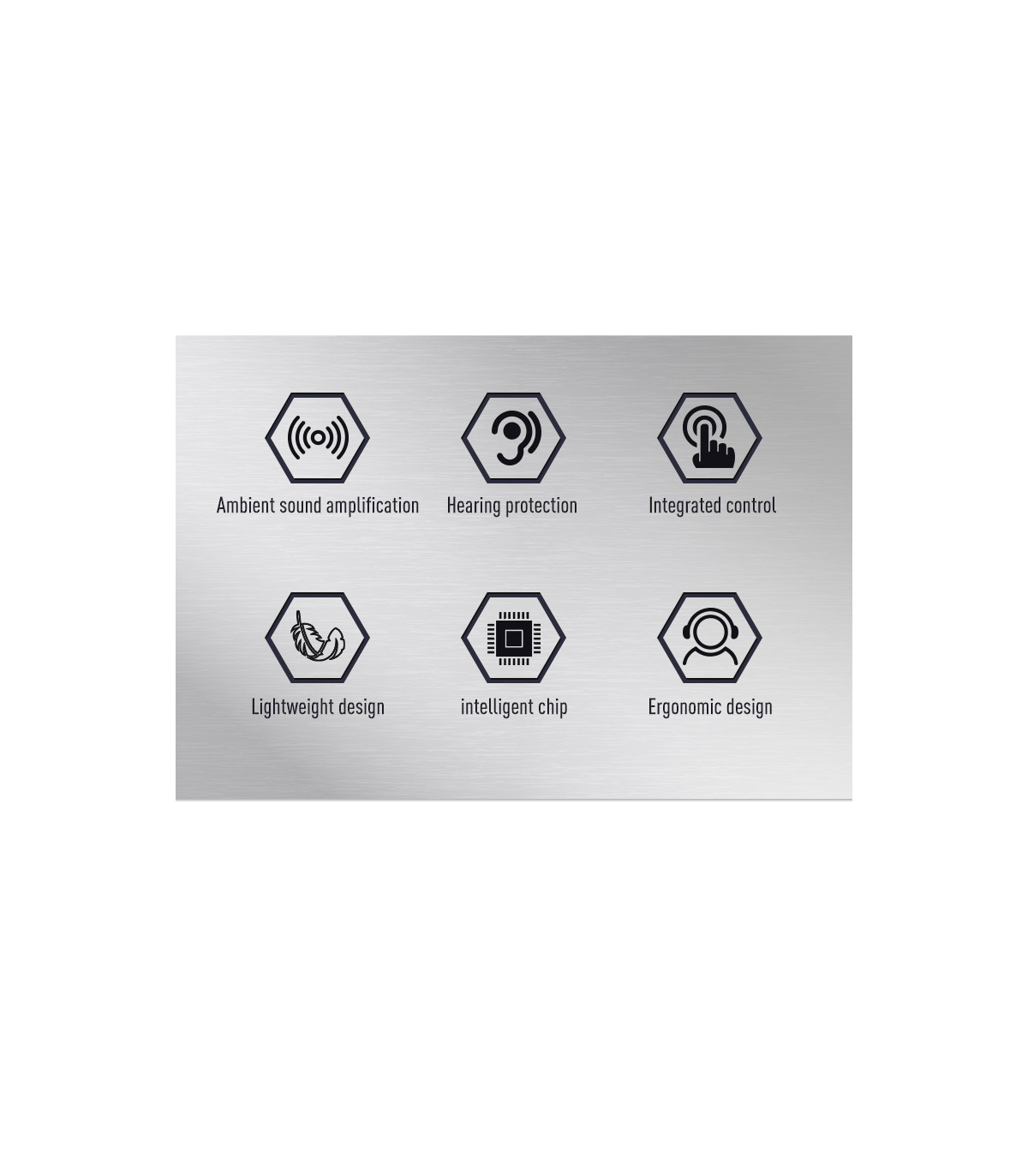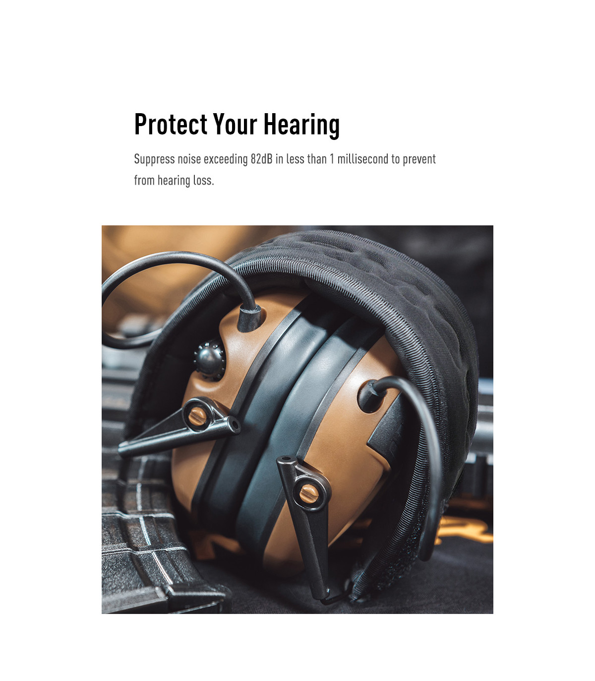 Εξοπλισμένες με ένα ενσωματωμένο τσιπ που χρησιμοποιεί προηγμένη τεχνολογία επεξεργασίας ψηφιακού σήματος, μειώνουν αποτελεσματικά τον ένταση του ήχου σε θορυβώδη περιβάλλοντα και ελαχιστοποιούν τη ζημιά που προκαλείται στην ακοή από τον ήχο των πυροβολισμών .