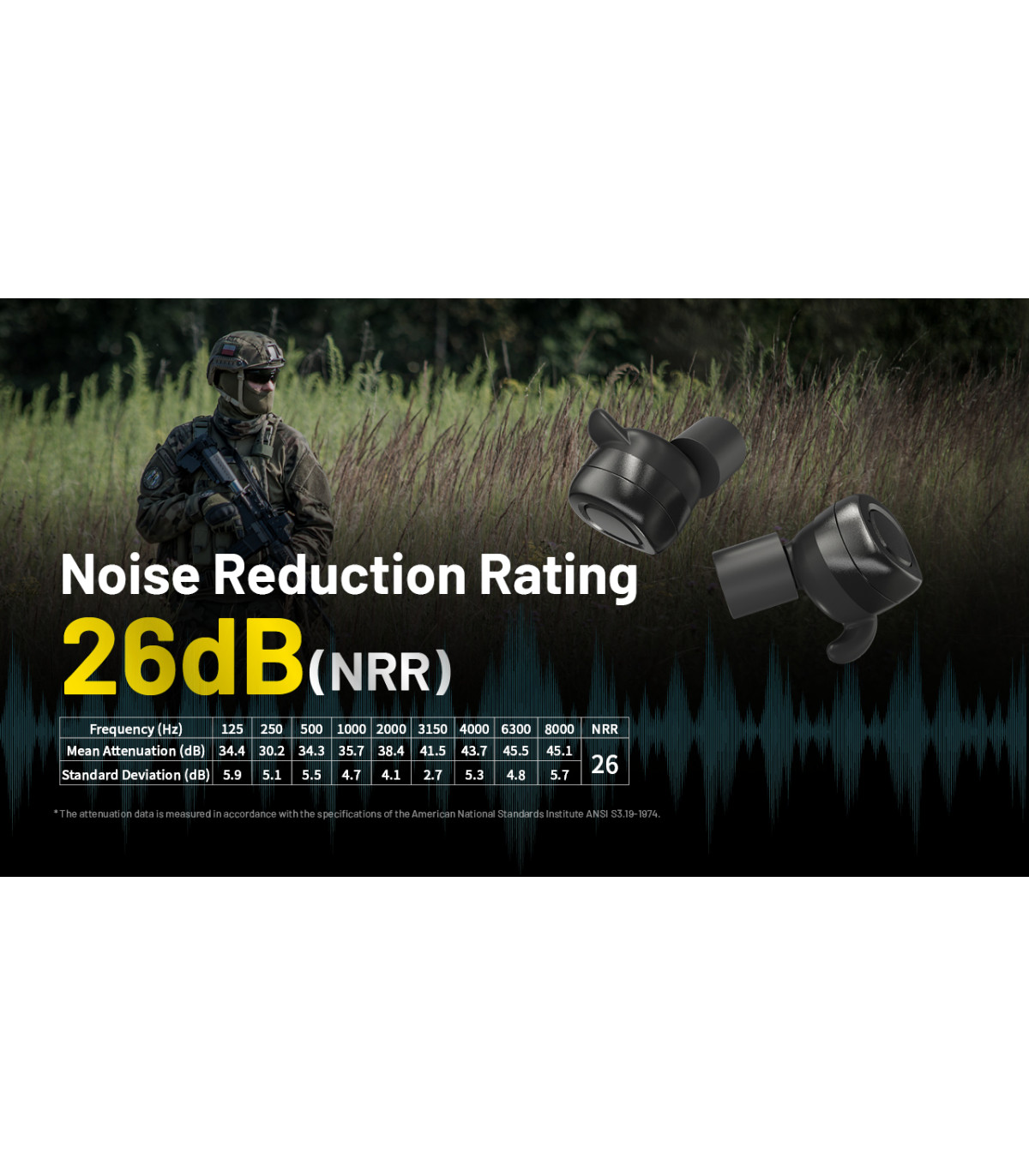 | Βαθμολογία μείωσης θορύβου (NRR) | 26dB |