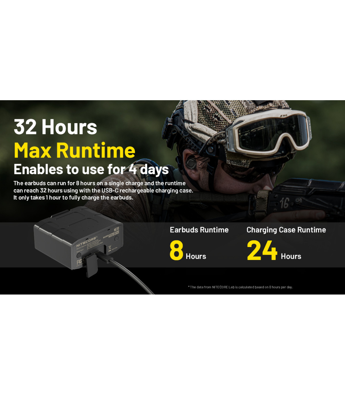 * Τα παραπάνω αναγραφόμενα δεδομένα είναι από τα εργαστήρια της NITECORE και βασίζονται σε χρήση 8 ωρών ανά ημέρα.