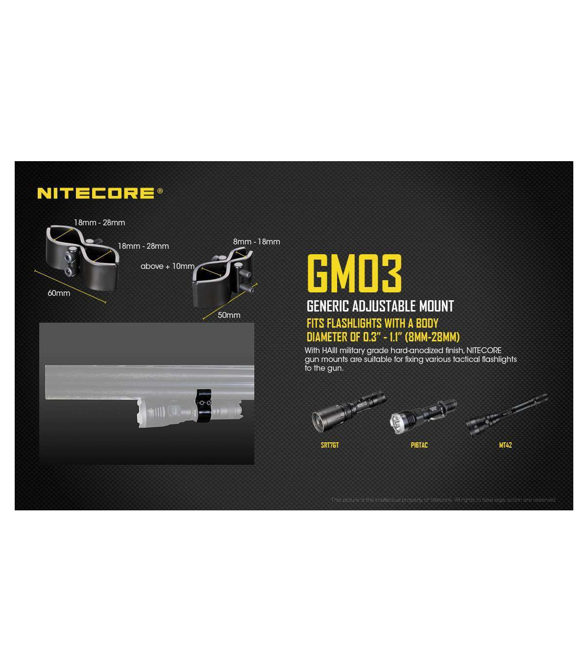 The GM03 is a versatile gun mount for Nitecore lights, adjustable with allen key.