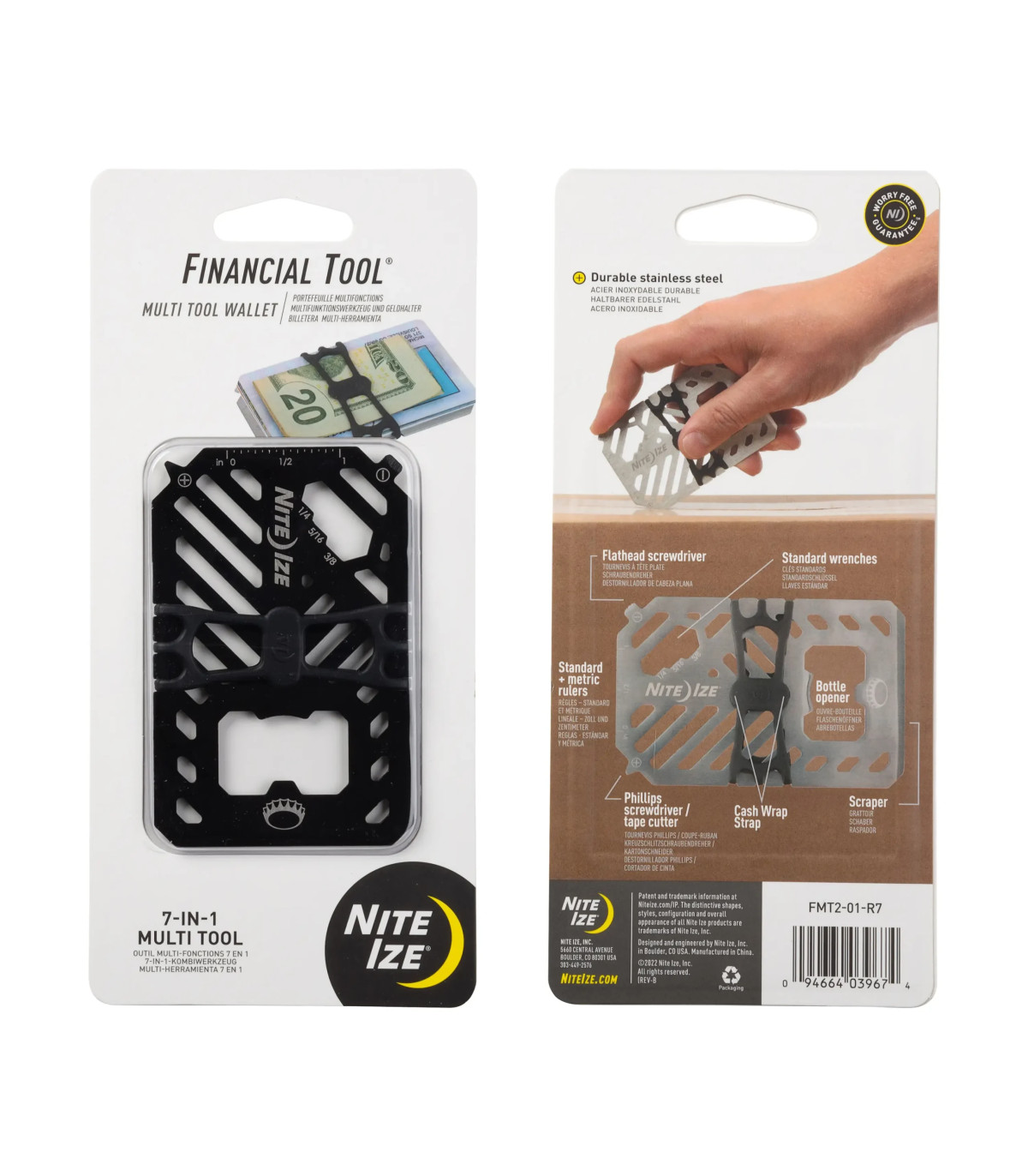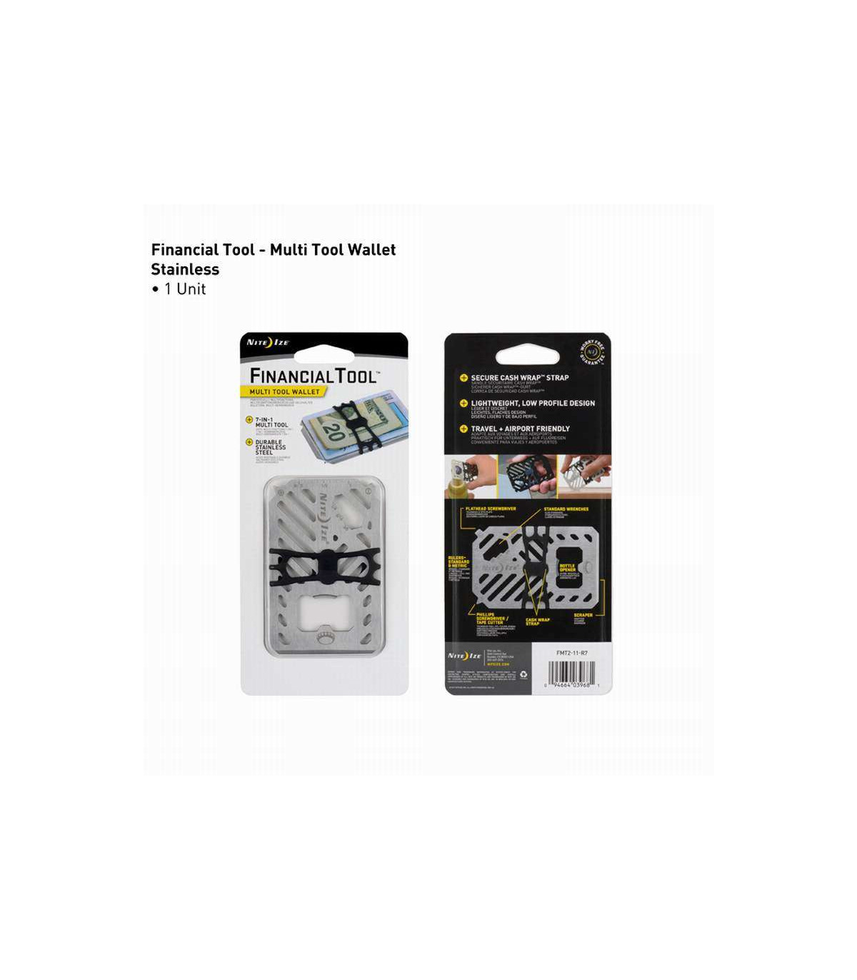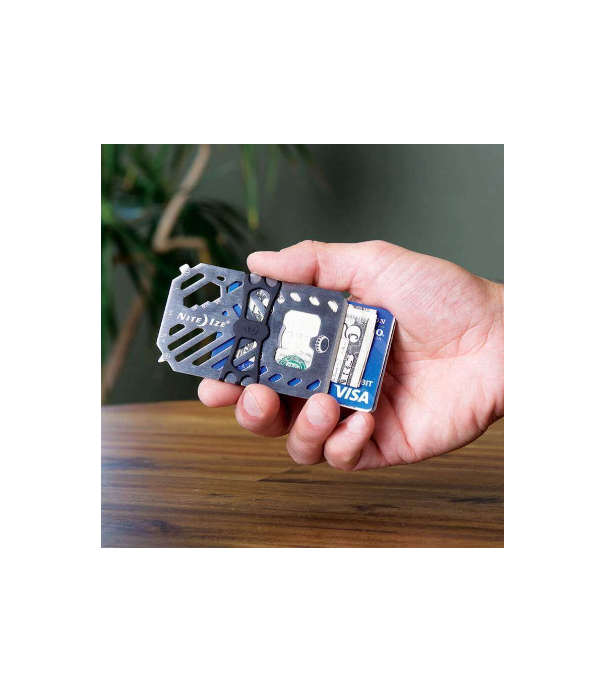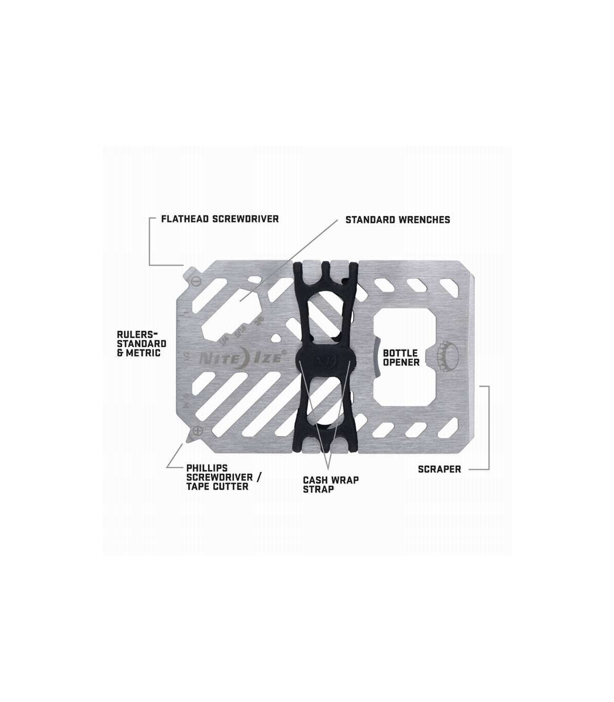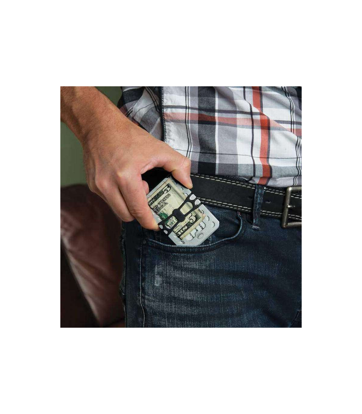 Where innovation and efficiency meet: this 7-in-1 multi tool can be a wrench, screwdriver, bottle opener, ruler, scraper, and securely hold your cash and cards without breaking a sweat. Don't be deceived by the sleek look of the cash wrap strap - the high-tensile strength strap is strong enough to handle even your biggest payday. Forged from heat-treated stainless steel, this wallet won't bend, won't break, and will never let you down. Its slim and minimalist design makes this the perfect low-profile wallet.