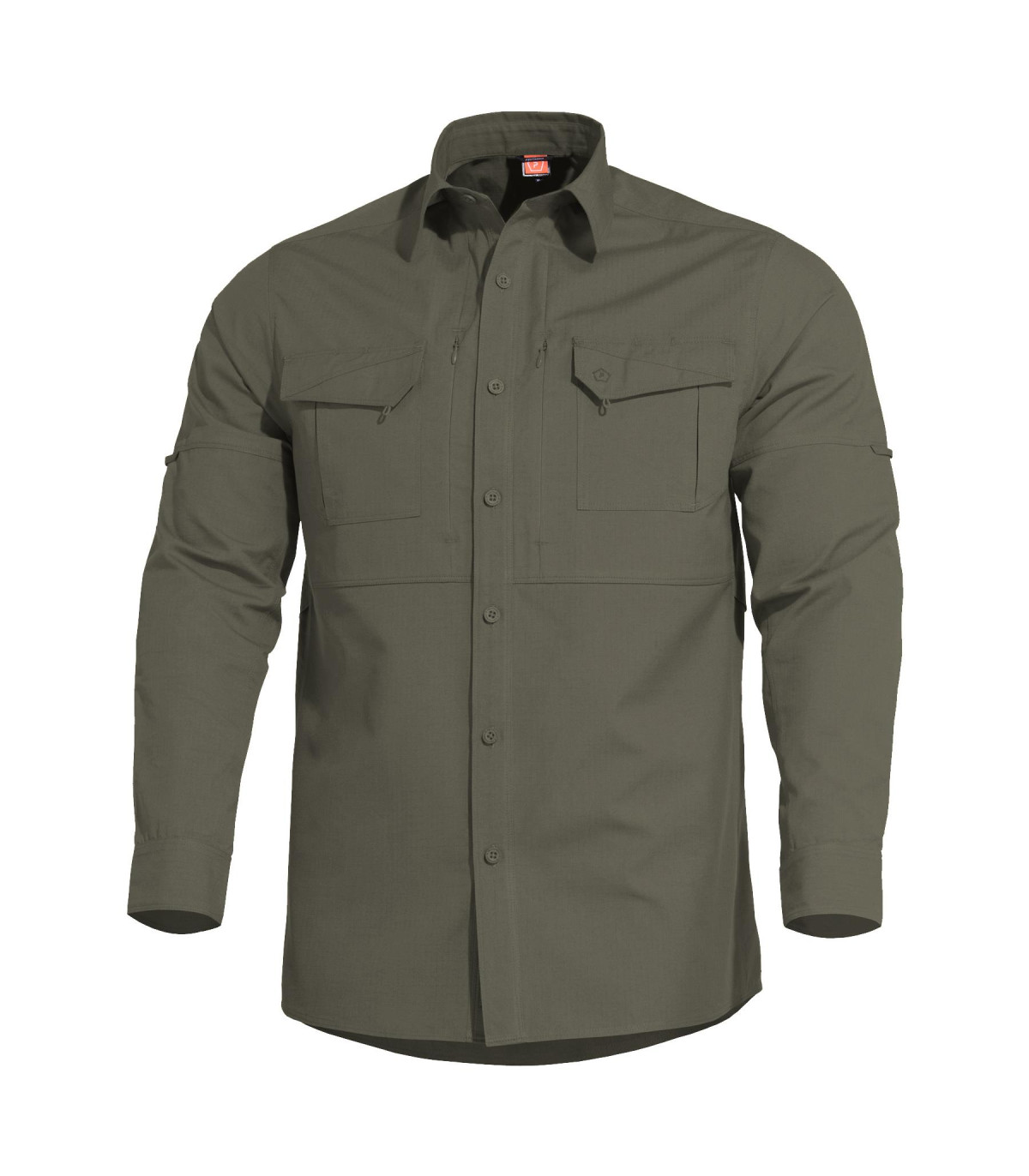 PLATO Tactical ShirtΕπανασχεδιασμένο tactical πουκάμισο κατάλληλο και για επιχειρησιακή αλλά και για καθημερινή χρήση με κρυφή τσέπη στο στήθος, χαμηλό προφίλ και κρυφό σύστημα συγκράτησης μανικιών. ΠΡΟΔΙΑΓΡΑΦΕΣ79% Πολυέστερ 21% Βαμβάκι 220γρμ. Rip-stop ύφασμα YKK® φερμουάρTeflon™ ύφασμα από DuPont® που δεν λερώνει ευκολάΚρυφές τσέπες στήθουςΚρυφό σύστημα συγκράτησης μανικιών