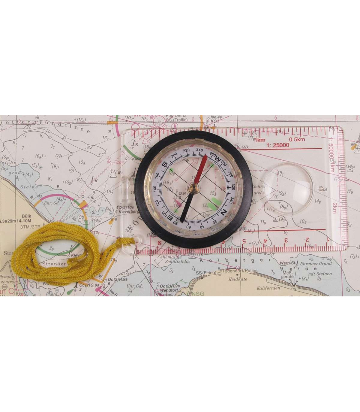 Map compass with plastic body, magnifier and measuring device. Topography and orientation essential gear.