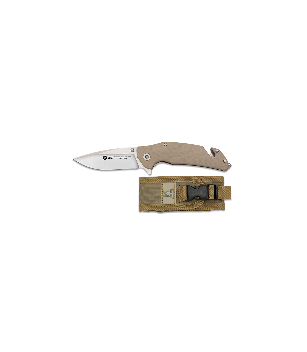 Επιχειρησιακός σουγιάς με κόφτη ζώνης, ακίδα θραύσης κρυστάλλων και ποιοτική θήκη.