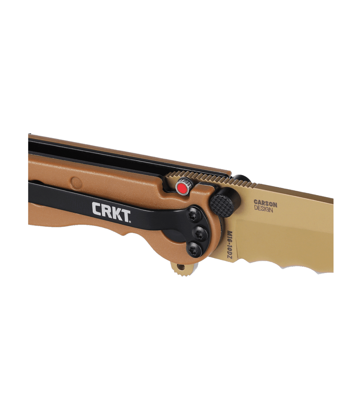 Από τη δημοφιλή σειρά μαχαιριών M16®, το M16®-10DZ είναι ένα μαχαίρι καθημερινής χρήσης, σχεδιασμένο για να χρησιμοποιείται, όπως ακριβώς και η τακτική έκδοση που το ενέπνευσε. Η λεπίδα τύπου tanto με Veff Serrations™ του δίνει επιπλέον ευελιξία, κάνοντας αβίαστες κοπές μέσα από σχοινιά και ινώδη υλικά, ενώ η αυτοματοποιημένη ασφάλεια επένδυσης προσφέρει ένα επιπλέον επίπεδο ασφάλειας κλειδώματος. Η υπογραφή Carson Flipper και τα ρουλεμάν IKBS™ εξασφαλίζουν ομαλό άνοιγμα και κλείσιμο κάθε φορά, καθιστώντας το διαισθητικό στο χέρι. Τώρα διαθέσιμο σε desert tan, αυτό το πτυσσόμενο μαχαίρι είναι έτοιμο για τη γραμμή της υπηρεσίας – σε όποια ιδιότητα θεωρείτε κατάλληλη.