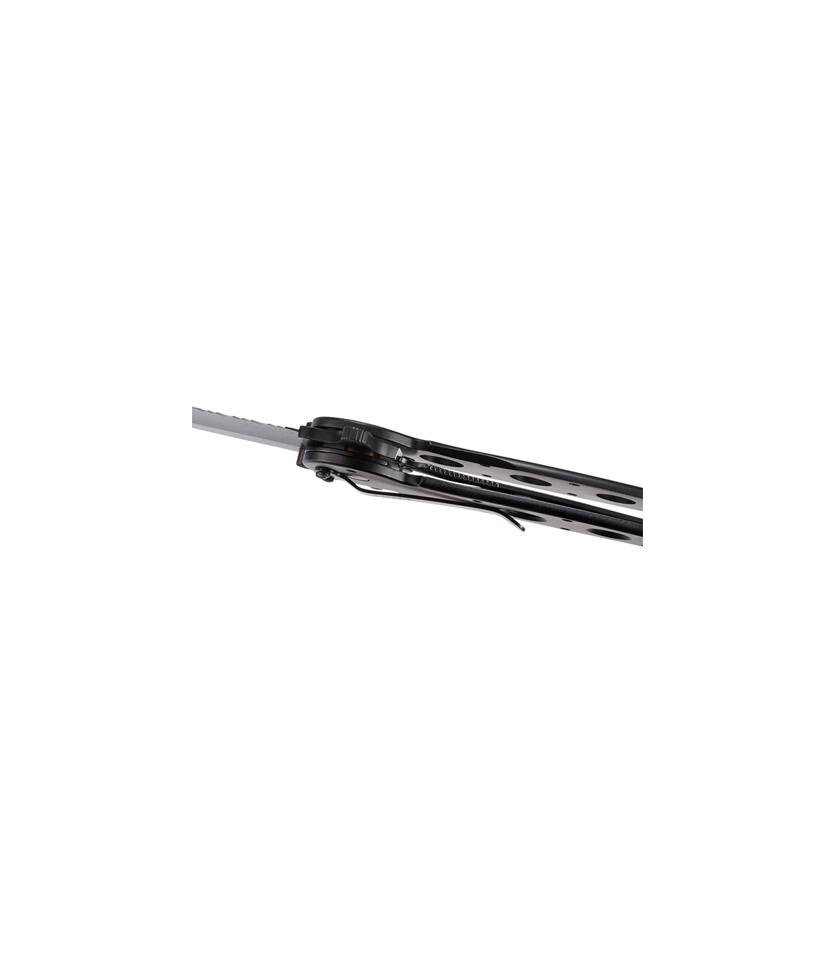 Οι λεπίδες Tanto διπλής λείανσης προσδιορίστηκαν επειδή προσφέρουν μέγιστη αντοχή. Η ανοιχτή κατασκευή επιτρέπει την ενσωμάτωση δύο Carson Flippers, με αποτέλεσμα μια πραγματική λαβή — πολύ σπάνια στα πτυσσόμενα μαχαίρια.