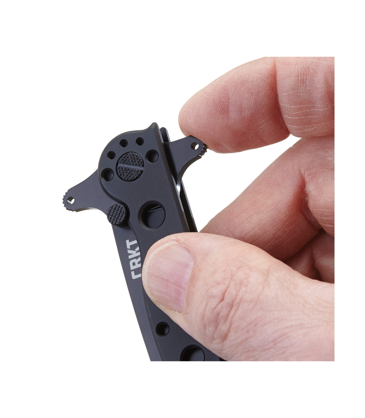 Διαθέτει μαύρο φινίρισμα λεπίδας EDP (Ηλεκτροστατική βαφή) κατασκευασμένο για αντοχή στη διάβρωση, κλειδαριά πλαισίου για ασφάλεια, σύστημα ανάπτυξης Carson Flipper και οδοντώσεις Triple Point™.