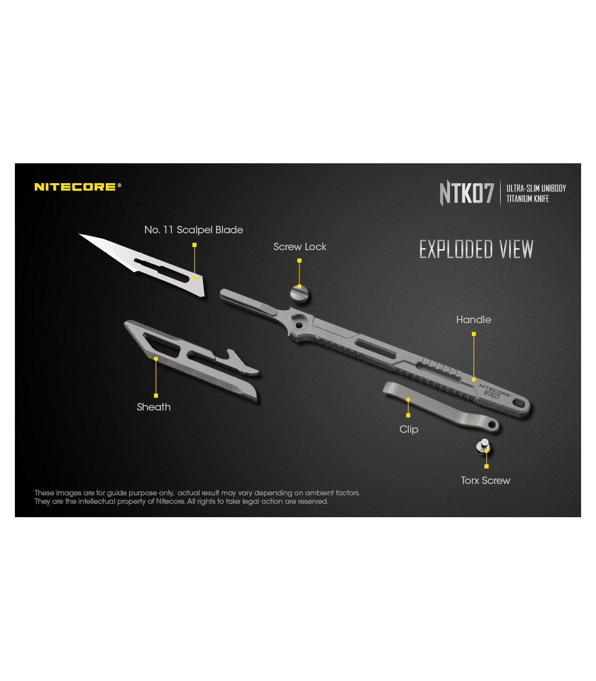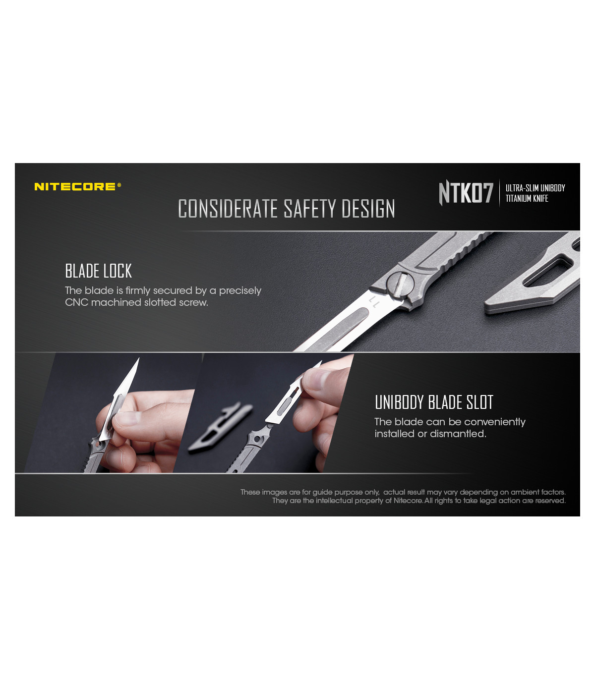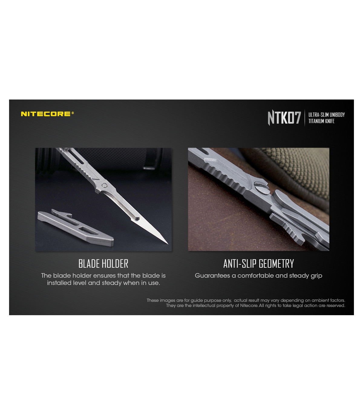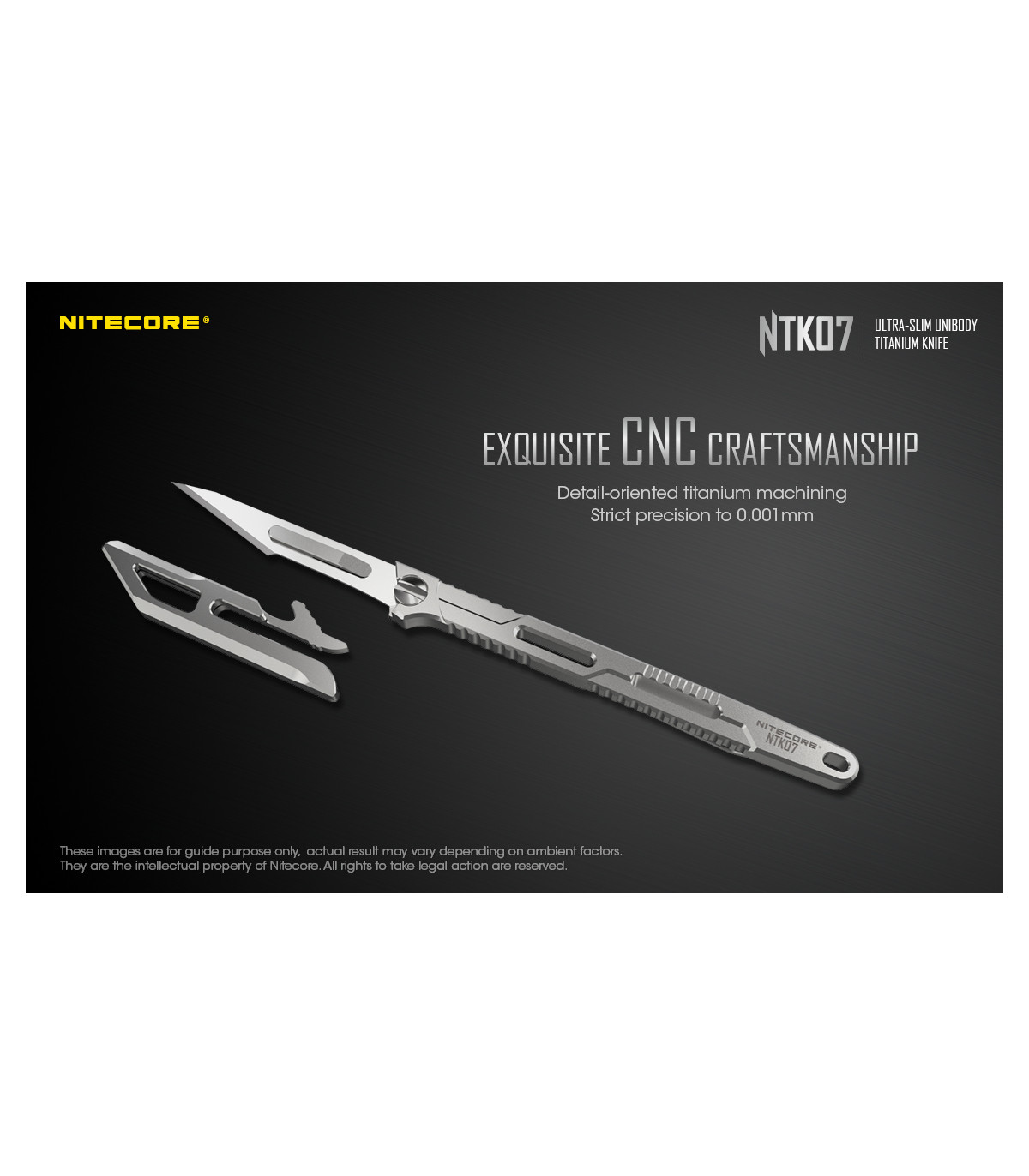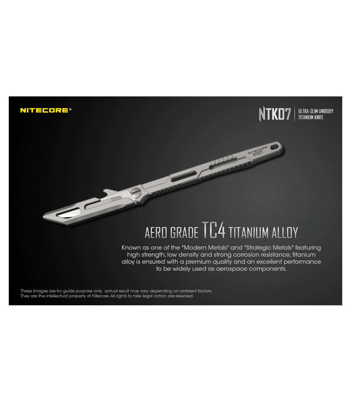 Το NTK07 είναι ένα εξαιρετικά λεπτό μαχαίρι τιτανίου, ενιαίου σώματος κατασκευασμένο από κράμα τιτανίου TC4 αεροναυπηγικής ποιότητας με εξαιρετική