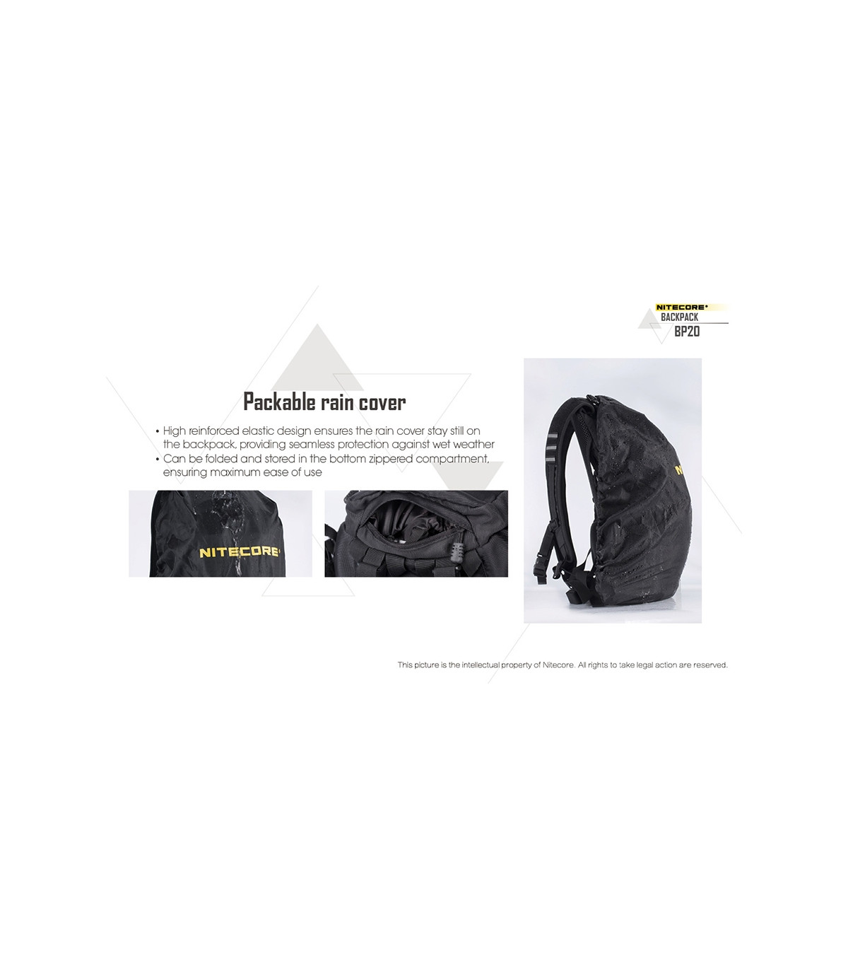 – Κάλυμμα για την βροχή που καλύπτει ολόκληρο το σακίδιο και το προστατεύει σε συνθήκες υψηλής βροχής.
