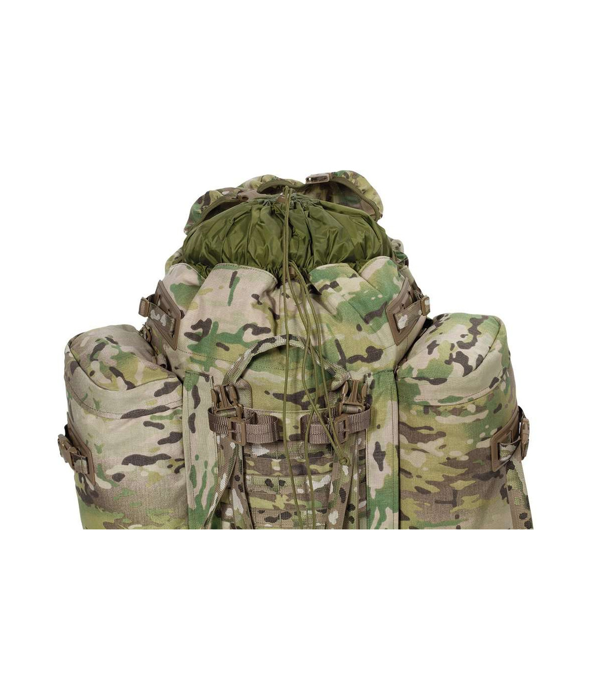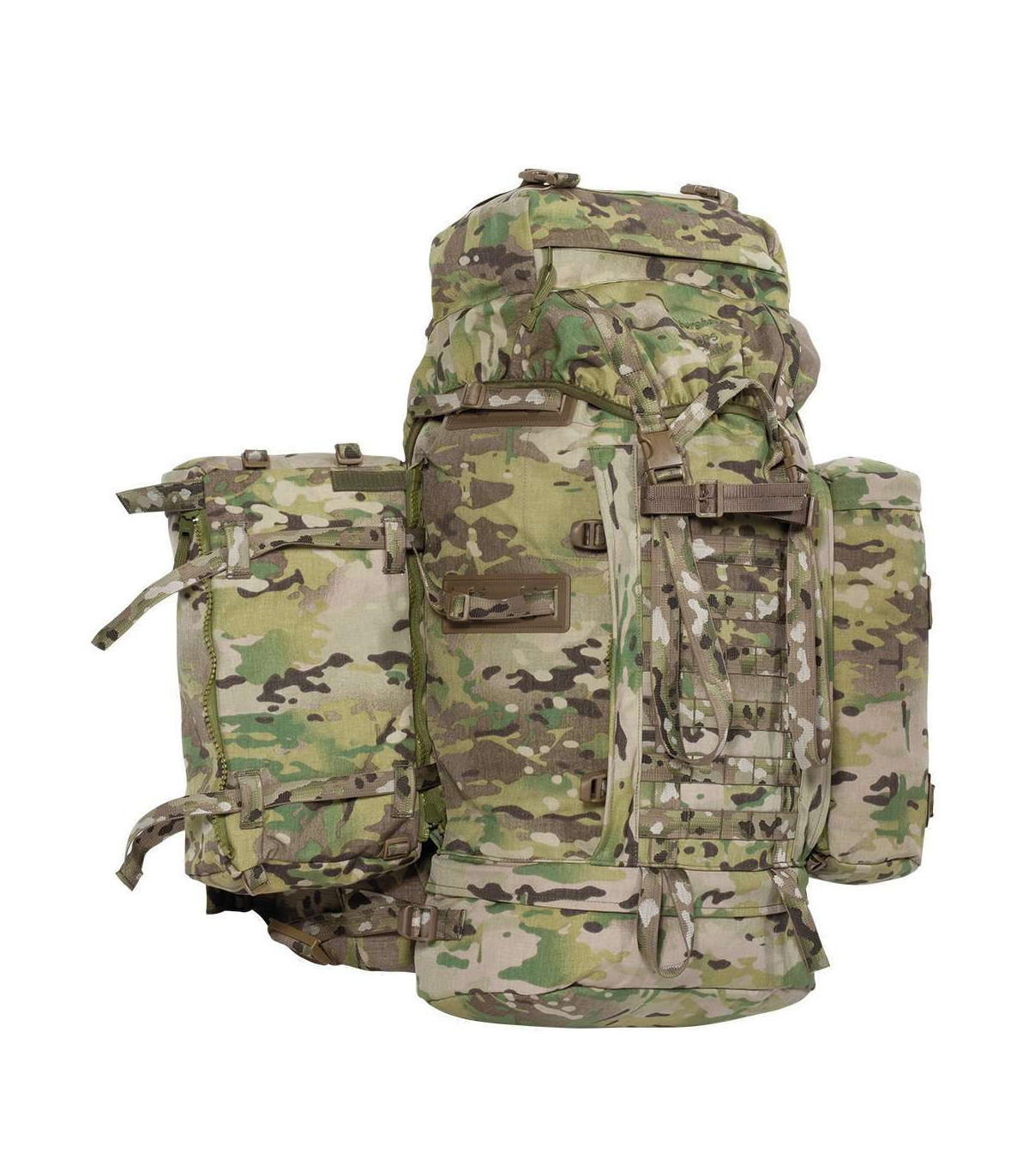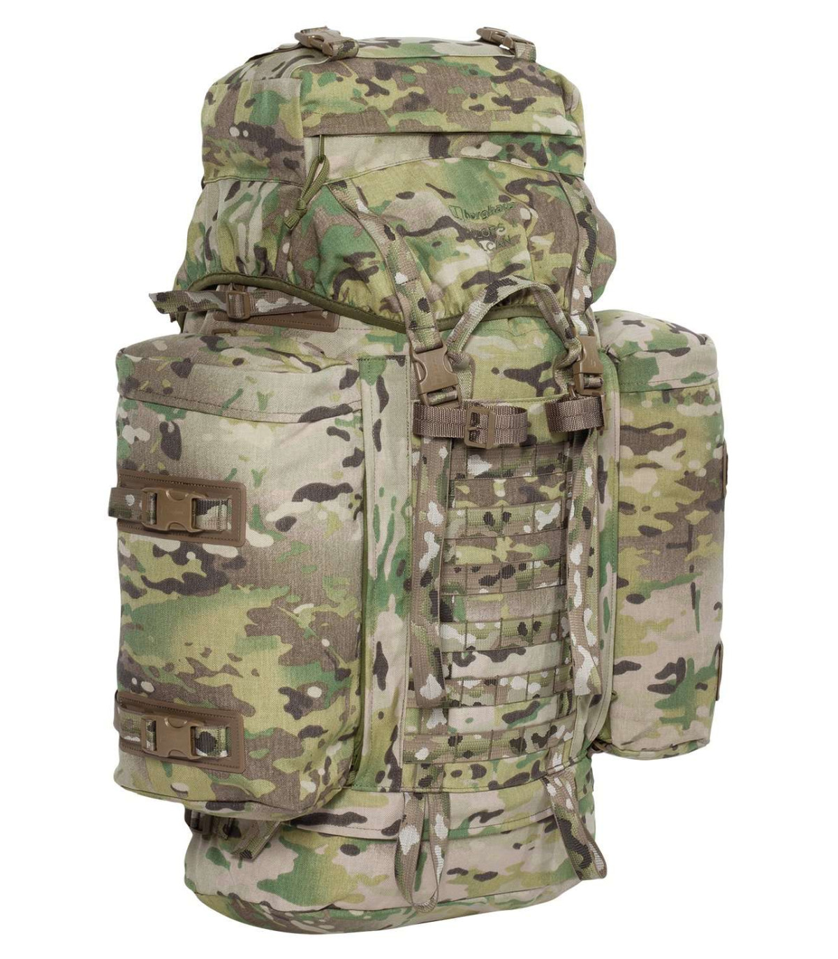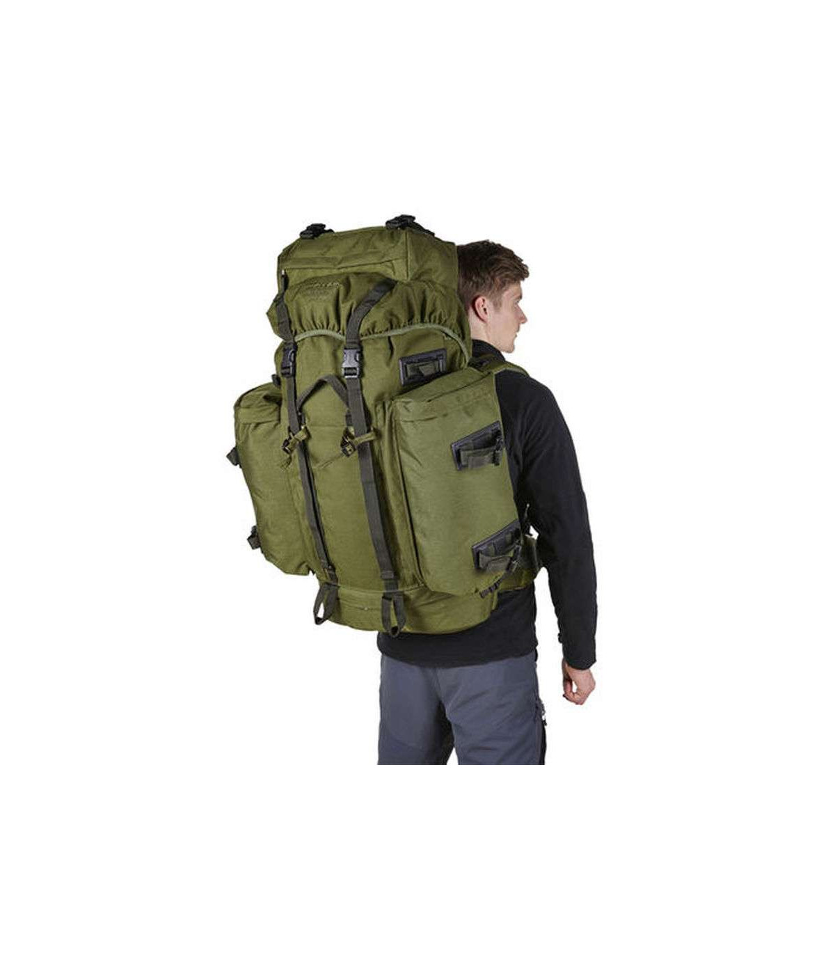 This pack is rigid but light – it has a HE30TF aluminium alloy frame. Plenty of space to take everything you need for the journey with a 100 Litre capacity, complete with top tension straps and side and base compression straps to make packing easy. Versatile for shorter trips too, just remove the detachable Multi Mission Side Pockets (MMPS) and zip them together to make a handy daysack. Take adverse weather in your stride - fix a walking pole or ice axe to the attachment point for easy accessibility. Carry your canteen or any other accessory on one of the six attachment points. Front and back reinforced haul loops will ensure that you can move your fully loaded pack with relative ease. Never get caught out, even when the snow is falling with the ski attachment points on the side pockets. Extra features include, top tension straps, side and base compression straps to secure your load and cynch straps on the hip-belt. Tough and durable for long range operations this is an all time classic bergen made from professionals to professionals.