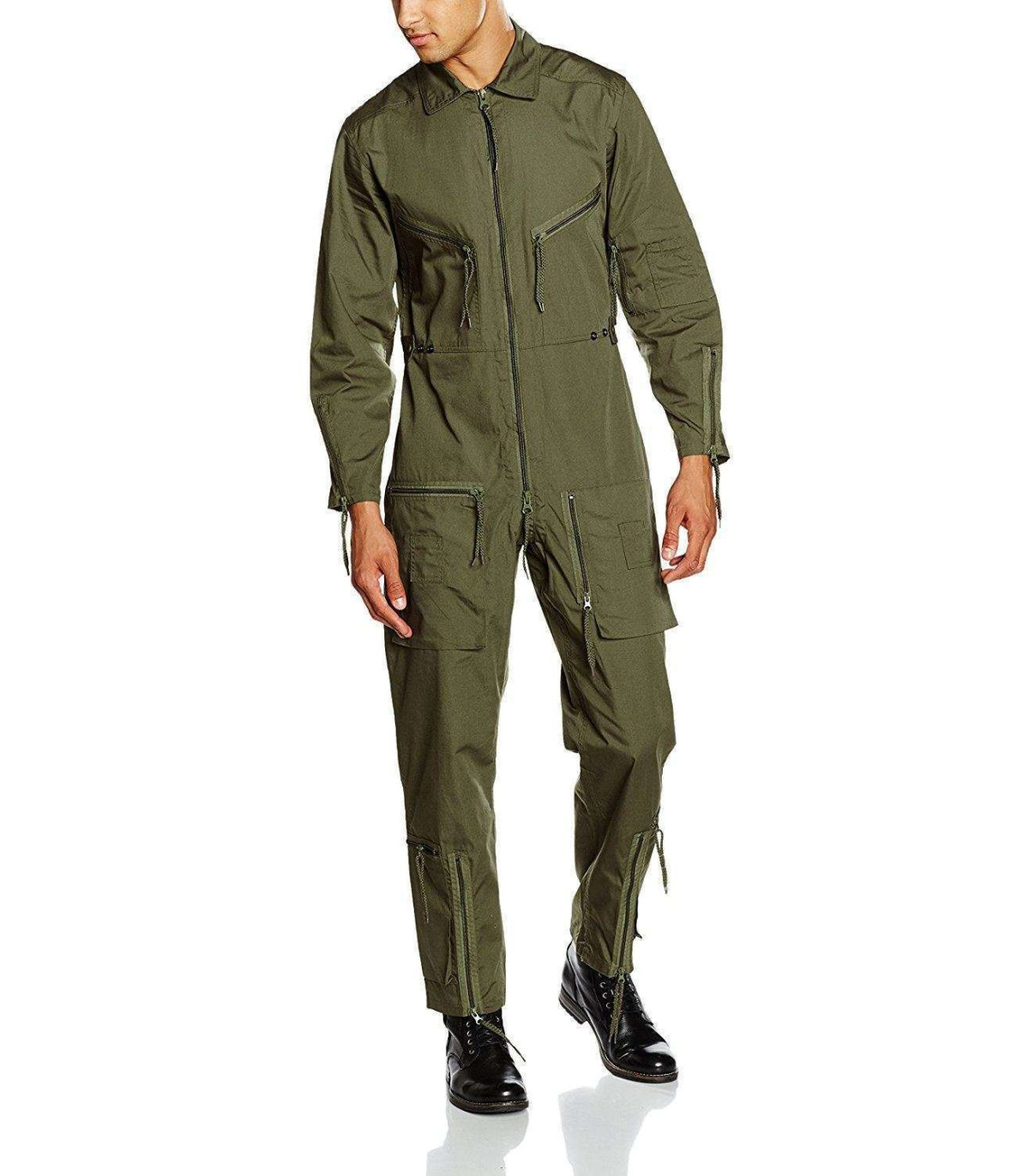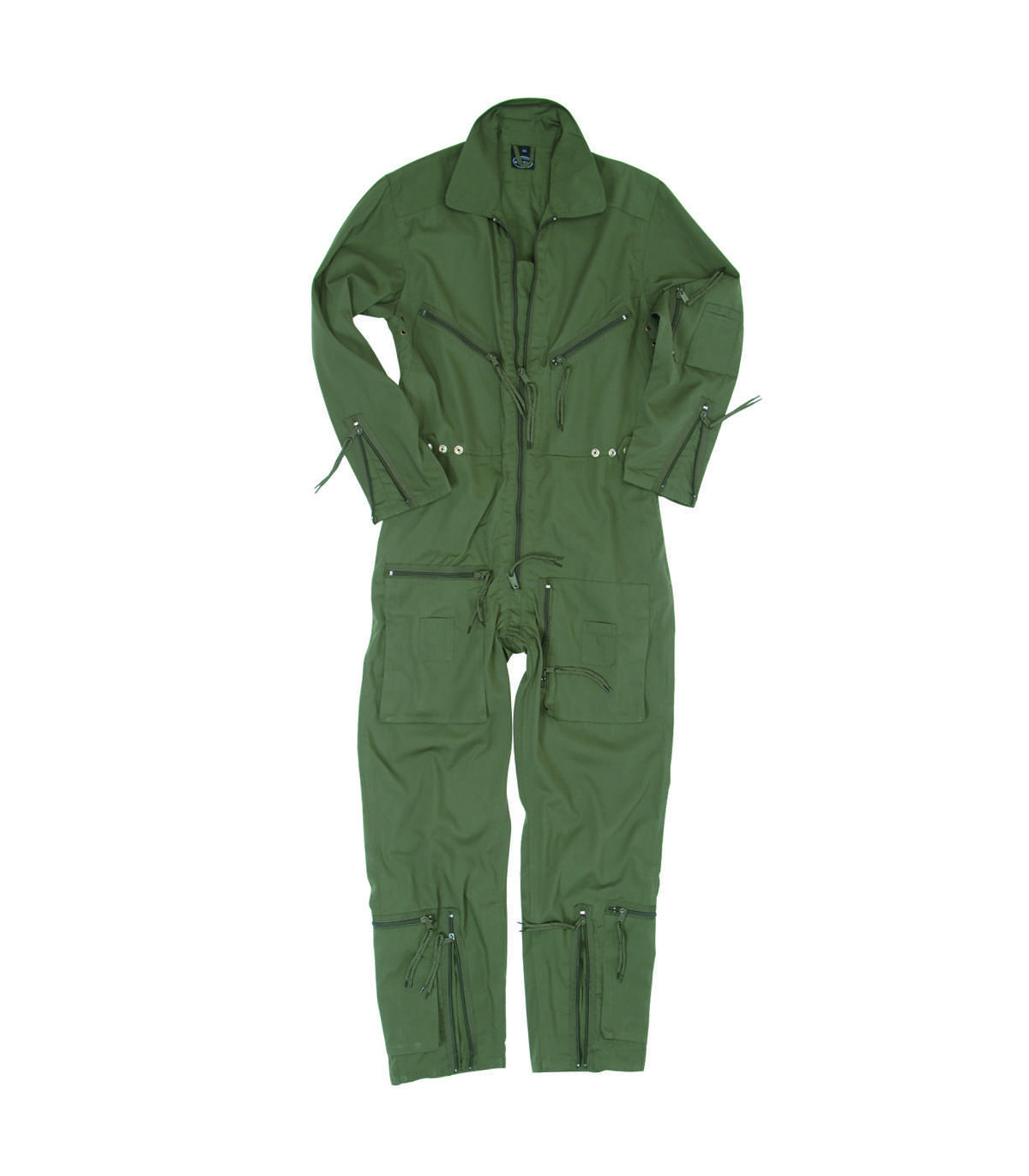 Flight bodysuit with altogether 7 pockets with zippers. Featuring ventilation holes under the arms, snap vasteners for waist adjustment, arm and leg cuffs with zippers.