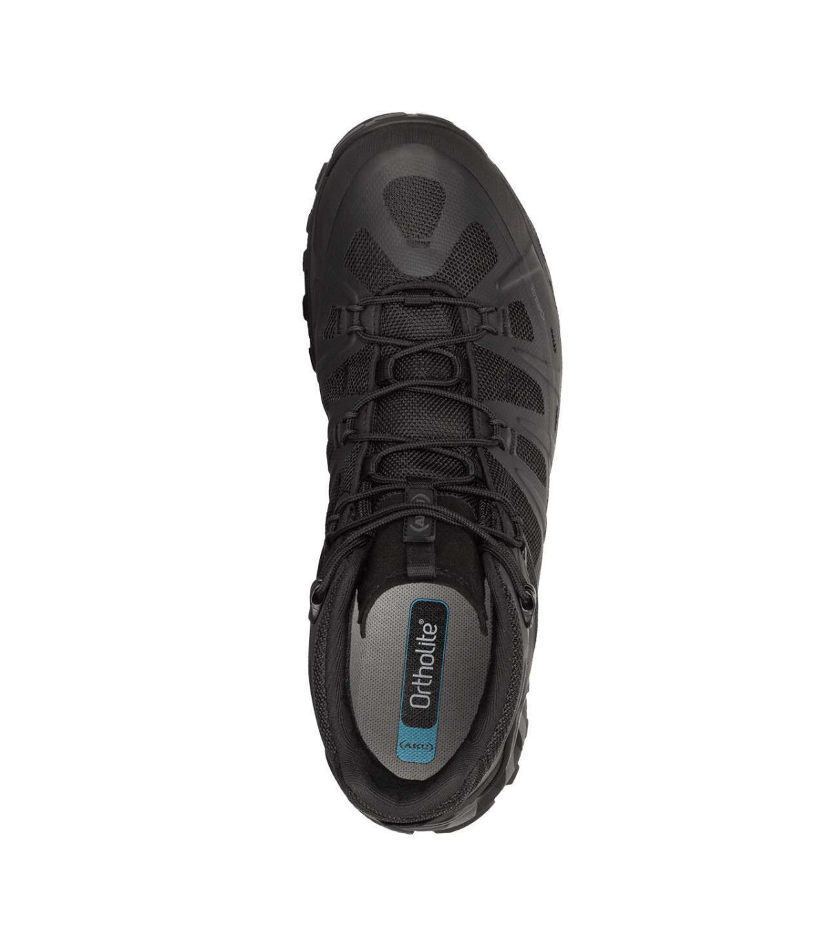 Footwear for multiterrain activity, perfect for light hunting activity. Super lightweight, breathable and dynamic support in the shoe upper and sole, the former bearing ribs that are pre-treated in PU, which eliminates stitching. The sole tread has been developed with exclusive AKU Elica Natural Stride System technology to optimize its biodynamic efficiency. The treads are Vibram® Selvatica Megagrip with an optimized surface in contact with the ground for better all-around traction. OrthoLite® anti-microbe and breathable insoles, with optimum shock absorption. Also available in the female version.