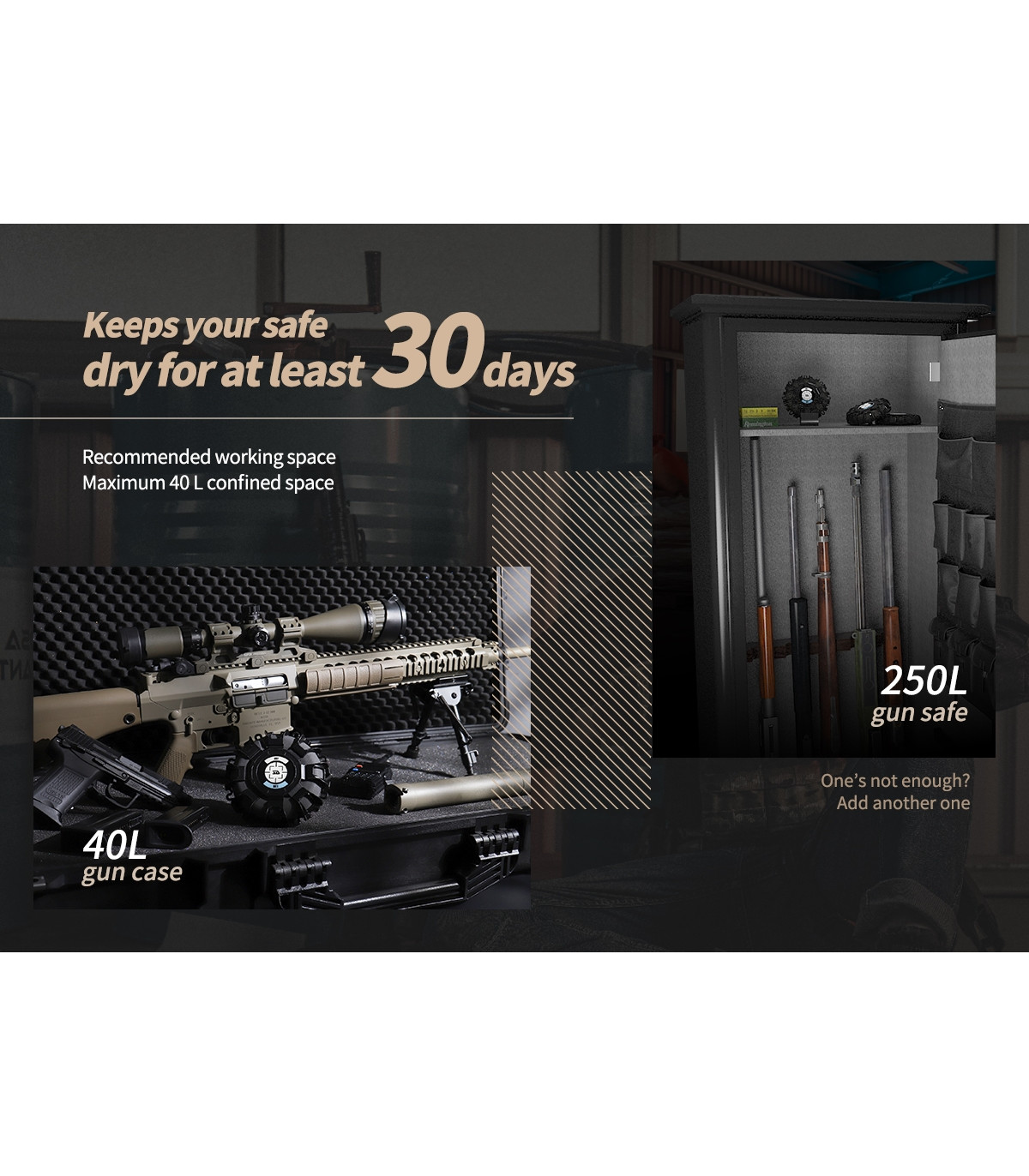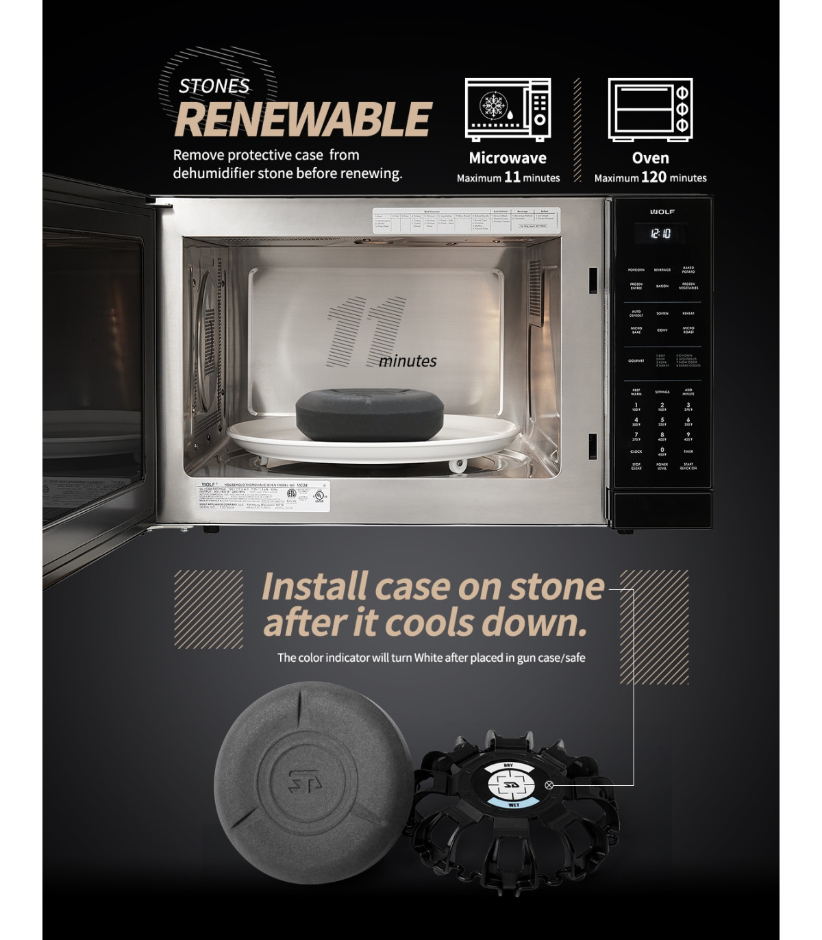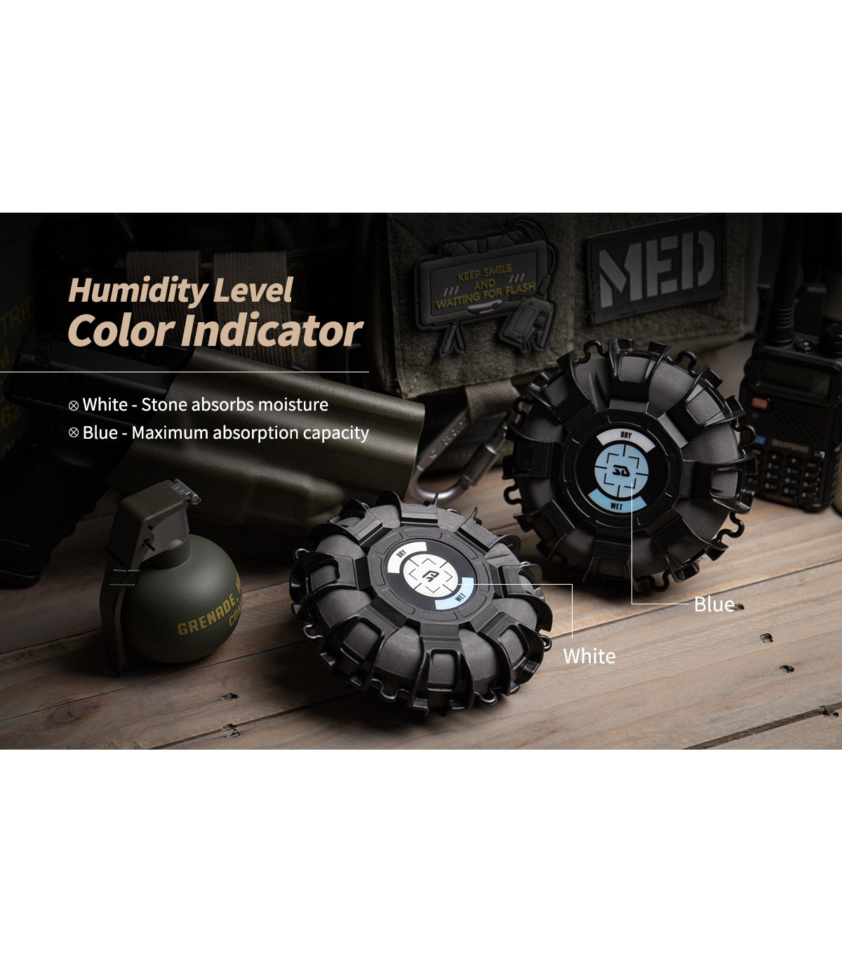 Πέτρα αφυγραντήρας που χρησιμοποιείται σε κλειστούς χώρους, βαλίτσες, ντουλάπια για την προστασία από την υγρασία όπλων, πυρομαχικών, οπτικών συστημάτων, φωτογραφικών μηχανών, ηλεκτρονικών συσκευών, drones κ.α.