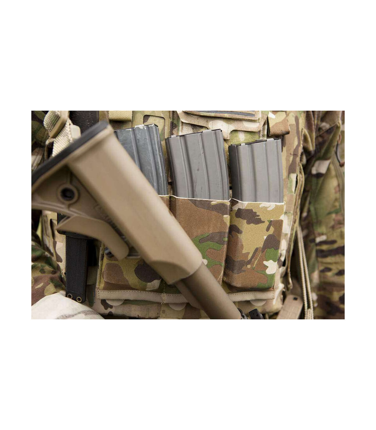 Features - Two M4 magazine (polymer or metal) - Flash bangs - Bandages - Small radios - Similar sized items - Military grade Ten-Speed® elastic front - MOLLE compatible Helium Whisper® attachment system - ULTRAcomp™ high performance laminate