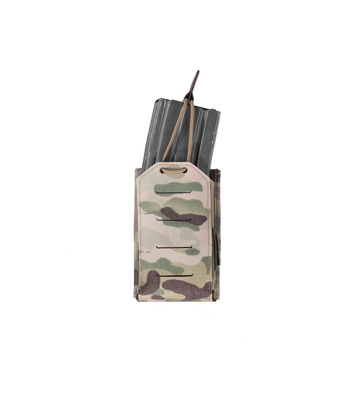 The Laser Cut Single 5.56 Mag Pouch attaches to the full range of Warriors Belts and Carries. The W-LC-SB-556P holds a single 5.56mm x 45mm mag, and is held in place via bungee retention cord, Hypolon lining provides additional mag retention when bungee safety is removed. Each mag pouch has 4 MOLLE slots externally, allowing the attachment of additional pouches such as pistol mag pouches, CAT pouch or Multitool pouch.