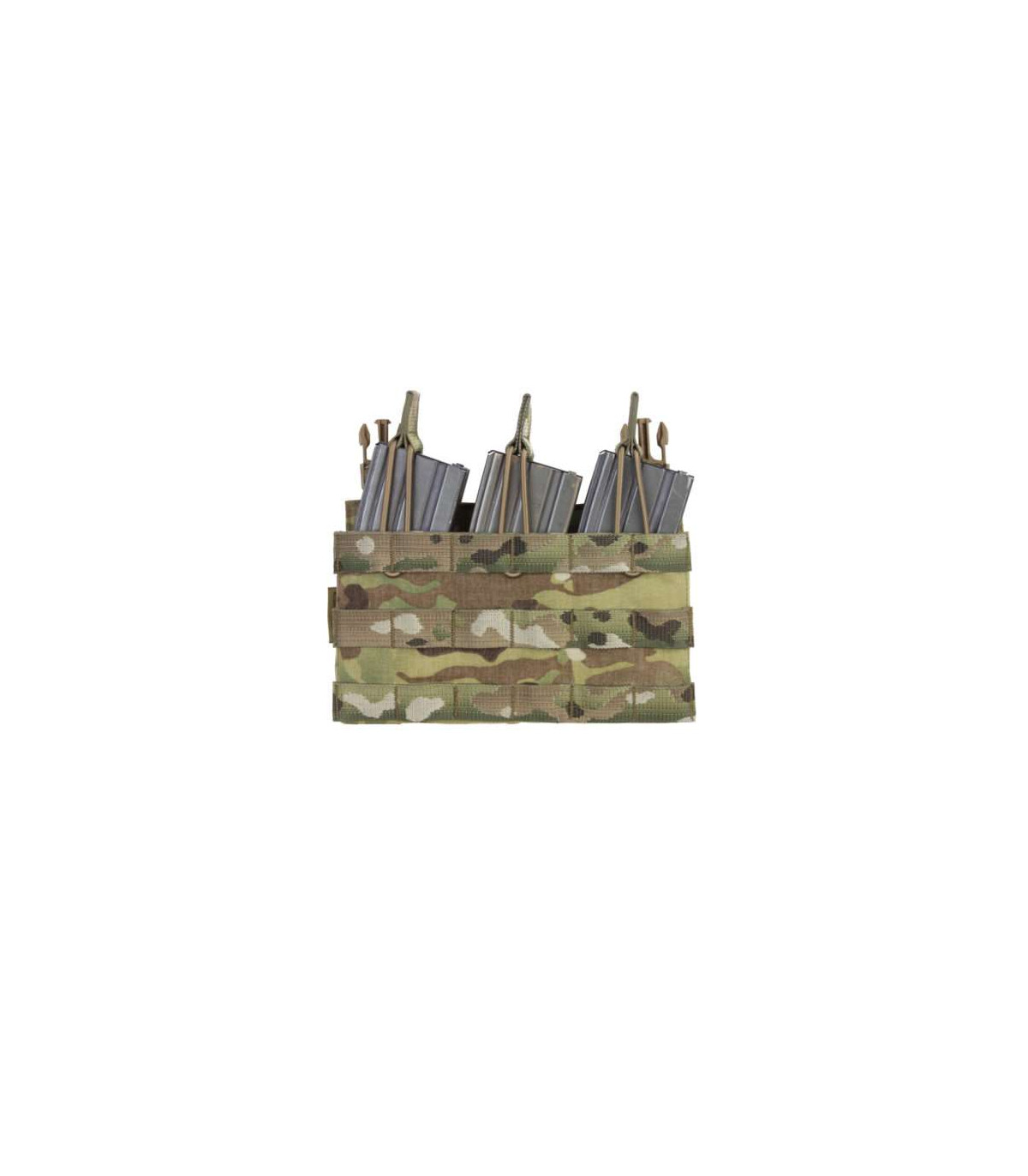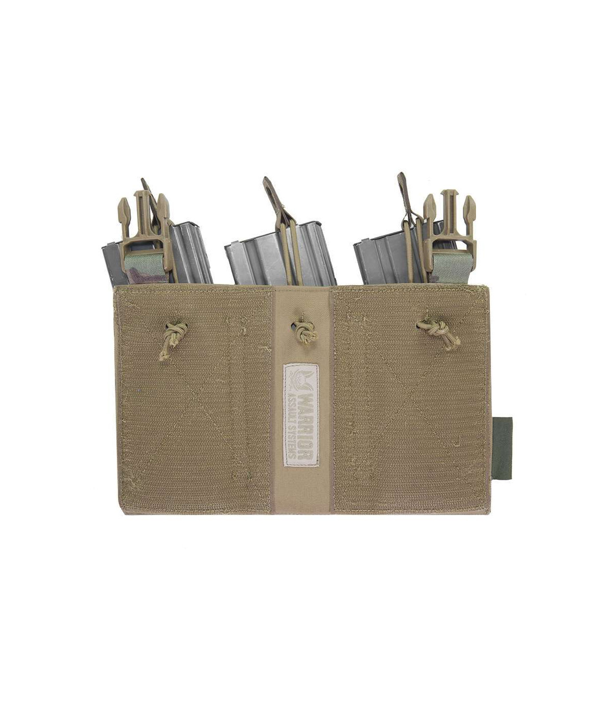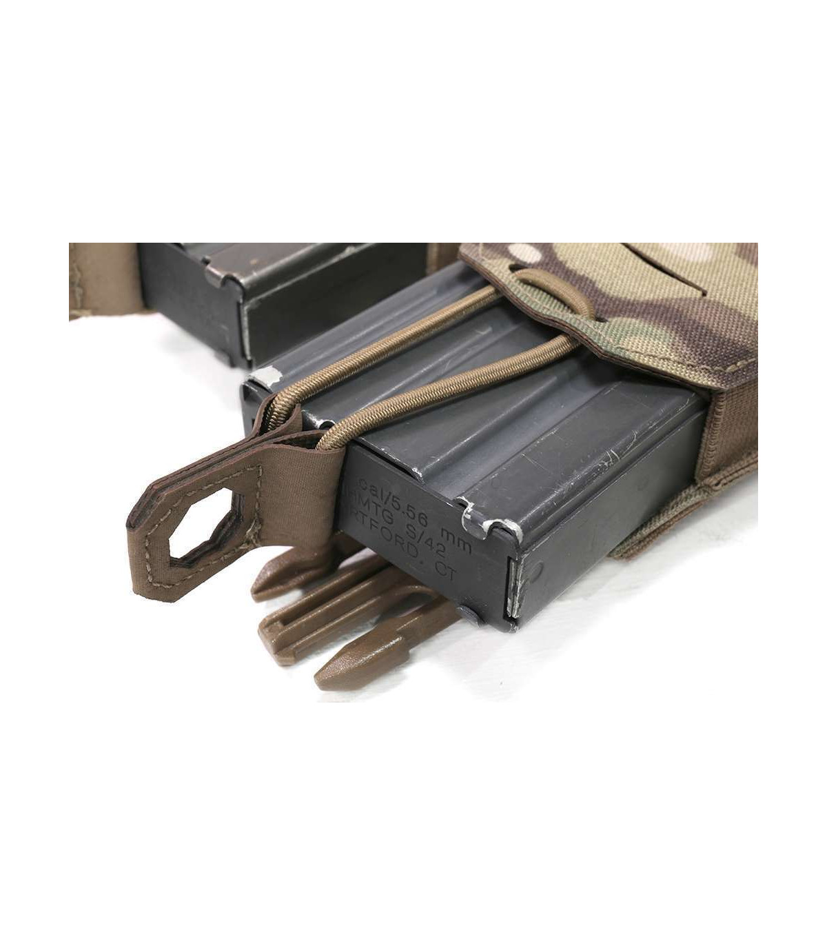 The Laser Cut Detachable Triple 5.56 Mag Pouch is a removable Front Panel which attaches to the front of Warriors Laser Cut LPC Plate Carrier, via Velcro and 2 Vertical SQM clips. The DFP-TB-556P holds 3 x 5.56mm x 45mm mags, and are held in place via bungee retention cord, Hypalon lining provides additional mag retention when bungee safety is removed. Each front panel pouch has 4 MOLLE slots externally, allowing the attachment of additional pouches such as pistol mag pouches, CAT pouch or Multitool pouch.