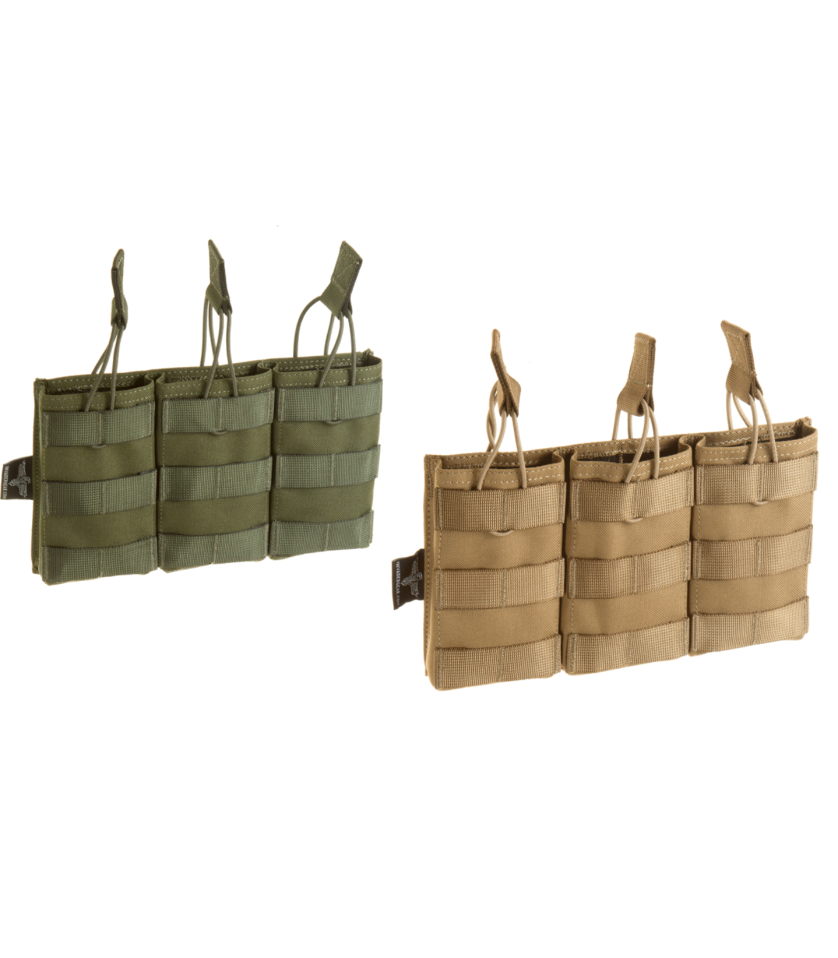 Features - Triple 5.56 magazine storage pouch - Open top pouch for quick draw mag accessibility with pull tabs - Molle system compatible - 100% Nylon