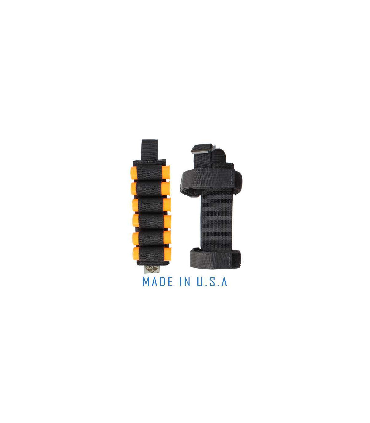 Designed with Roman Tactical, the Tactical Shotgun Reload System allows an operator to carry more ammo than other buttcuff systems. This buttcuff features a detachable 6-round magazine strip that is the same size as a standard 30-round AR magazine. The modular platform allows the operator to carry the strips on their tactical vest giving them a larger ammo capacity. The TSRS allows an operator to use the same mag pouches designed for AR mags and insert additional 6-round magazine strips. Made in the USA.