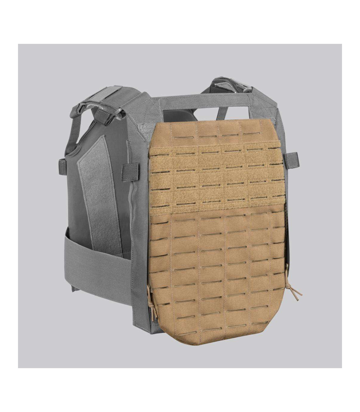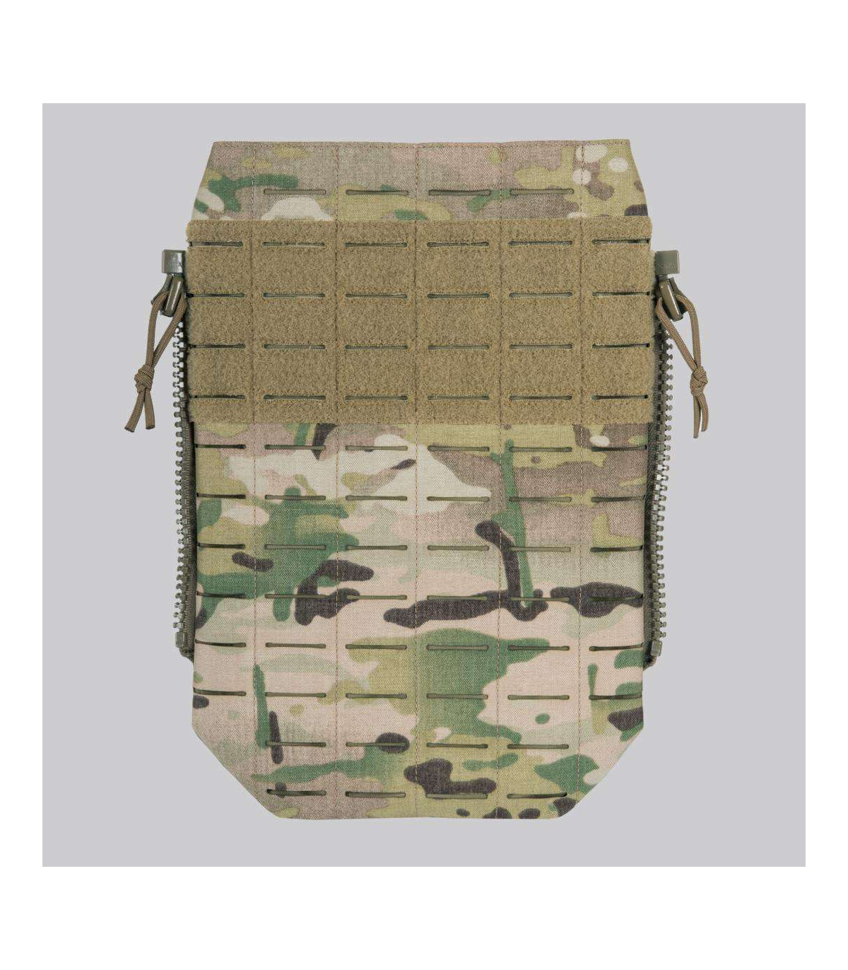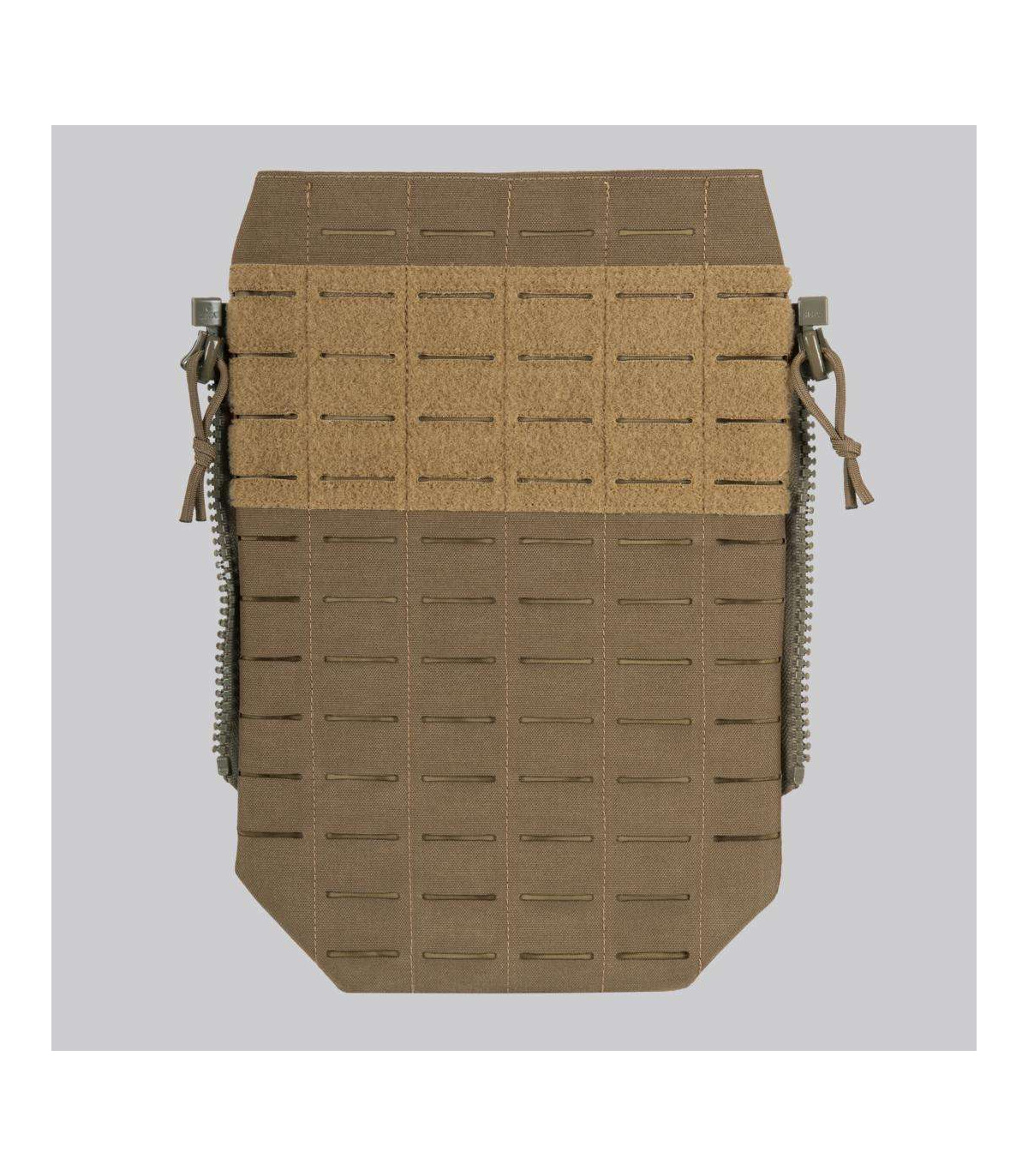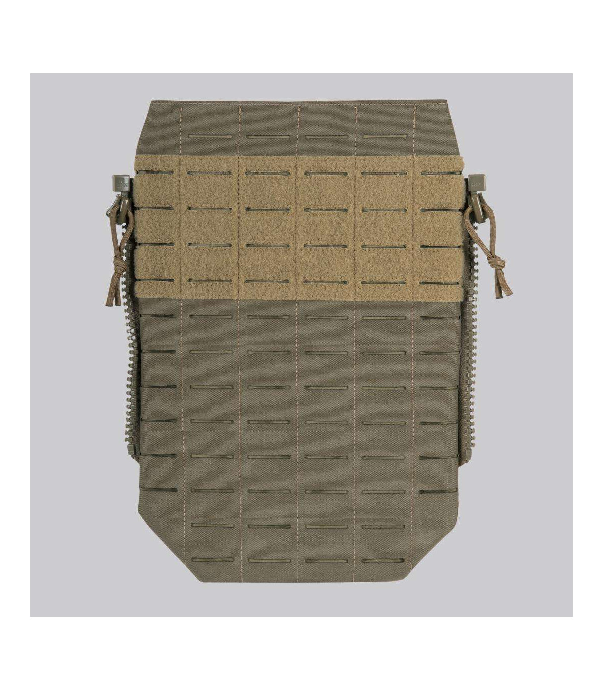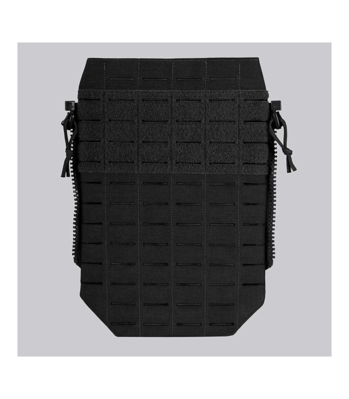 Our new SPITFIRE MK II is not only much more scalable and mission configurable, it is also a bit more simplified and stripped of the features that are not always needed. One of these features is the modular system on the back. But what if you need the modularity of the back panel? The answer to this need would be our new SPITFIRE MK II MODULAR BACK PANEL. Made of proprietary laminate, this flat back panel is covered with a laser cut modular system. It is attached to the plate carrier via the zipper system. The panel features an internal pocket that can accommodate a hydration bladder or other flat objects. In the upper part of the panel there is a large loop panel that allows you to mount any patch you need.