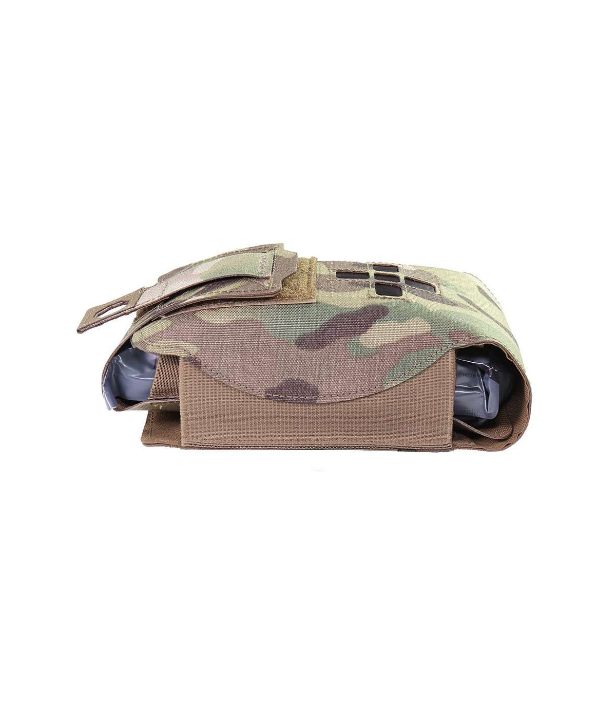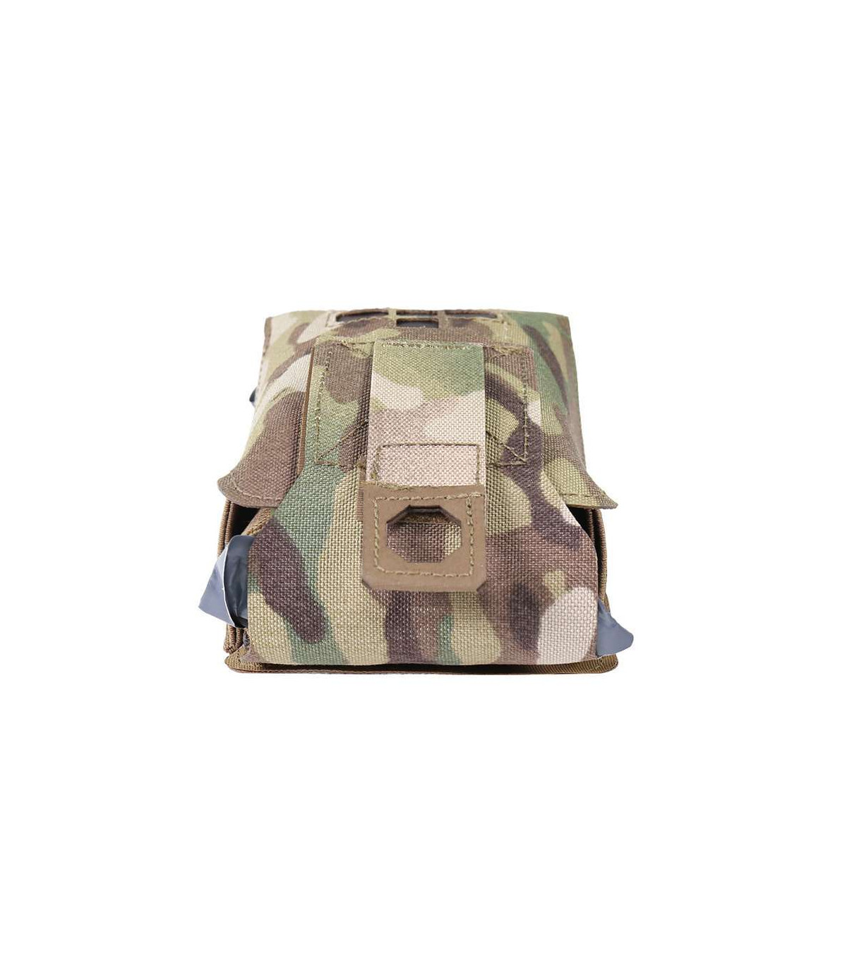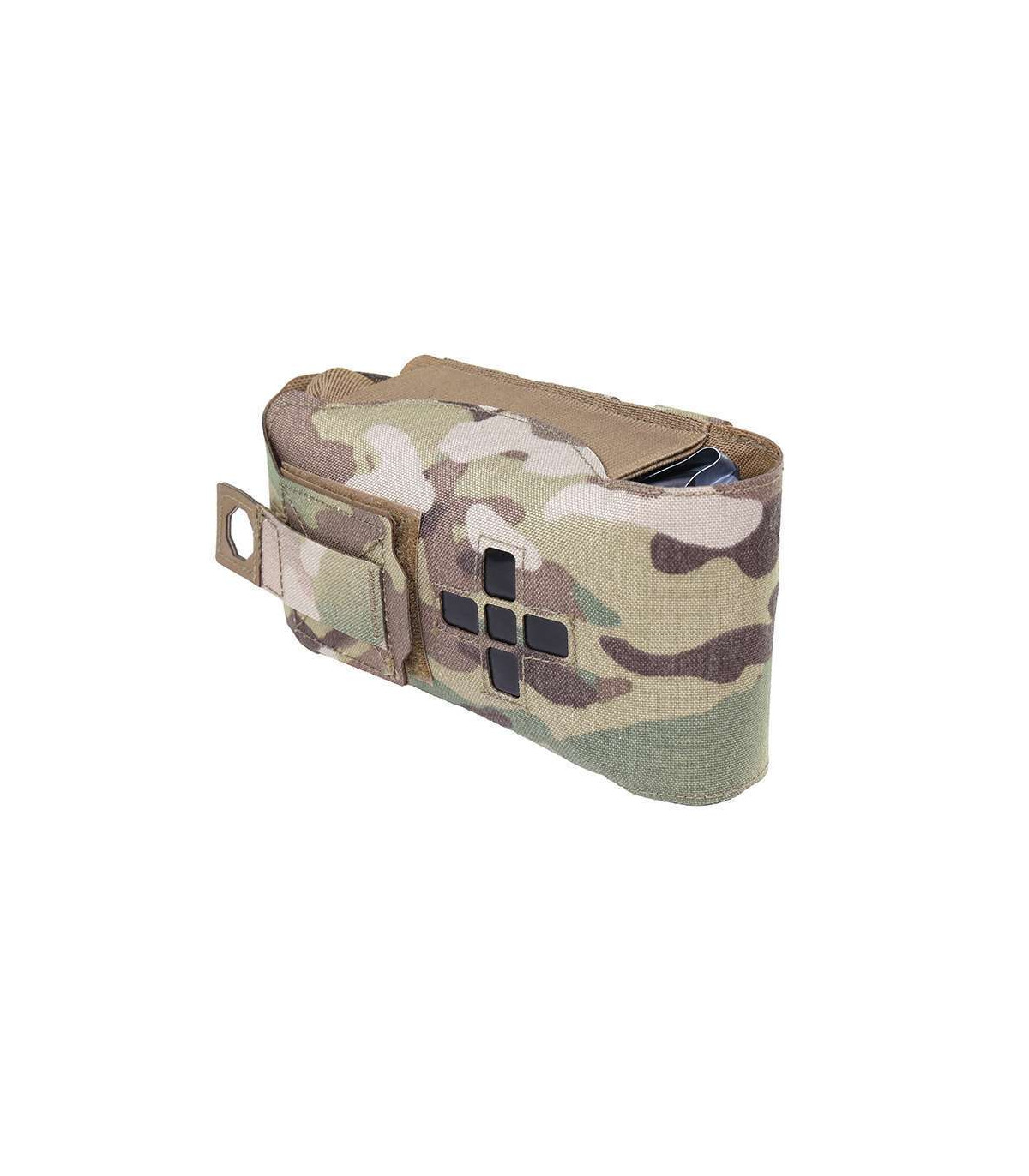 The Laser Cut IFAK pouch is designed to hold an operator's personal medical kit, including Combat Gauze, CAT and/or Trauma Bandage. They are all stored securely in a removable sleeve, which slots inside the outer pouch. The sleeve and medkit are held firmly in place by elasticated sides and Velcro. A large tab with non-slip Hypalon coating is attached to the inner sleeve and once pulled with force releases the inner sleeve from the otter pouch, allowing quick and easy access single-handed operation.