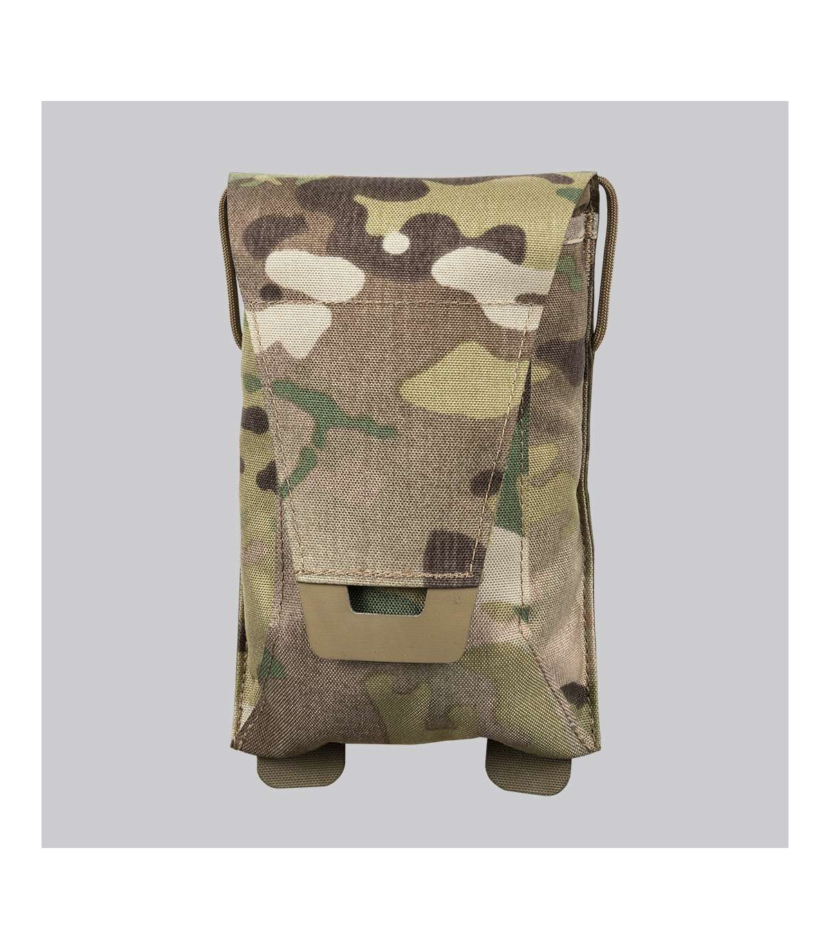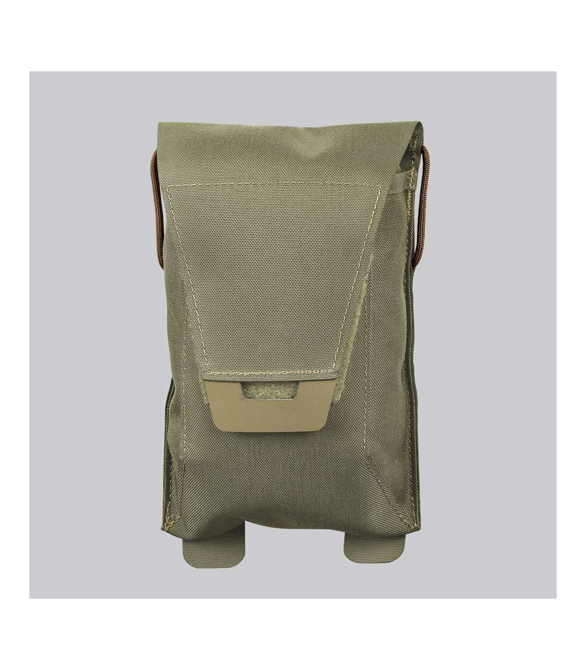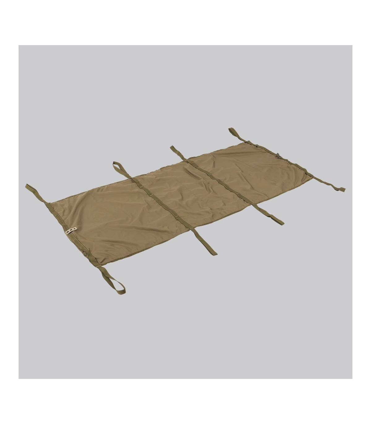Lightweight foldable field stretcher. Made of two layers of Nylon Micro Rip-Stop fabric to guarantee durability and light weight. Eight reinforced webbing carry handles (four to a side). Two integrated flat pockets, each the size of one half stretcher underneath the whole area of the deployed stretcher, accessible from front and rear edge. Stow pouch for folded stretcher enable mounting them onto the combat vest, belt etc. Side channels enable inserting carrying poles for easy two-man use.