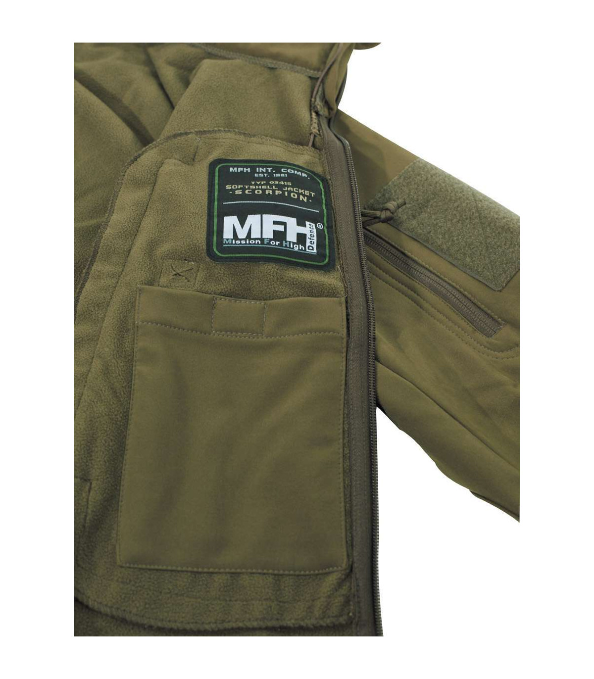 This prime quality and multi-functional soft-shell jacket the MFH Scorpion comes with two-way full front zipper and high collar with chin guard. The jacket has concealed hood inside of the collar with elastic drawstring and cord lock. The jacket comes with various pocket throughout the jacket placed on the chest, sleeves, lower back and forearm and they provide enough storage for all your essential items during your trip or service. The warm and cosy fleece lining offers superb thermal protection in severe weather conditions and with combination with underarm vents it gives an excellent body moisture management. Moreover, the jacket features adjustable hook-and-loop cuffs, elastic drawstring with quick locks on waist and collar for better fit, YYK® zippers with glove-friendly pull tabs and zip garages. MFH Scorpion Soft Shell Jacket is perfect for both military and security personnel, as well as for hiking, fishing and everyday wear.
