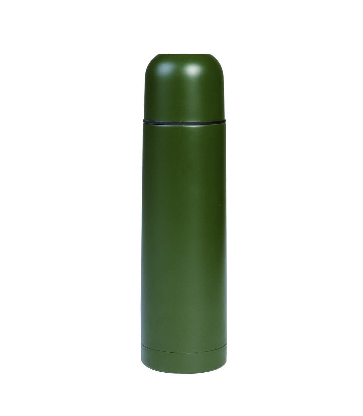 Unbreakable thermo bottle with flat outside. Drinking cup can be used also as sealable cap. Practical quick stop pouring out system for comfortable single hand control. Wide opening for cleaning. Can be used either for hot and cold drinks.