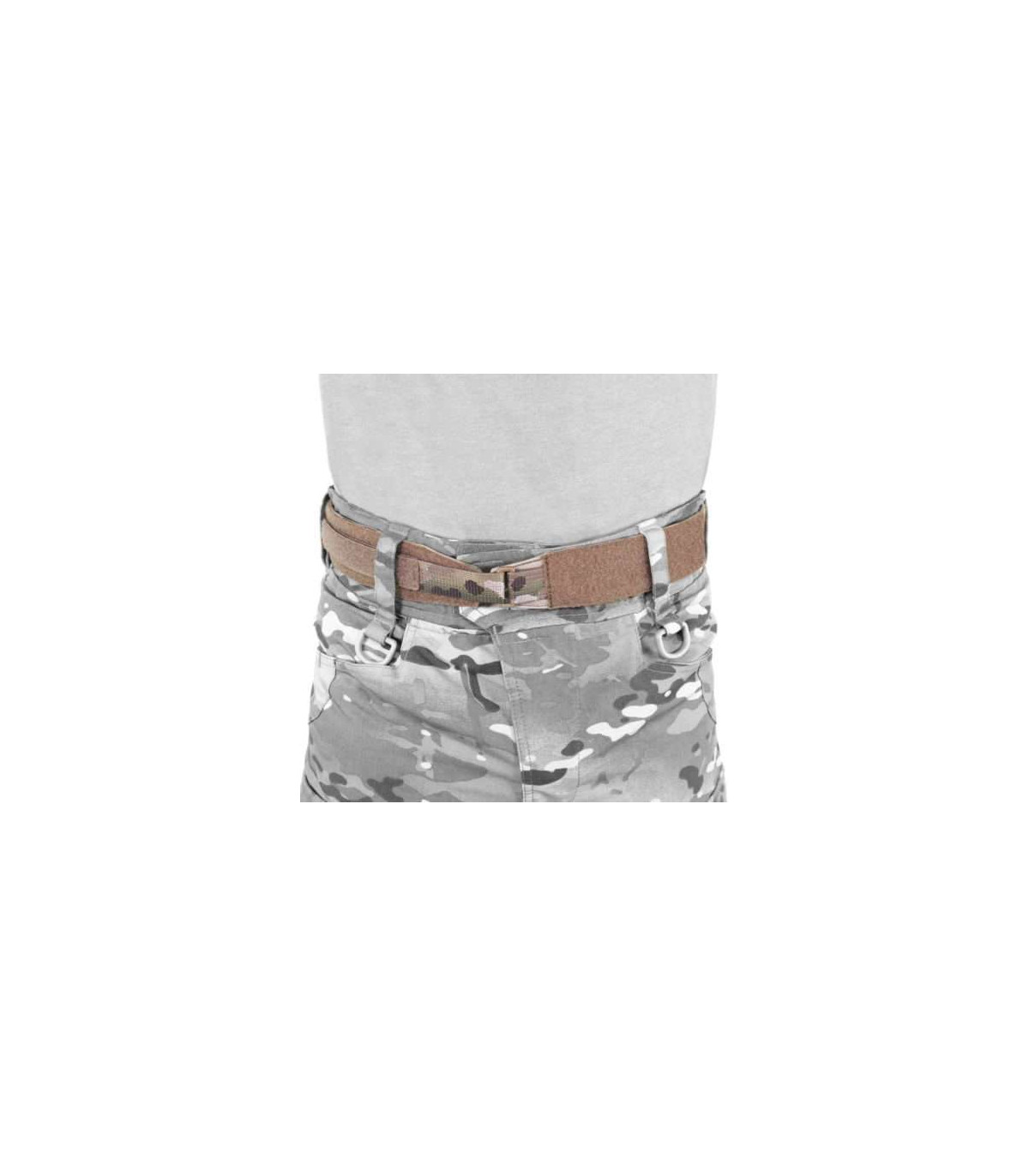 The second part of the system is made up of a low profile MOLLE belt covered in 2 rows webbing, this belt has a row of hook Velcro on the inside which marries up to first belt, it is then secured by way of a removable belt and composite GT Cobra buckle.
