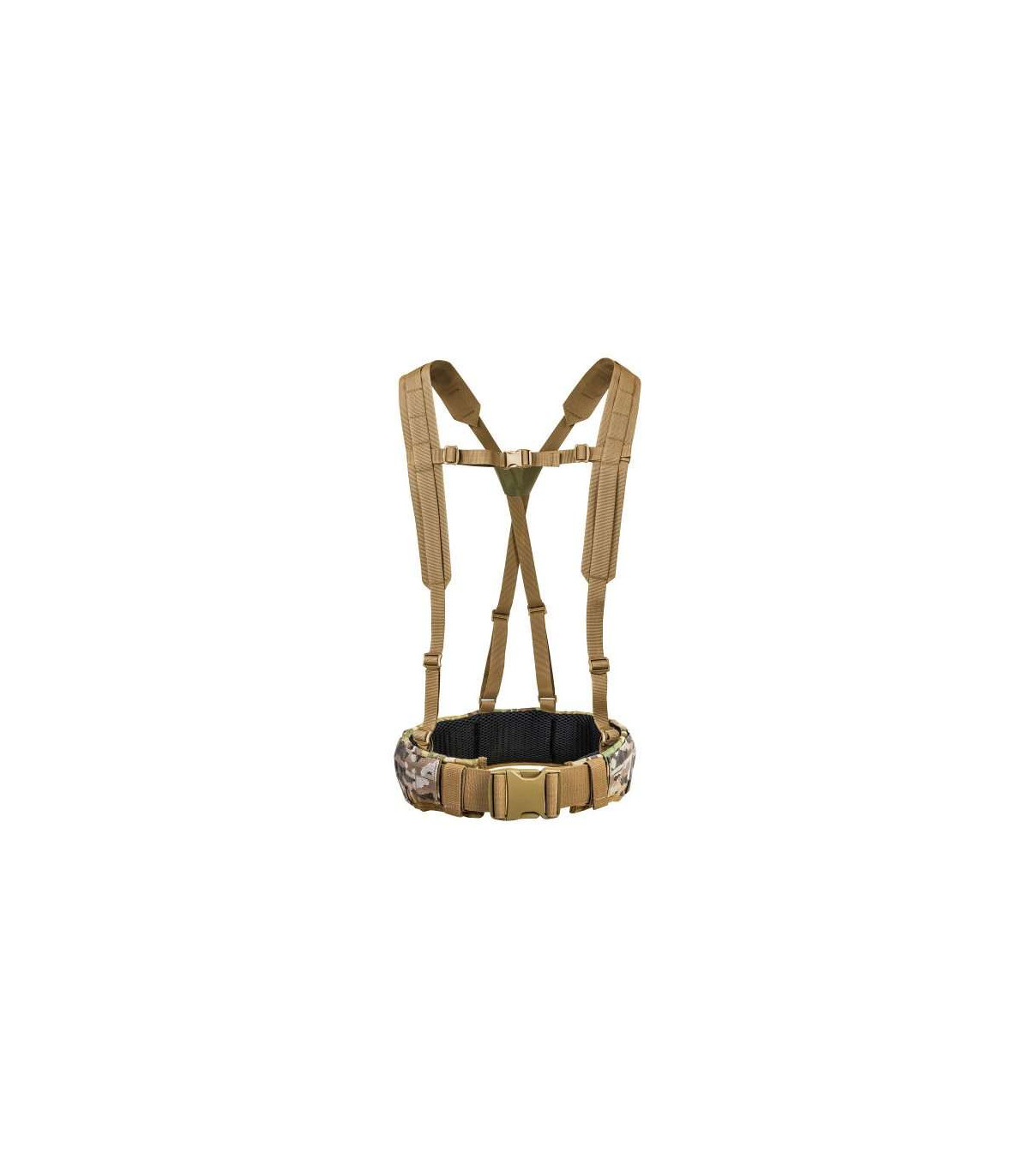 Equipment belt with carrying system. This optimised, narrow cut makes kneeling or seated operations easier. The carrying system has a chest strap and back attachment. The belt is available in three sizes.