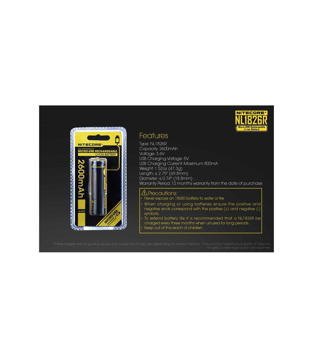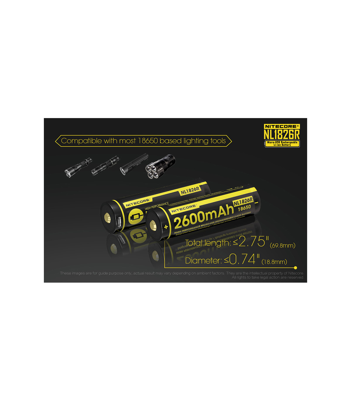 ΜΠΑΤΑΡΙΑ NITECORE 18650 / 2600mAh/Micro USB