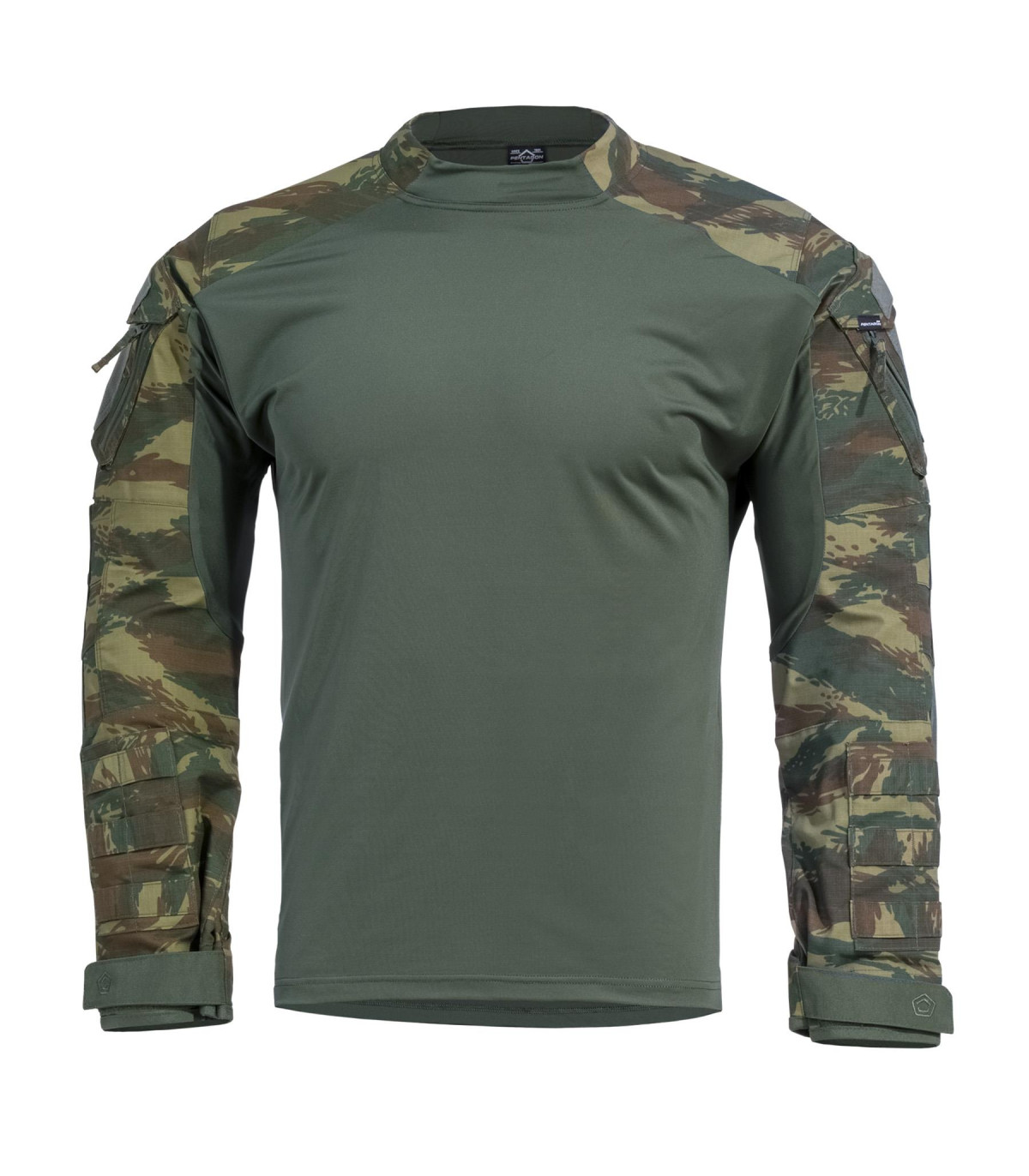 Introducing the Wolf Combat Shirt—your ultimate partner for demanding missions where performance, comfort, and durability are paramount. Engineered to keep you at peak readiness, this combat shirt combines cutting-edge materials with innovative design to offer exceptional functionality, protection, and rapid moisture management.The Wolf Combat Shirt is crafted with an advanced blend of fabrics designed for maximum performance in the field. The sleeves are constructed from a durable, breathable ripstop fabric with 2-way mechanical stretch, ensuring resilience and flexibility during the most intense operations. The torso section is made from an abrasion-resistant knit material that offers superior comfort and durability, while the lower body fabric, treated with anti-odor technology, prevents the buildup of sweat and protects against friction.A key feature of the Wolf Combat Shirt is its reliable elbow protection, powered by Cordura® fabrics. The ergonomic sleeve design ensures that the Cordura® elbow patches stay securely in place, providing constant protection without the need for adjustment. Additionally, internal elbow pockets allow for the insertion of EVA foam pads, offering customizable impact protection tailored to your needs.The shirts collar has been meticulously developed with input from professionals to provide optimal neck protection while maintaining excellent ventilation. The collar’s elastic properties, combined with the mechanical stretch of the fabric, ensure easy entry and a perfect fit across various body types, eliminating the need for cumbersome zippers or buttons.Storage is another standout feature of the Wolf Combat Shirt. It includes two XL upper sleeve pockets, ingeniously designed to offer both main compartment access and a hidden secondary pocket for quick access to essential items. This hidden compartment is ideal for EMS gear, EDC tools, or integrating a small IFAK platform. The lower sleeves are equipped with a MOLLE/PALS layout for attaching additional gear, along with two vertical fillet pockets perfect for carrying flashlights or Cyalume sticks.Fabric Details:Upper Body:65% Polyester, 35% Cotton, 225gsm2-way mechanical stretch ripstop fabricTeflon™ stain-resistant treatment by Dupont®Lower Body:92% Polyester, 8% ElastaneFeatures:Gusseted, breathable underarmsQuick-drying and odor-free fabricFlatlock stitching for enhanced comfortSleeve cargo pockets with hook & loop patchesReinforced Cordura® elbow patches for superior protectionSleeve MOLLE/PALS layout and vertical fillet pocketsThe Wolf Combat Shirt is not just gear; its a critical component of your operational success, designed to provide unmatched comfort, protection, and functionality in the most challenging environments. With its lightweight construction and rapid drying capabilities, this shirt ensures youre always ready for action, no matter the conditions.
