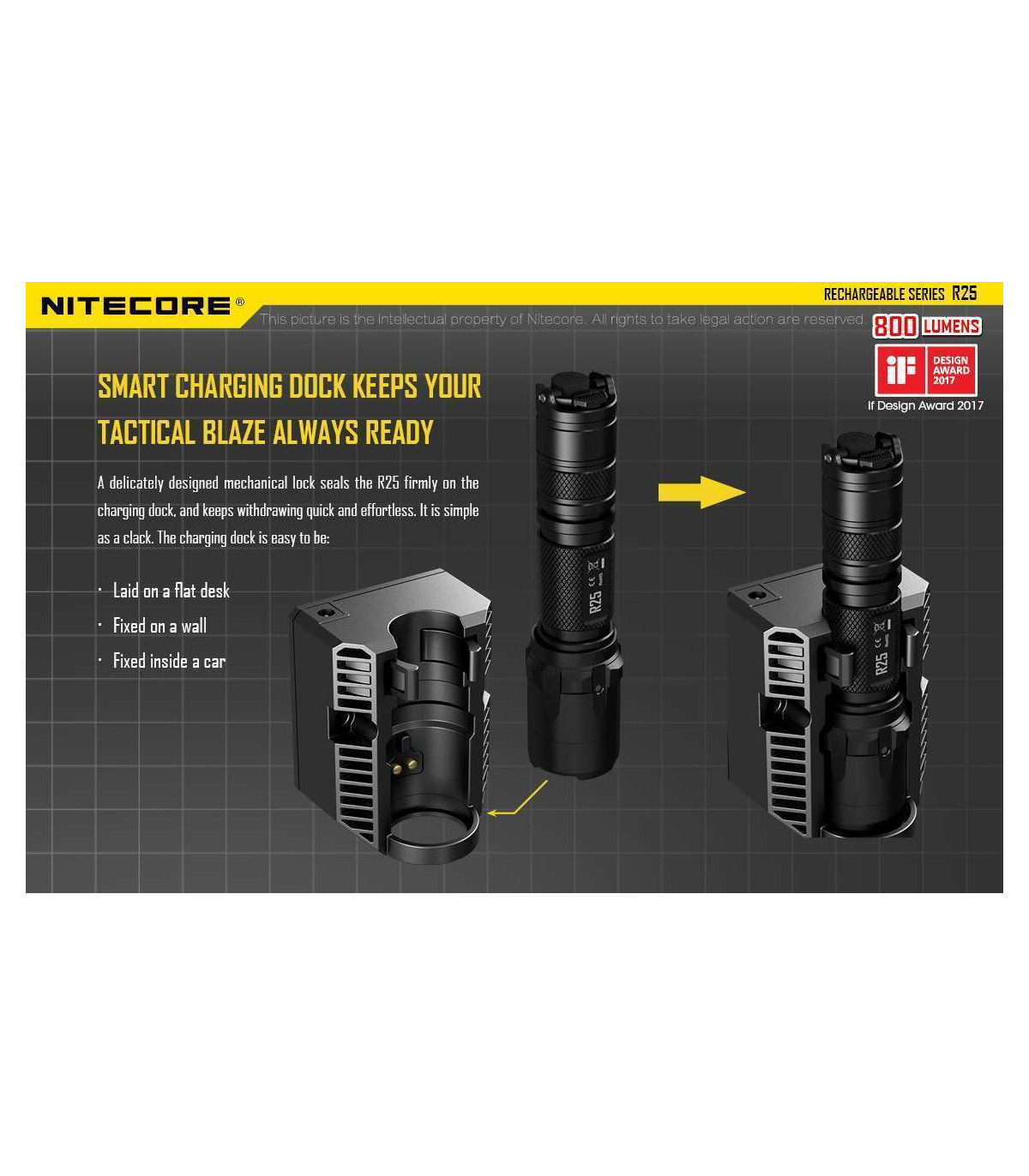 Rechargeable handheld flashlight with charging dock